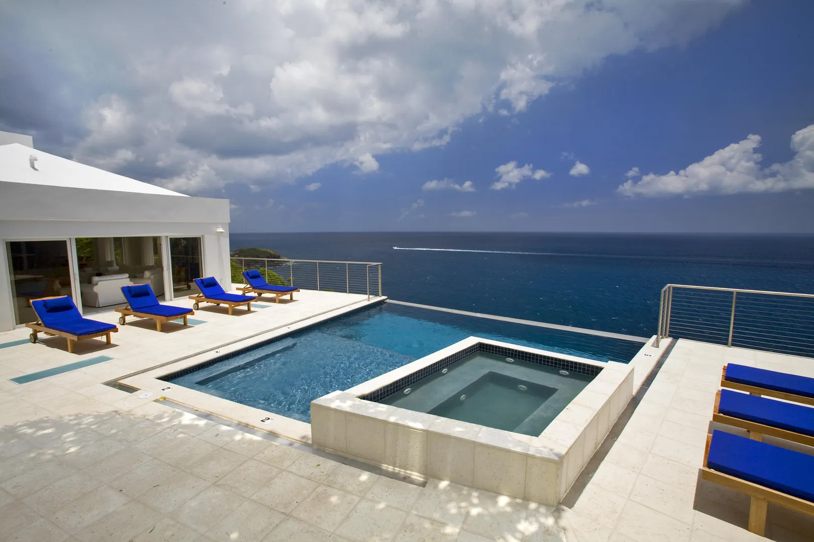 This dramatic home in Estate Peterborg is the essence of waterfront living and offers the best in contemporary island design. The intentional neutral palette is the perfect counterpoint to the vivid blue of the infinity edge pool and ocean beyond. This 5 bedroom home with gym offers a mesmerizing ocean view, a spacious living area that opens to the large pool deck, covered outdoor dining andlots of room to enjoy the company of family and friends with 5 bedrooms with en-suite bath. Gated entry, generator, and a studio apartment for rental or overflow guests. Realtors see Private Remarks