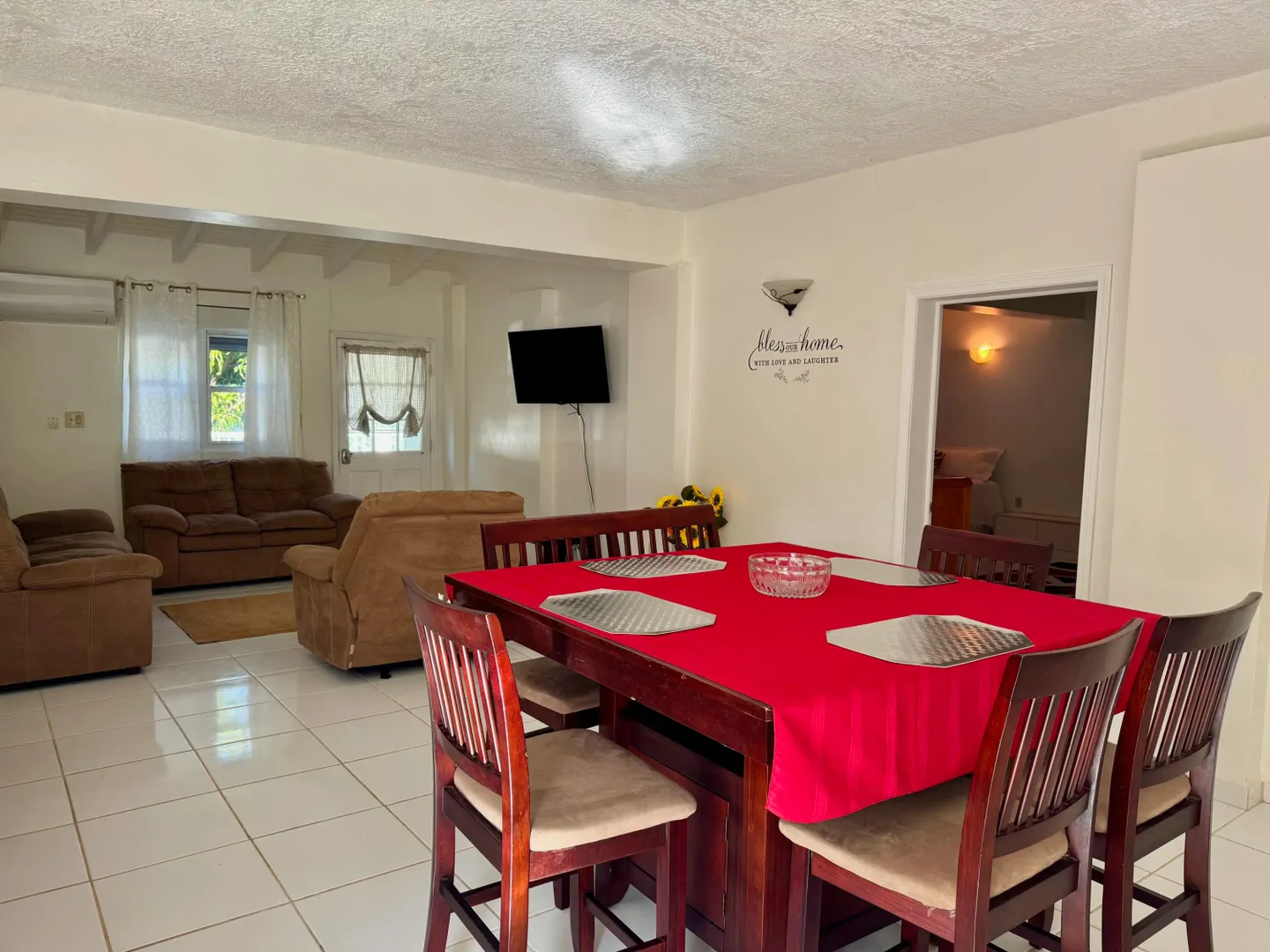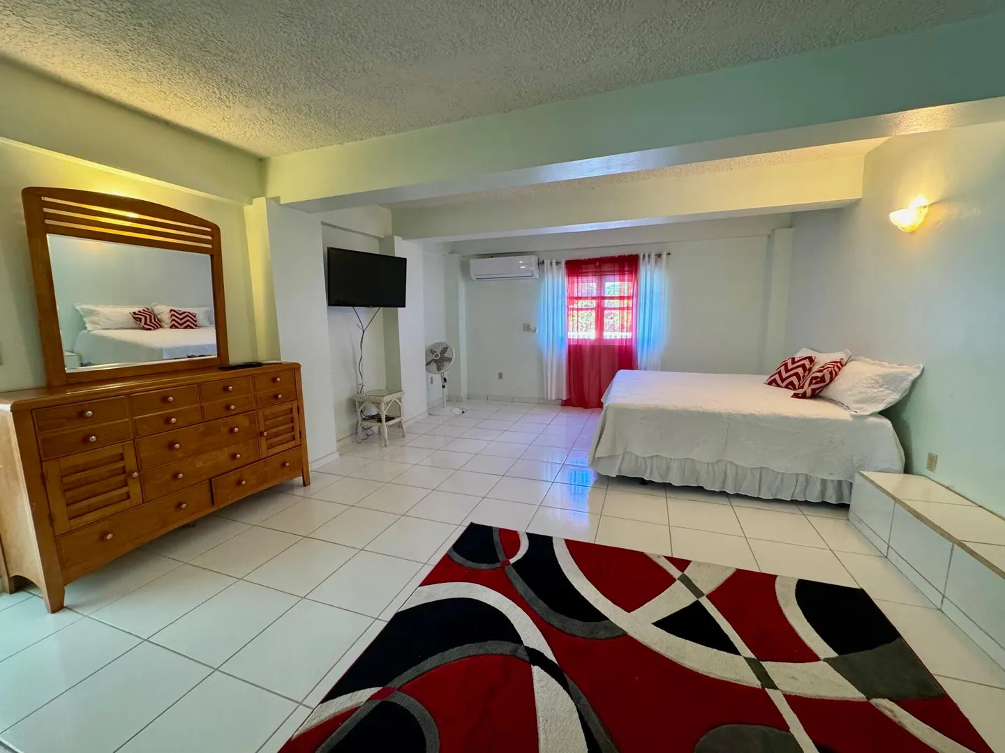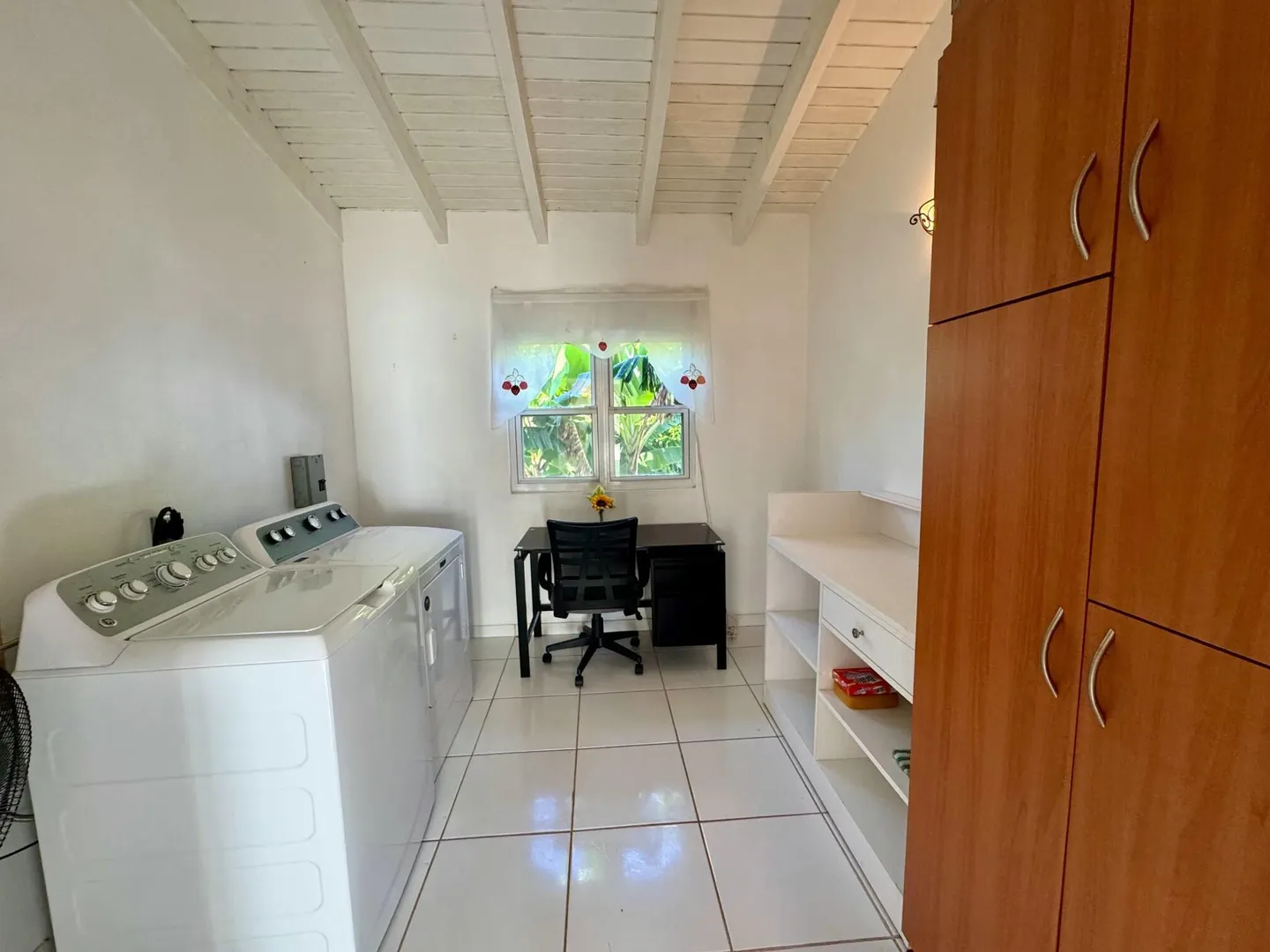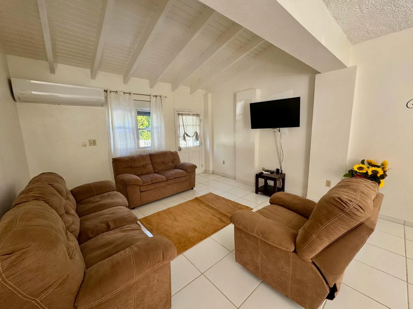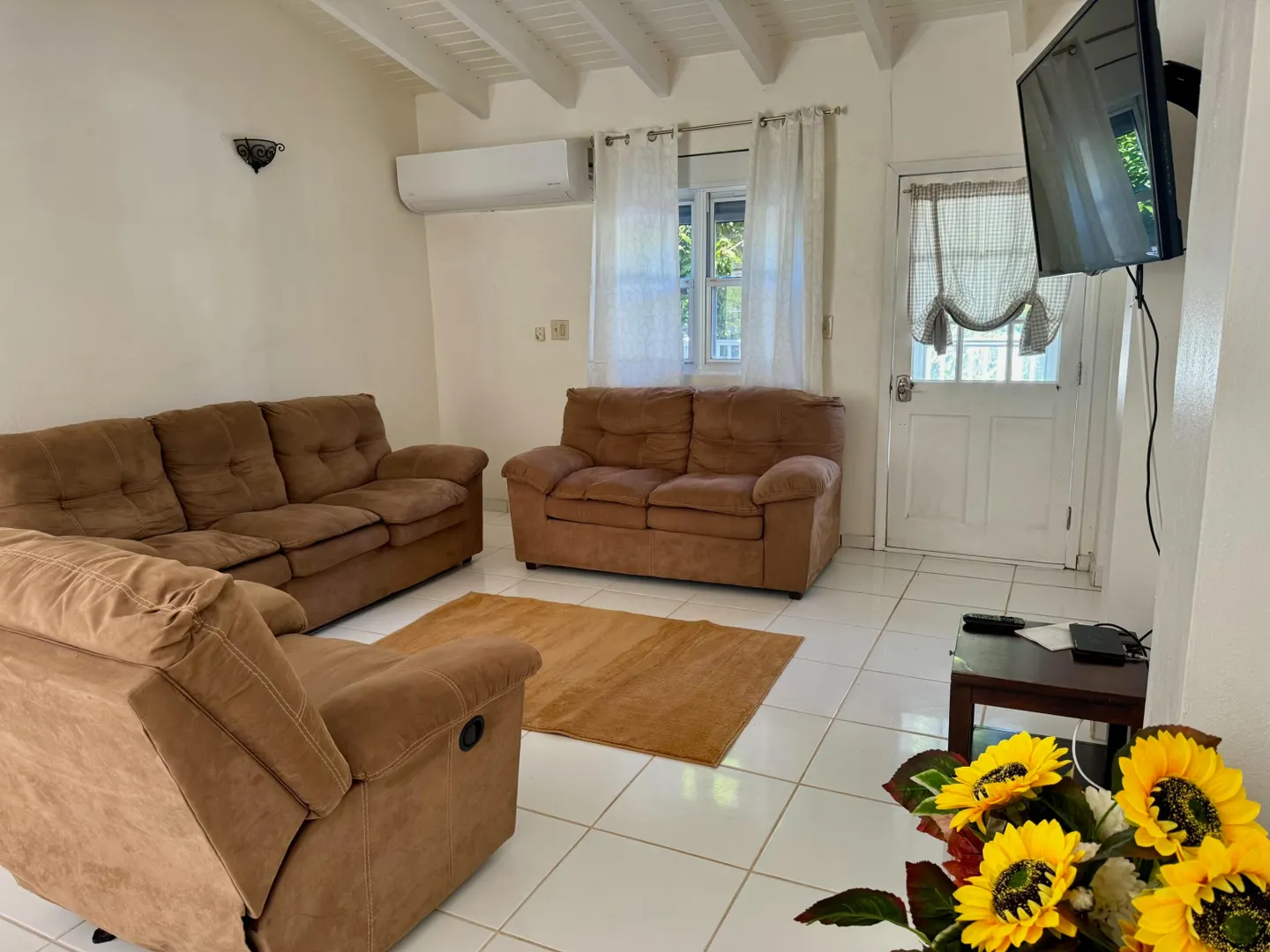 This is an immaculately clean and fully furnished rental, flat screen TVs in every room, washer/dryer, split AC units in every room, walk in closets, and private deck. All stainless steel kitchen appliances. Quiet neighborhood, 5-7 minutes to UVI and airport. 10 minutes to town. Generator. NO PETS. NO SMOKERS.