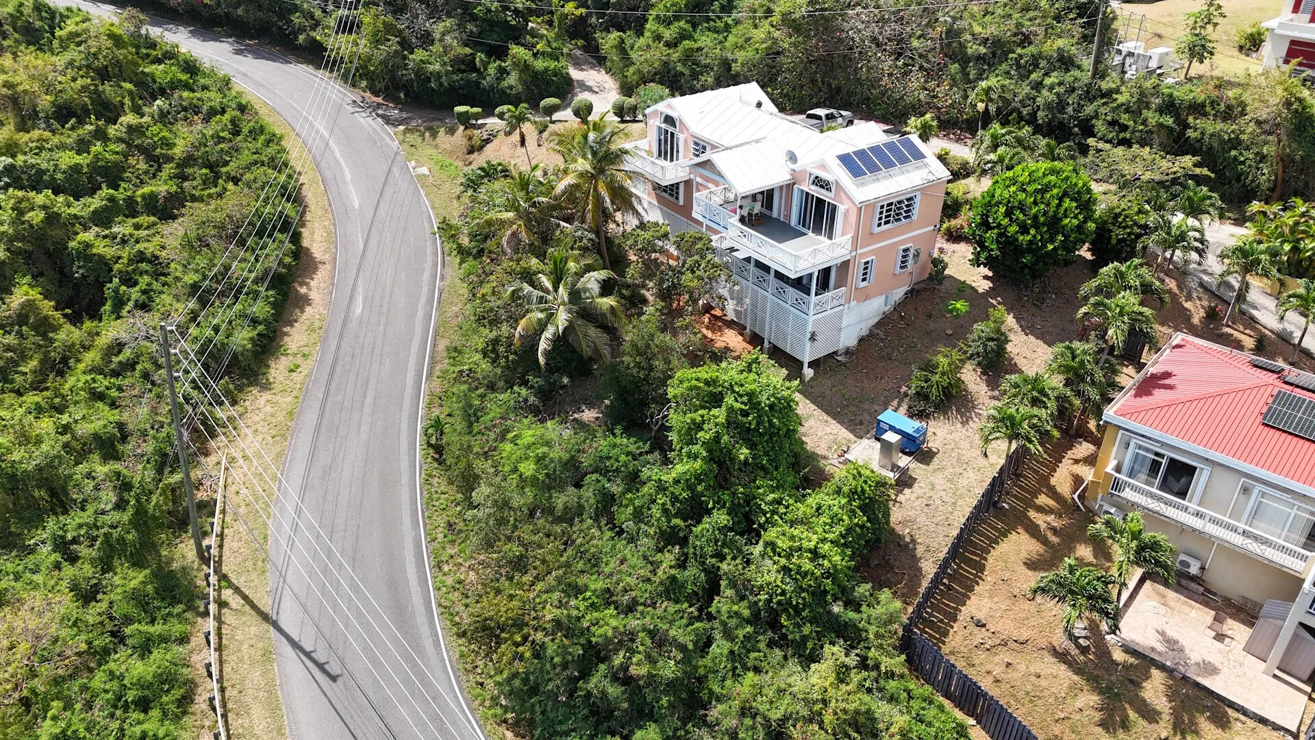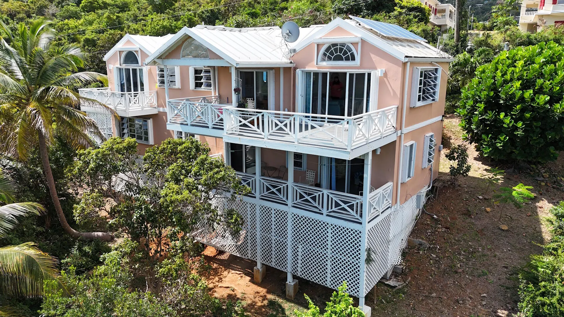 Charming Three Bedroom Three Bath Home with pretty Magen's Bay views, great breezes, a cozy apartment and solar! Centrally located on the cool north side, this family home is minutes to the beach, restaurants, shops and town. Priced to sell. Come take a look today!