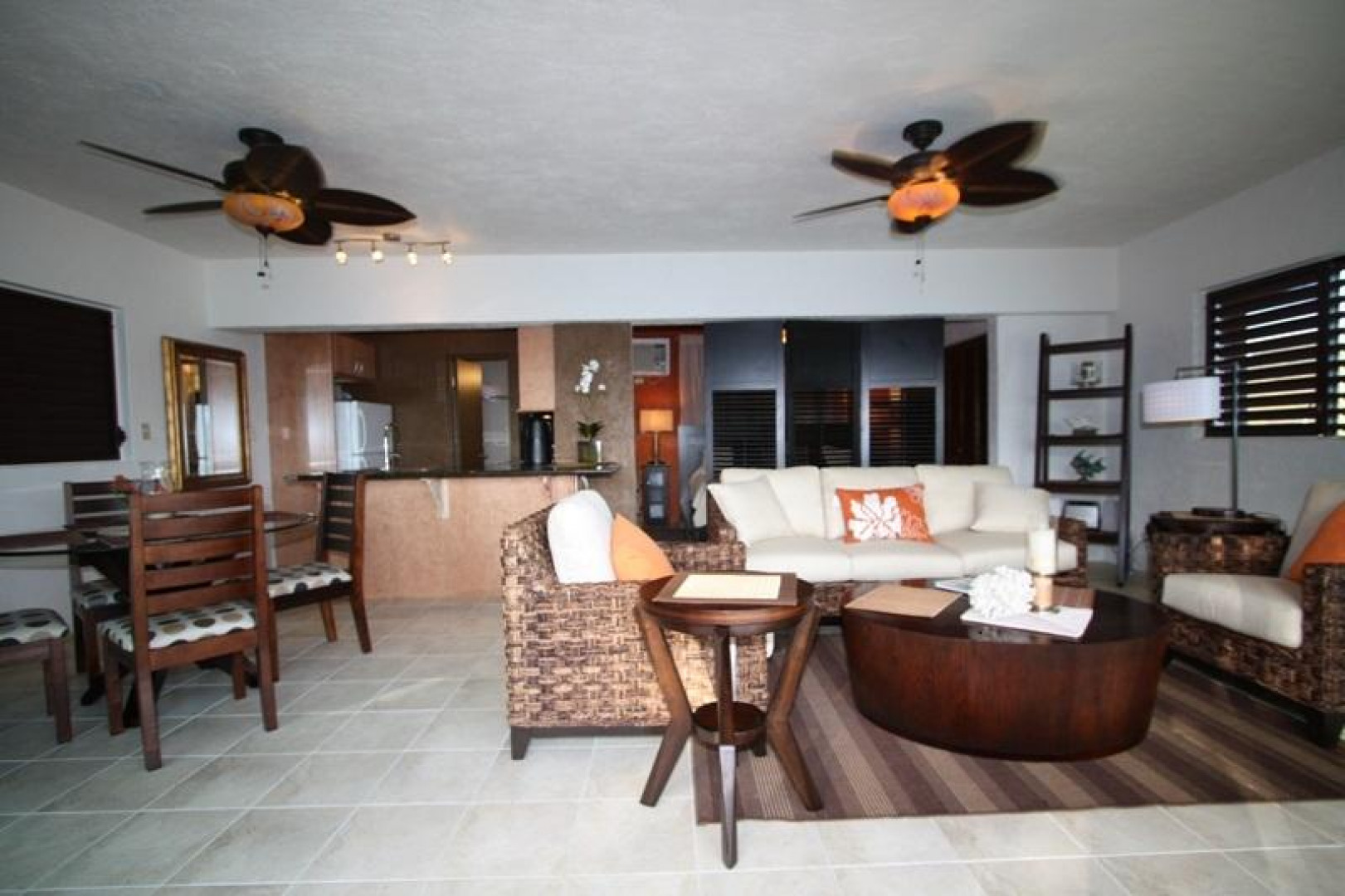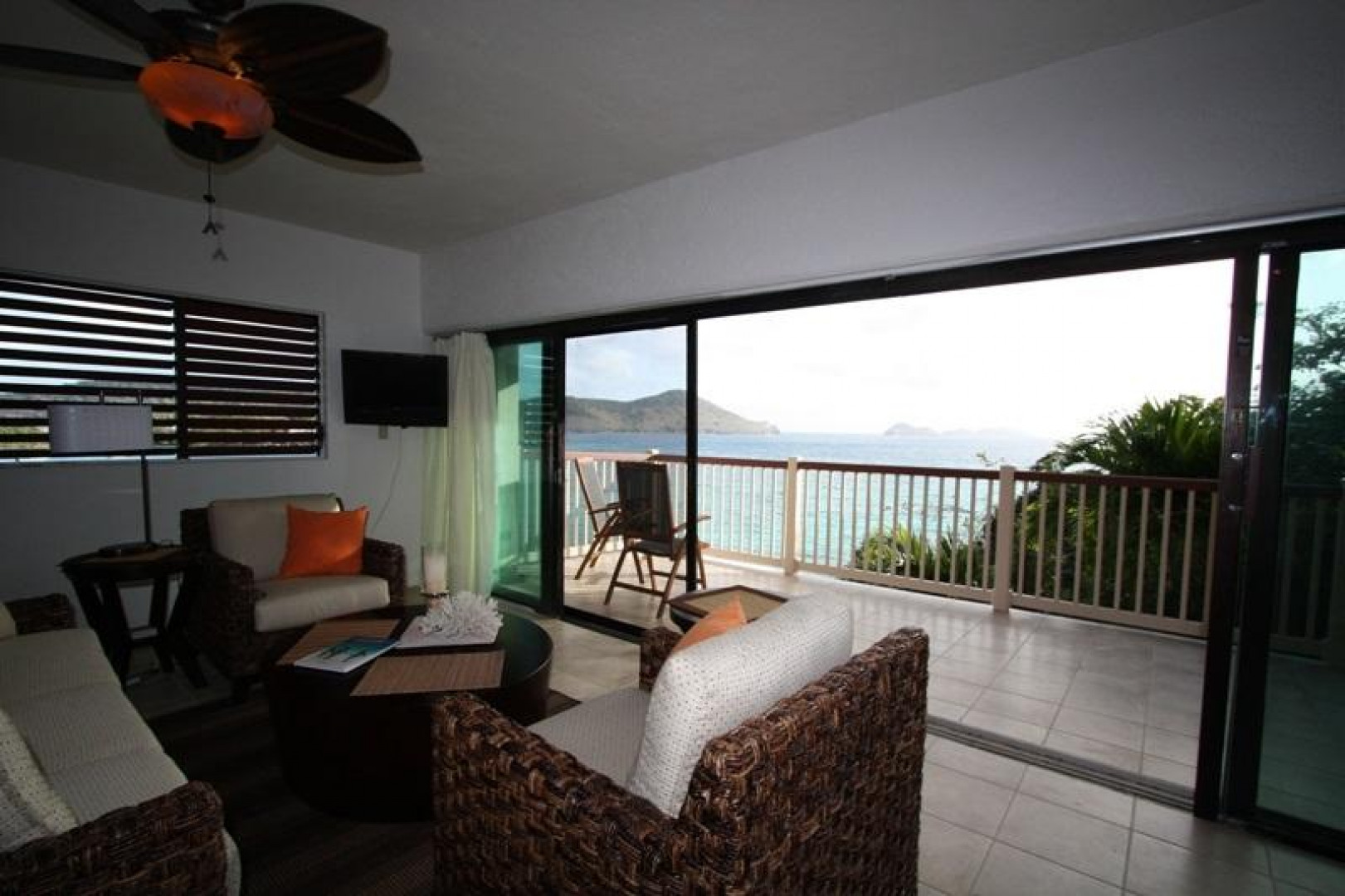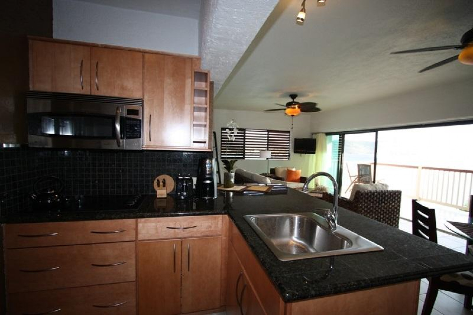 Exquisite waterfront condo, fully remodeled and beautifully furnished. Sit out on the deck and listen to the waves lapping and enjoy stunning views of St. John and the other islands. Walk along to the sugar sand pocket beach or to the waterfront restaurant. Inside, the furniture is comfortable and stylish. Point Pleasant, a gated community, is minutes from Red Hook with its many amenitiesand just a short drive to the excellent 18-hole golf course at Mahogany Run and our world famous beautiful Magens Bay Beach. Point Pleasant's units are surrounded by tropical plants and flower and has hiking trails plus three pools. It's also adjacent to the Margaritaville Resort on Water Bay with a restaurant and public beach. Unlike most other condos, water is included in the condo dues as well as cable TV and internet.. Furnishings are from Silk Greenery and bathroom fixtures from Interiors. This unit is currently a successful vacation rental with 5-star reviews on vrbo.com.