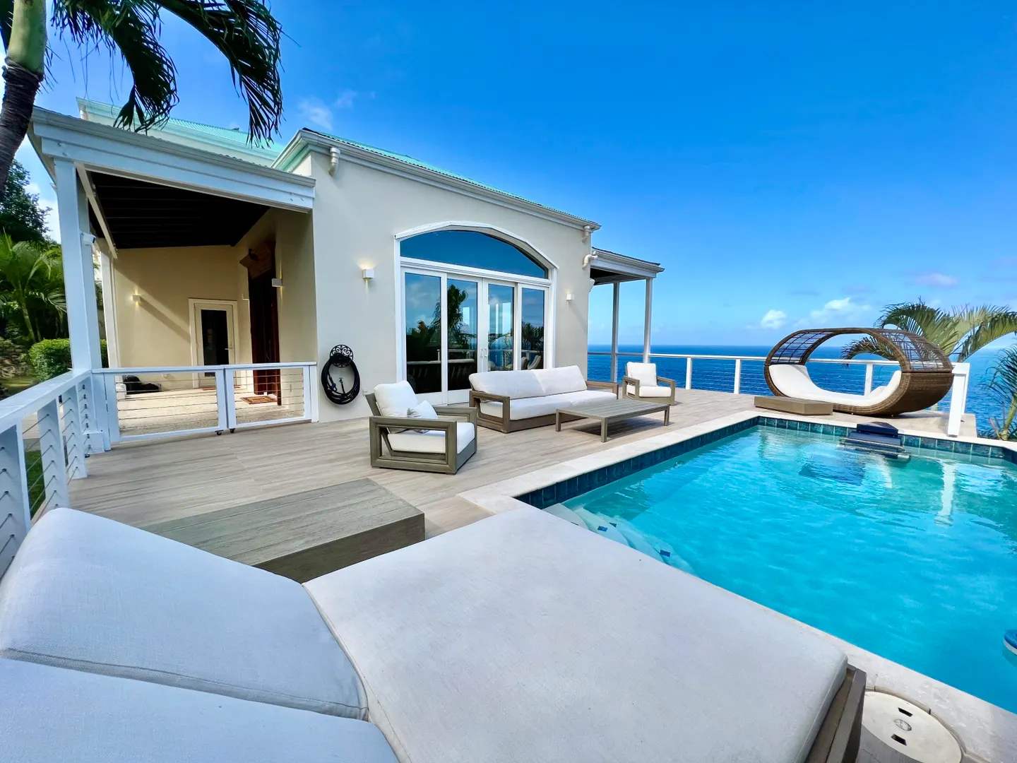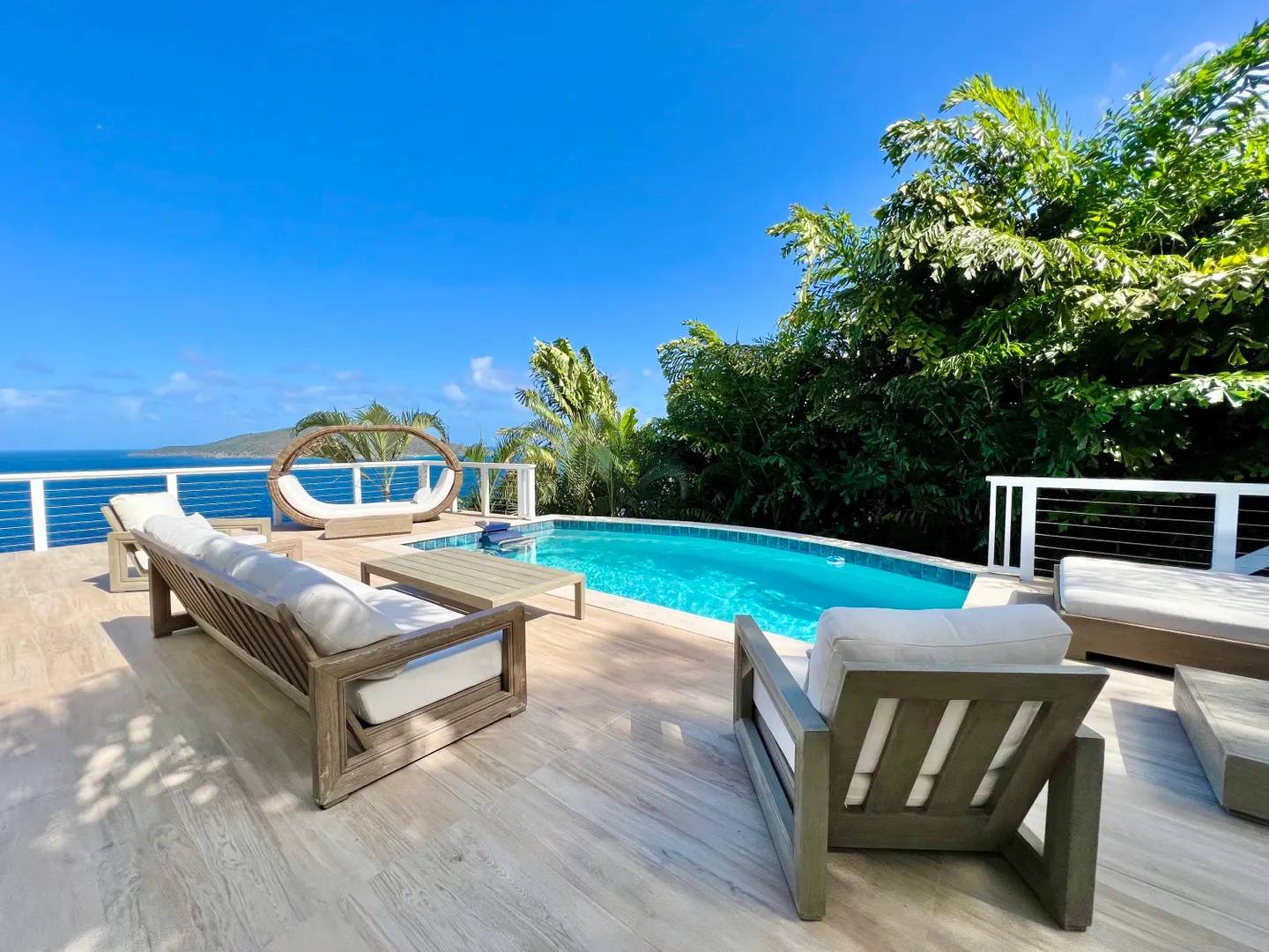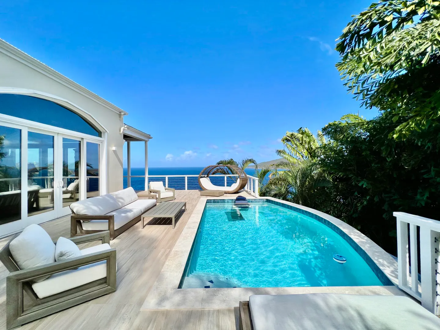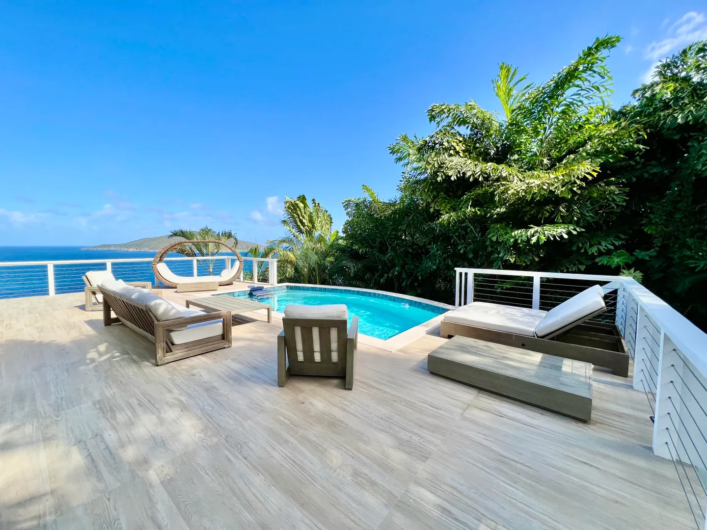 This immaculate and tranquil Caribbean villa with superb amenities provides spectacular, unobstructed views across the Atlantic to Hans Lollik island and beyond. For the athletically minded, the pool features an endless swimming machine, and the villa includes a large and well equipped gym. More of a couch potato? Consider the possibilities: the gym is easily convertible to a home theater, game room or sixth bedroom. Five Tesla batteries and solar panels keep the power on through all outages without the noise and pollution of a traditional generator. The downstairs apartment is as meticulously finished as the rest of the house with a gorgeous, fully appointed kitchen and jacuzzi tub. The villa's vibe is one of privacy and closeness to nature amidst true luxury.