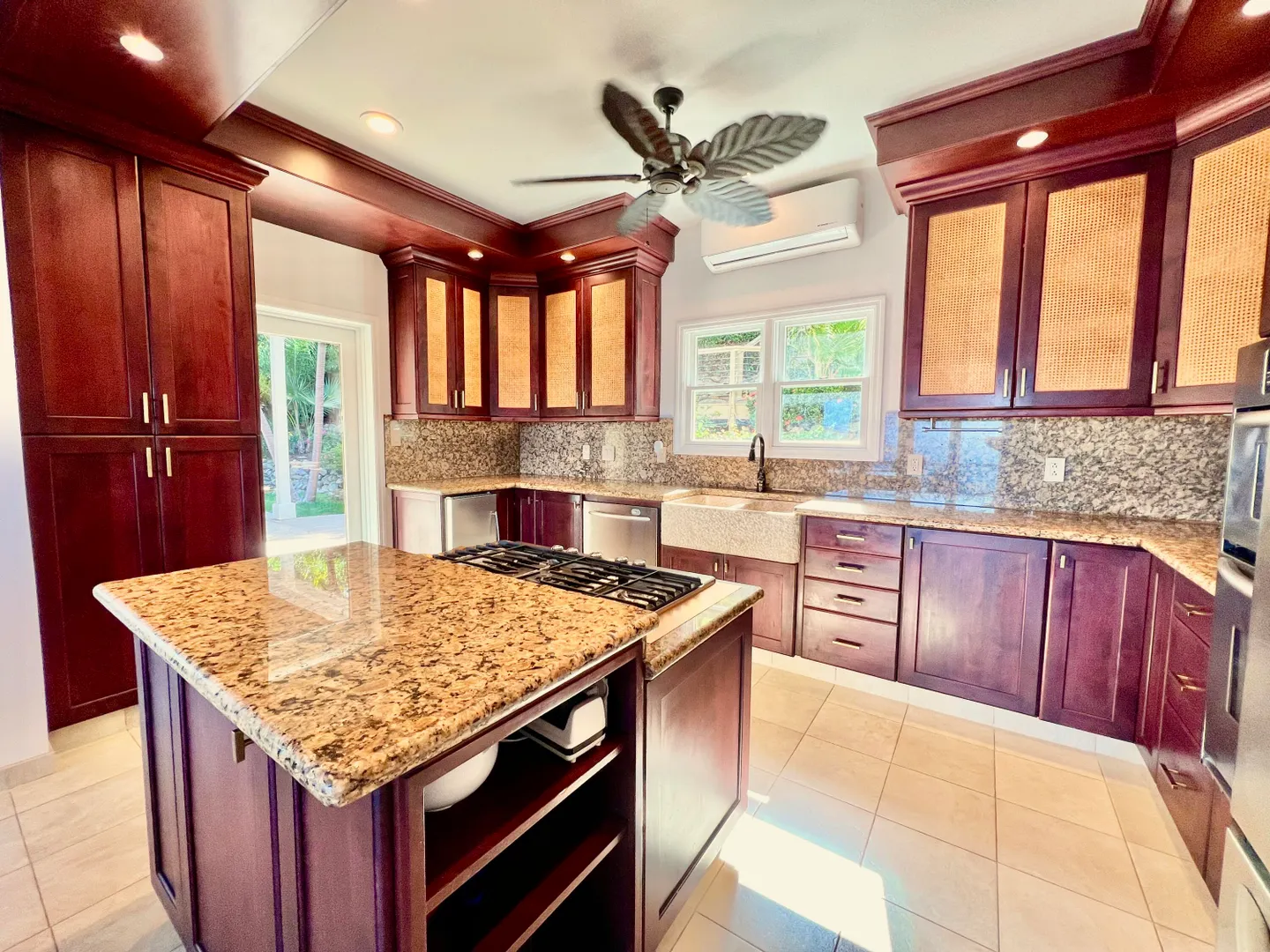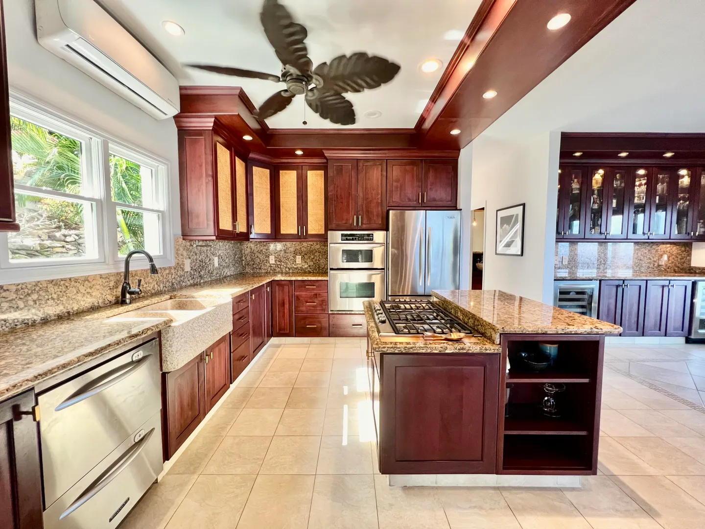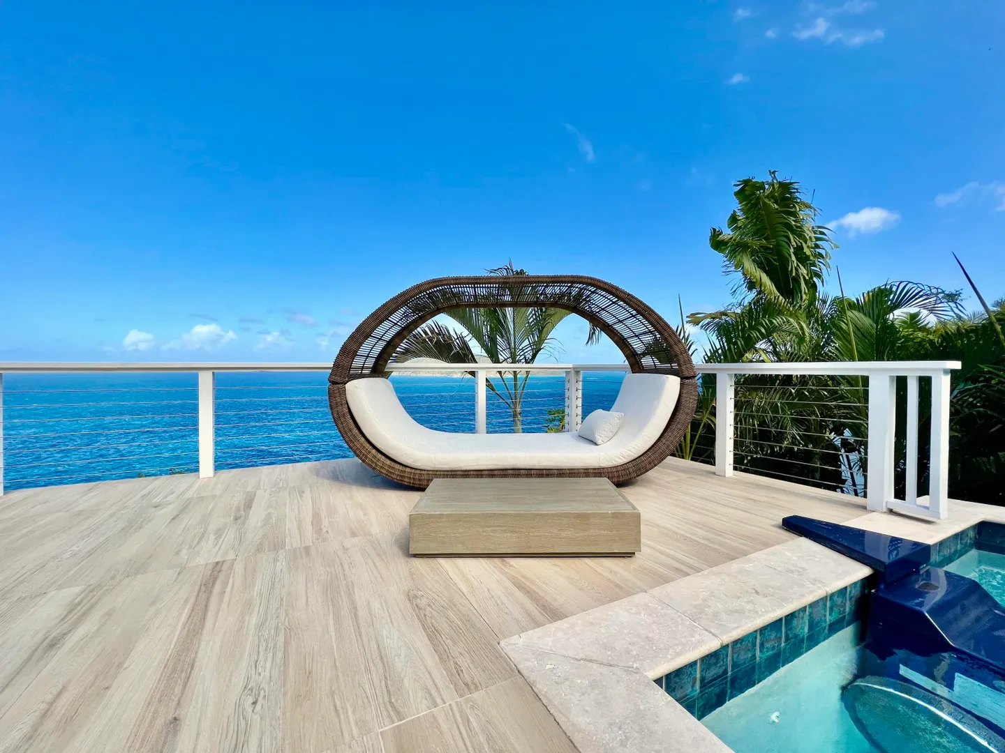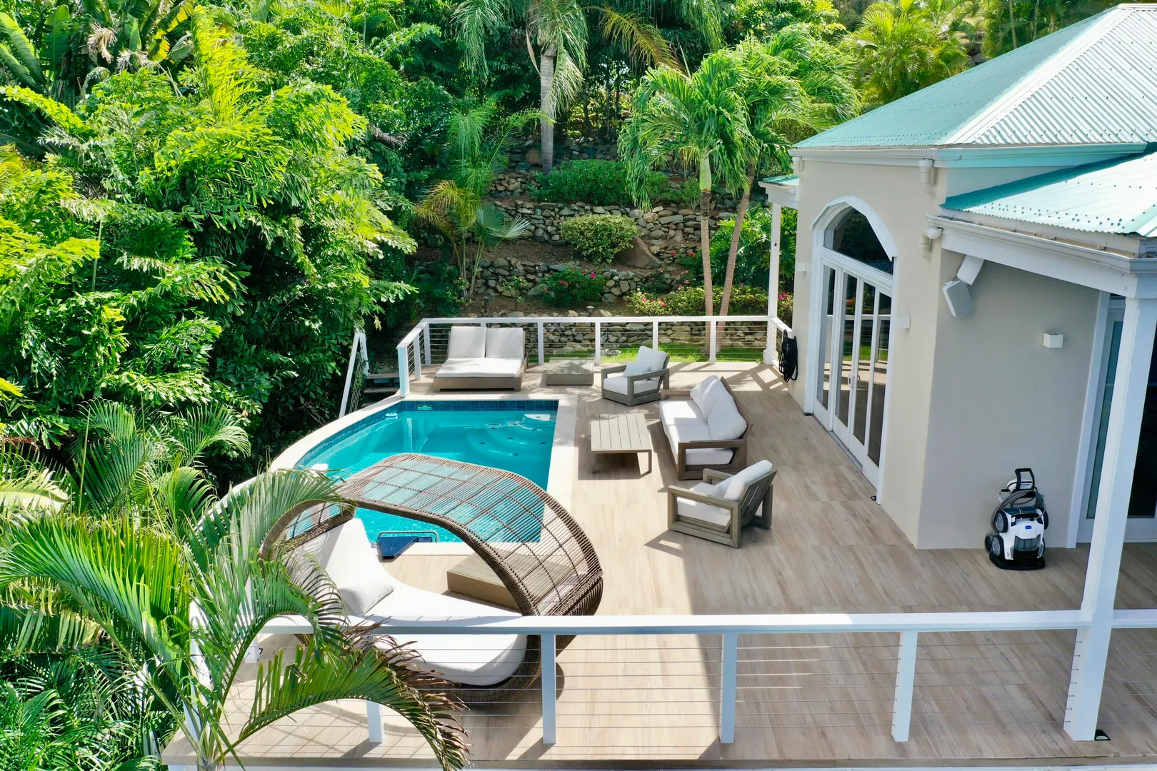 This immaculate and tranquil Caribbean villa with superb amenities provides spectacular, unobstructed views across the Atlantic to Hans Lollik island and beyond. For the athletically minded, the pool features an endless swimming machine, and the villa includes a large and well equipped gym. More of a couch potato? Consider the possibilities: the gym is easily convertible to a home theater, game room or sixth bedroom. Five Tesla batteries and solar panels keep the power on through all outages without the noise and pollution of a traditional generator. The downstairs apartment is as meticulously finished as the rest of the house with a gorgeous, fully appointed kitchen and jacuzzi tub. The villa's vibe is one of privacy and closeness to nature amidst true luxury.