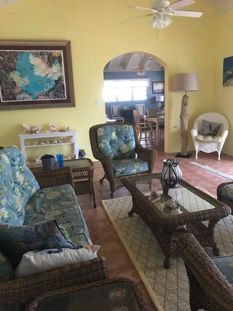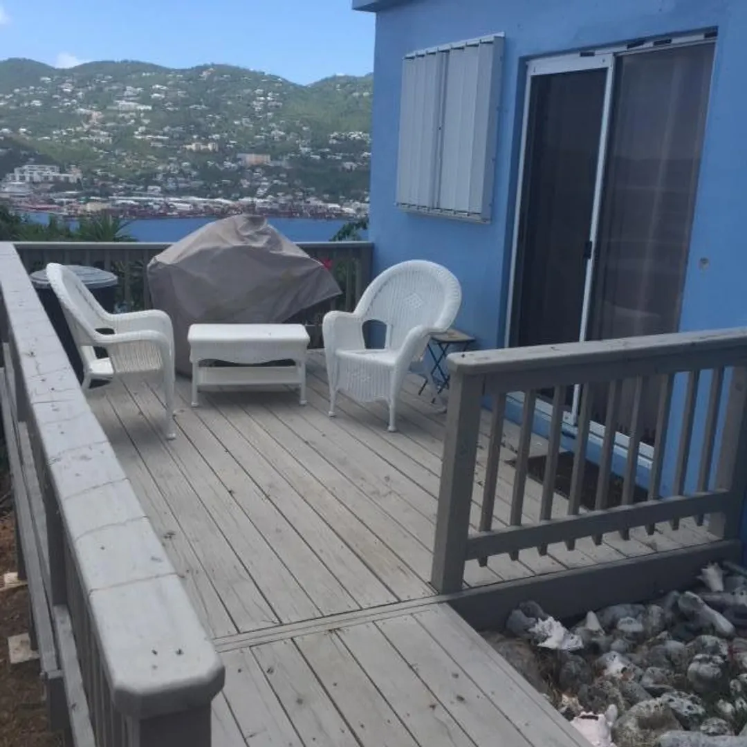 Slow Mocean, Water Island. Crest lot overlooking Crown Bay and cruise ship dock. 2BR/2BA up with 1BR/1BA apartment under. Apartment built in 2017. New kitchen in 2018. Move in condition.