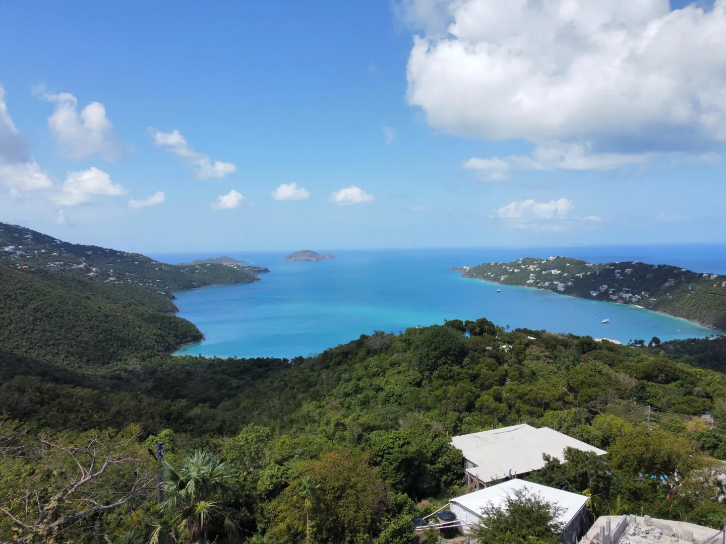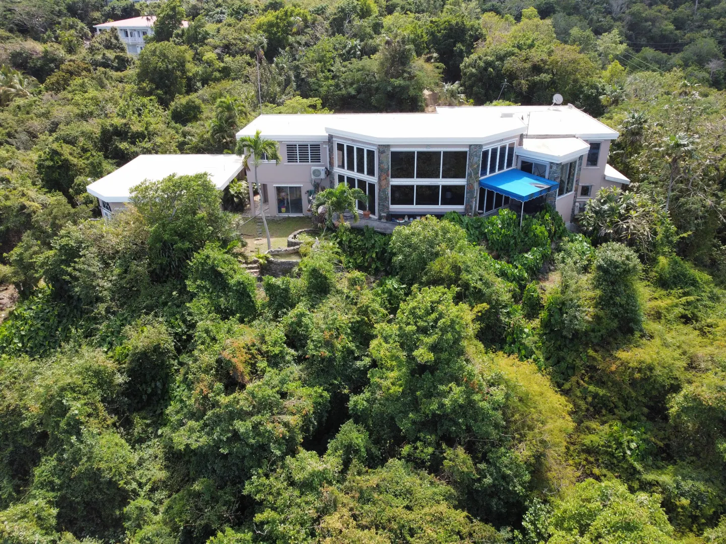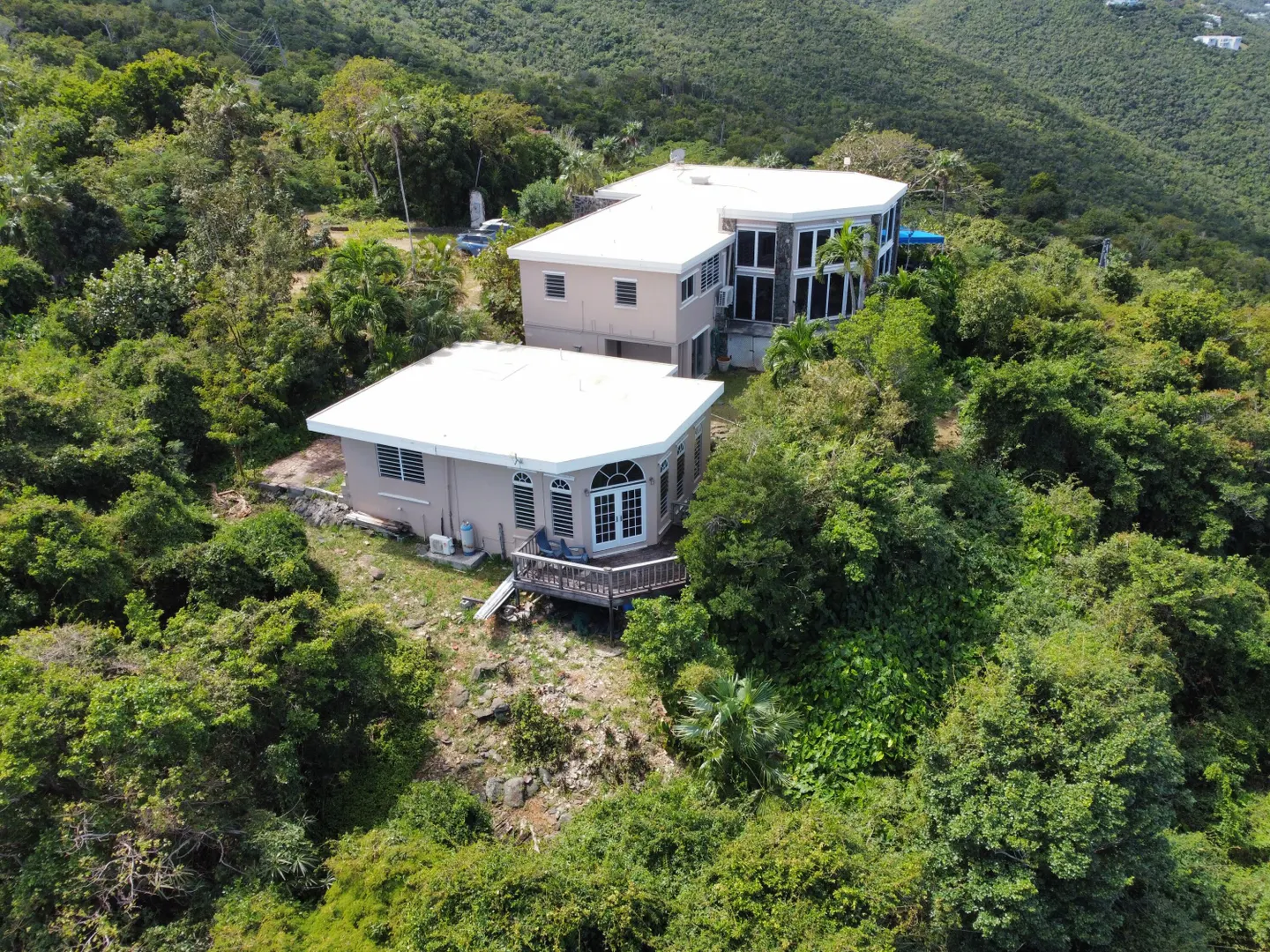 NEVER BEFORE ON THE MARKET! This is truly a rare island gem! Originally built in the 1960s, this home has remained in the family for almost 60 years. Located minutes from downtown Charlotte Amalie and beautiful Magens Bay, access is from Magens Bay Road through a gated driveway, The home and separate cottage sit on almost 4 acres of lush, mature greenery. The acreage offers unusual privacy but also the opportunity to expand the home or build additional units and create a compound. The Magens Bay view is stunning from the awning covered west terrace where you can enjoy sunny daytime and sunset views. Move right in, remodel, or expand. PLEASE VIEW ATTACHED DOCUMENTS FOR LIST OF UPDATES TO HOME AND SURVEY OF PARCELS. Owner is licensed real estate broker.Owner has an as built/title survey dated November 2023. Bound posts have been exposed and flagged. There is a large swimming pool that was decommissioned years ago that could be restored. Many updates to the home were done in 1994, 1996 and 2018. Property consists of 4 parcels totaling approximately 3.9 acres. Views of Magens Bay but also of Hans Lollick, St. John and BVI so there are nice breezes, and sunset and sunrise views!