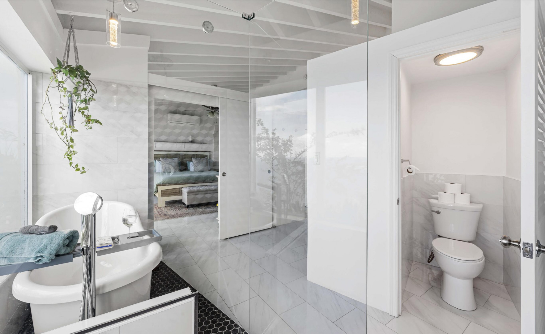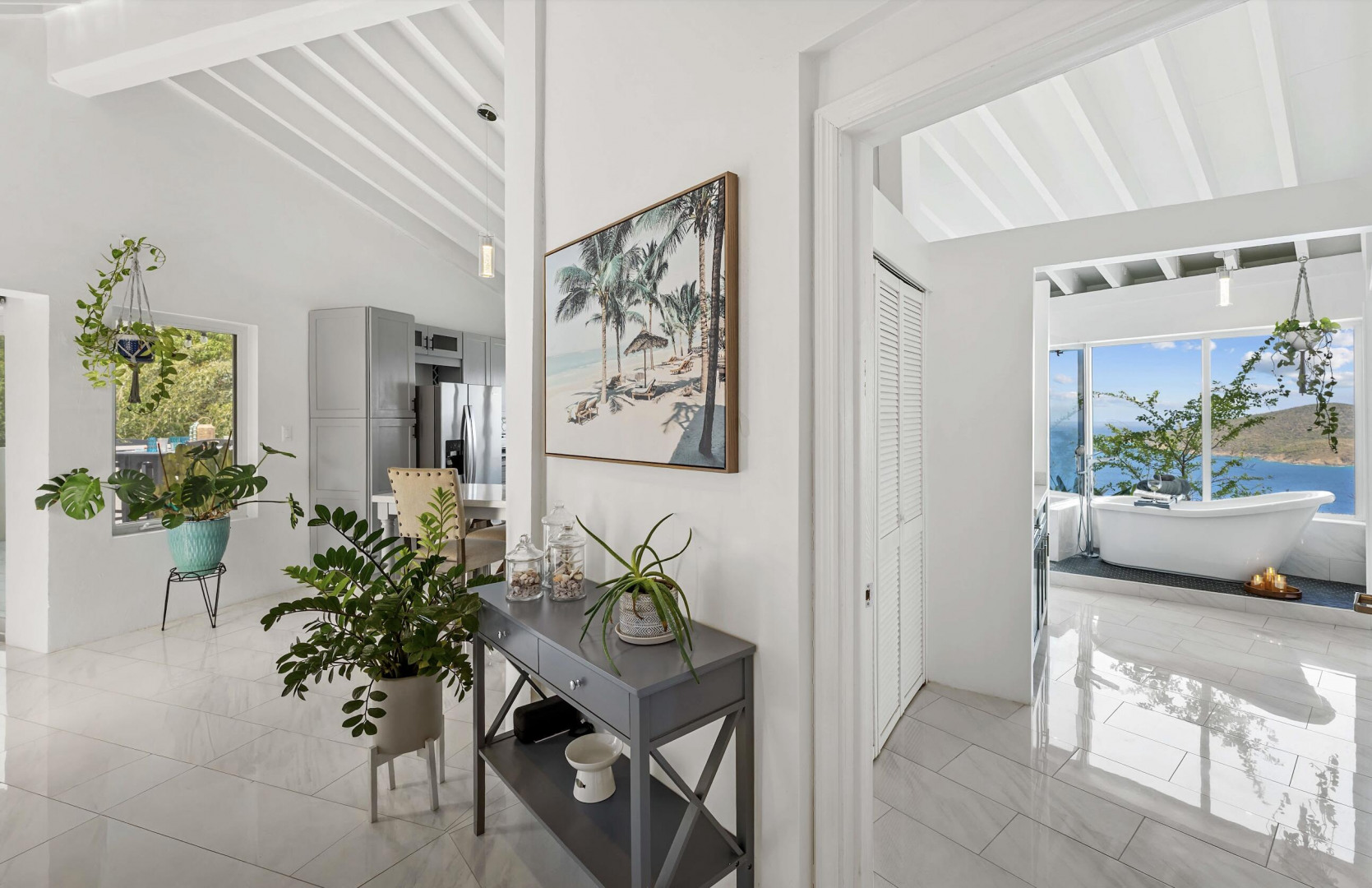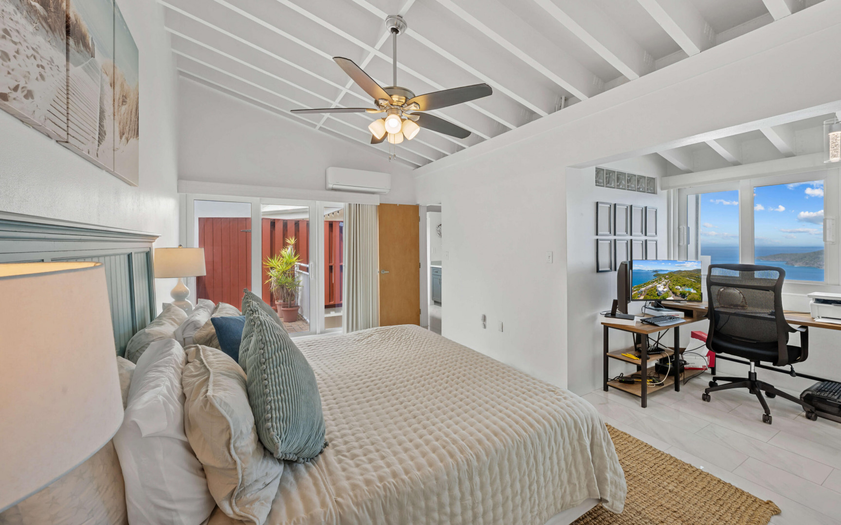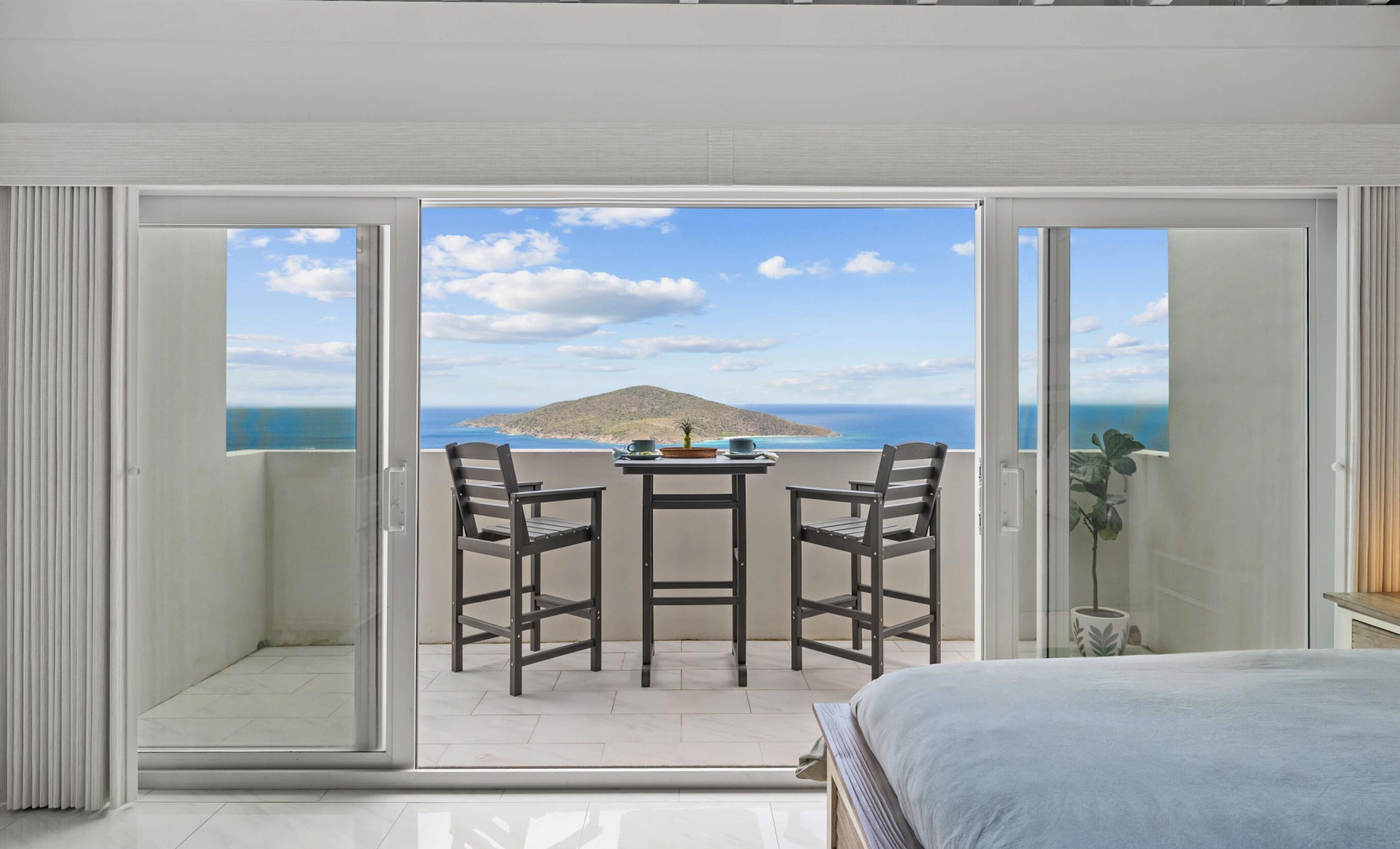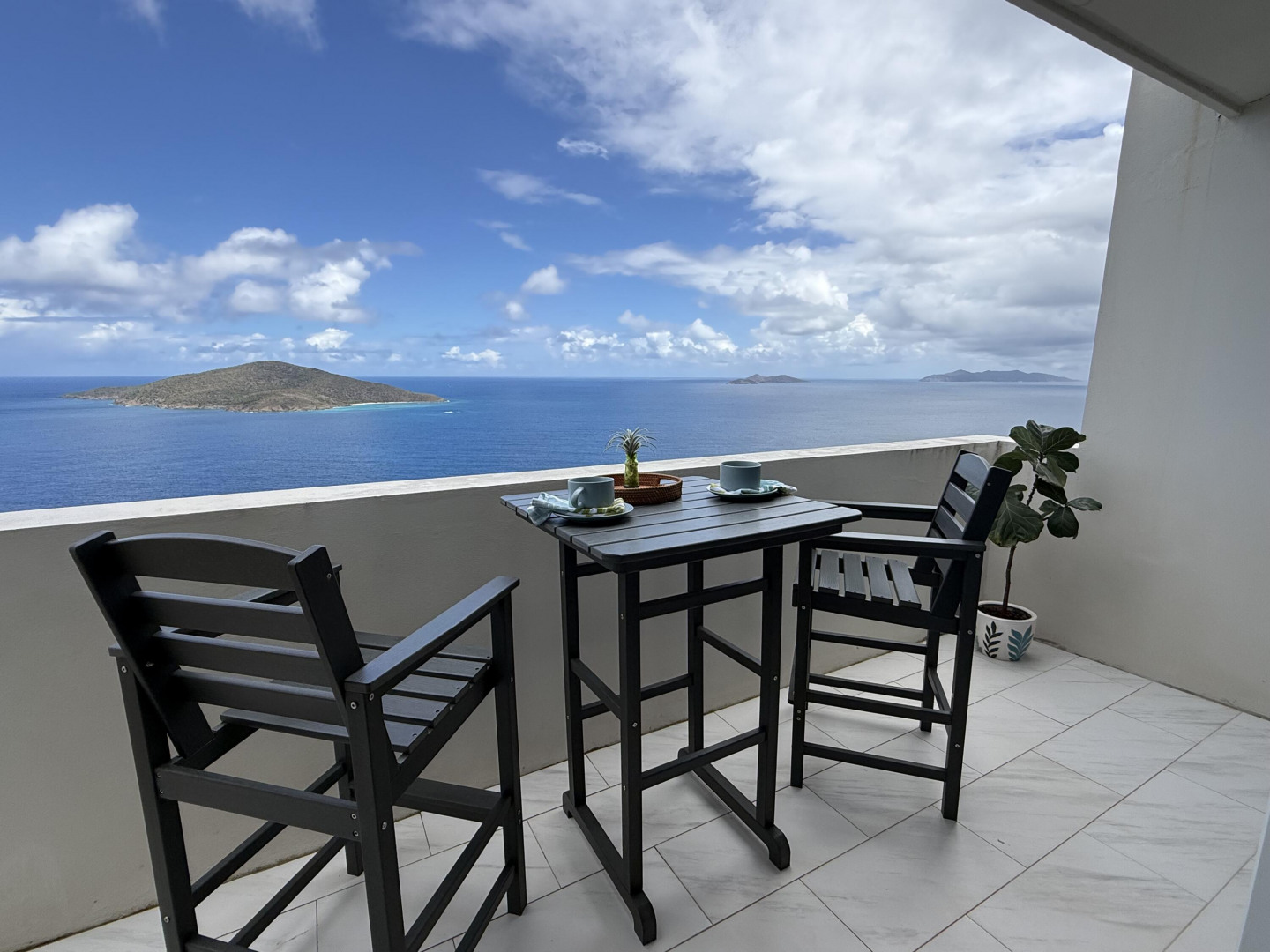 Welcome to one of the most thoughtfully reimagined residences at Mahogany Run, a fully renovated 2 Bed - 2 Bath condominium where Caribbean luxury meets effortless island living. Soaring beamed ceilings, gleaming polished tile floors, and an open, light drenched layout signal that this is no ordinary condo. The split wing floor plan gives each bedroom suite its own private sanctuary. The primary suite is serene, spacious, and styled with elegance, opening onto a private balcony overlooking the Atlantic. The second suite is equally impressive, tucked into its own private wing with a private entrance. The expansive roof top patio is arguably the finest vantage point in all of Mahogany Run. This home delivers an unmatched combination of style, privacy, and breathtaking natural beauty.