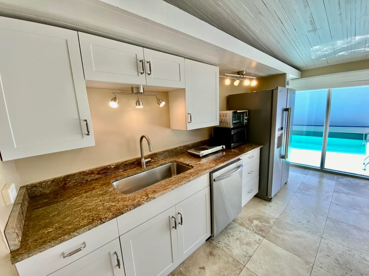 Unique among all the St Thomas condo complexes, each of these one bedroom condos has its own pool within a fenced patio for perfect privacy and a quiet place of retreat and you are just a short walk from the incomparable Sapphire Beach. It's location on the east end of St Thomas puts you within 5 minutes drive of a myriad of beaches, restaurants, marinas, stores and the ferry to St John giving you the best of all worlds. Monthly dues include pool cleaning and servicing, all water usage and internet and cable and the complex has a generator to power units in the event of a power outage. This owner has just upgraded the kitchen with new cabinetry with granite counters and new appliances and the bathroom with a new vanity. The property is in mint condition and ready for occupancy