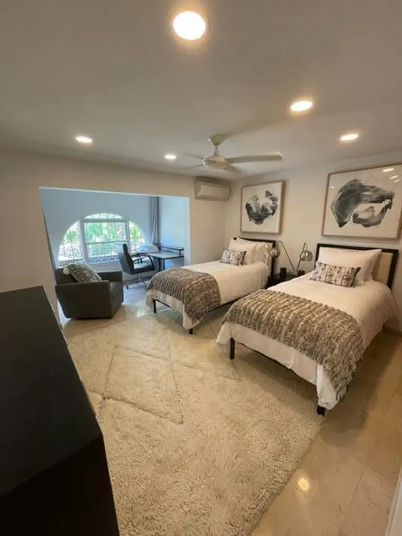 Cowpet Bay East sits on a White Sandy Beach with 2 restaurants, swimming area, lounge chairs, and beach and water toy rental concession. Bay and Ocean Views. Custom remodeling from floor to ceiling, including Spanish marble floors and showers; cherry wood cabinetry; quartz countertops; electric hurricane shutters; high-end stainless steel bathroom and kitchen appliances and fixtures; recessed LED lighting, Insulated sliding glass doors; and USB outlets. There is ample storage including pantry/laundry room.