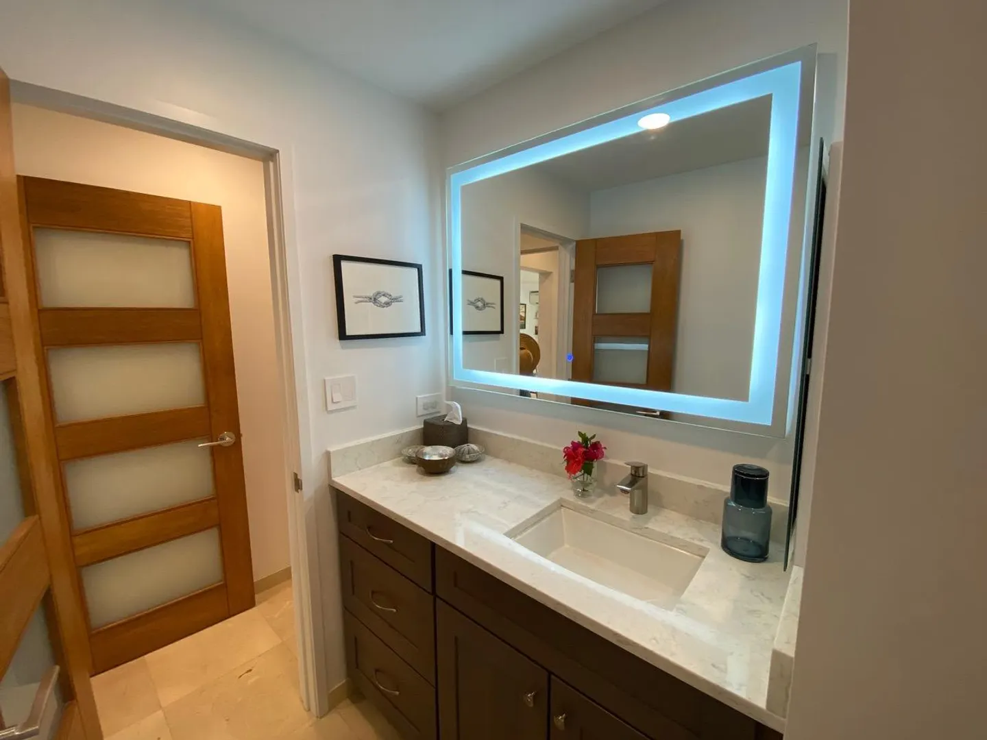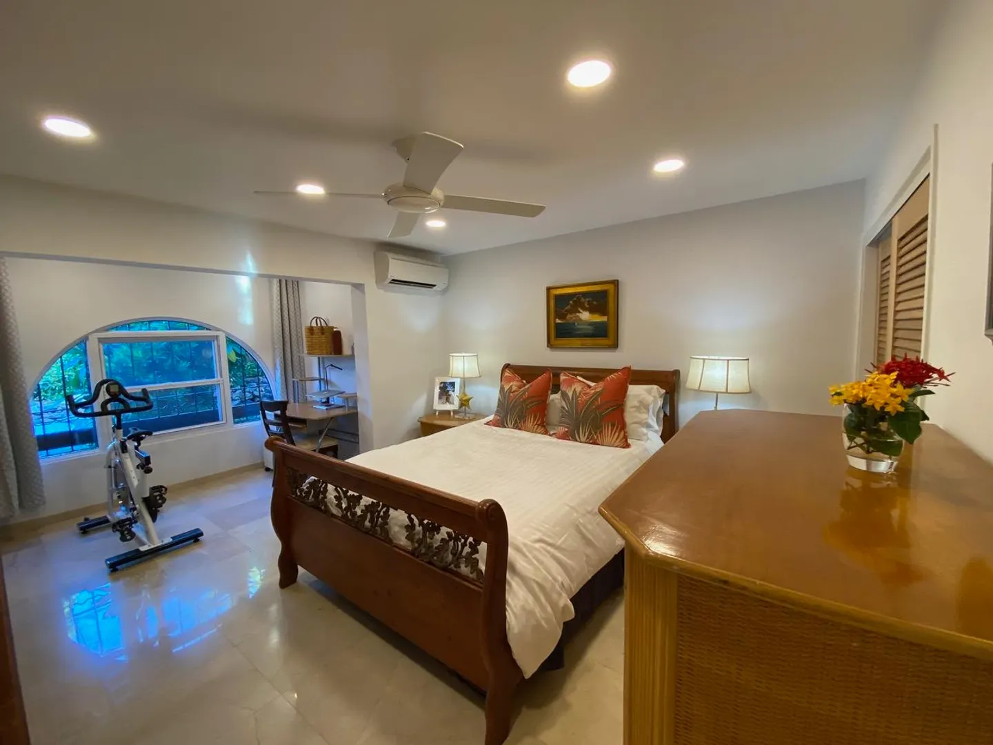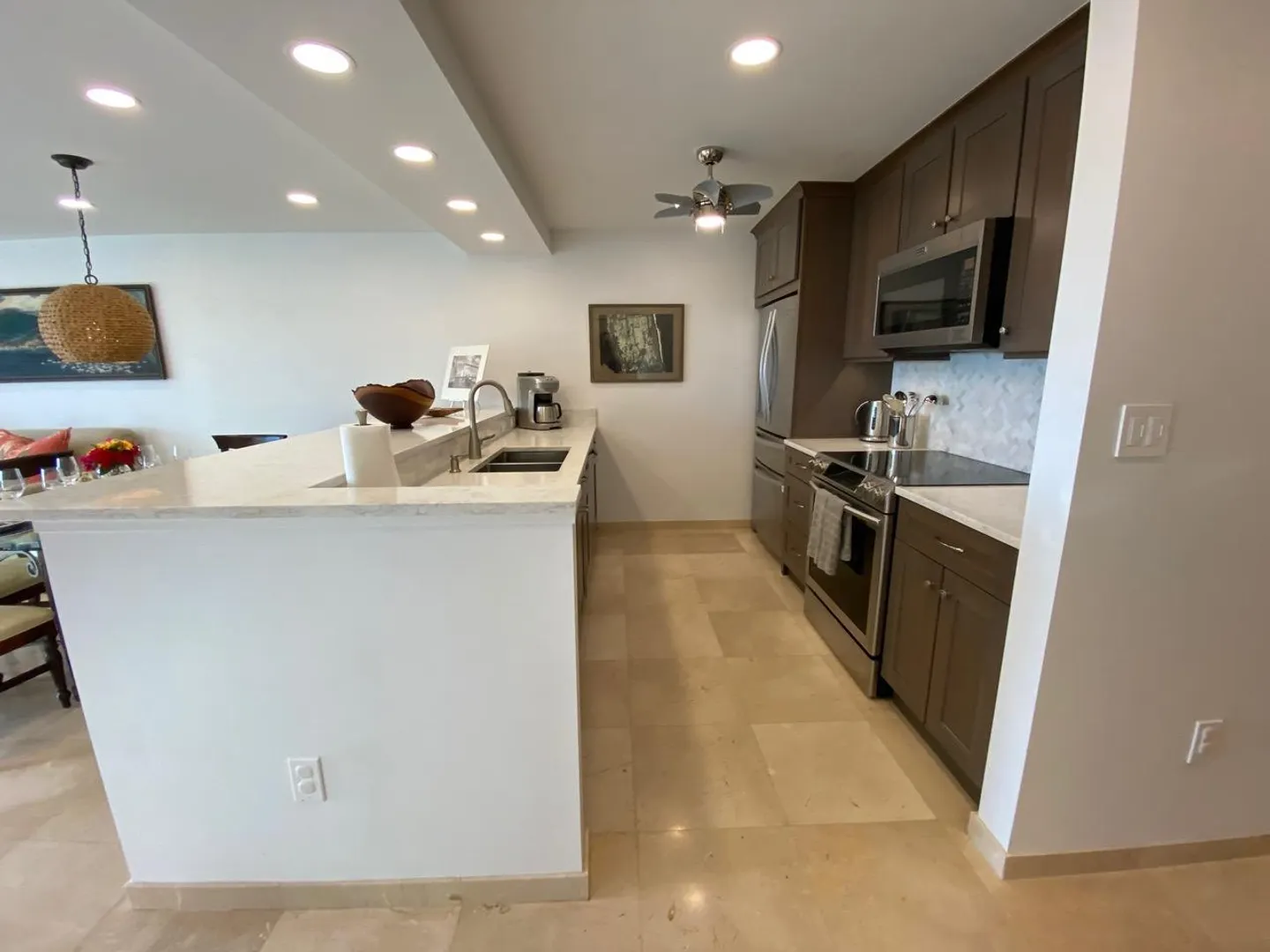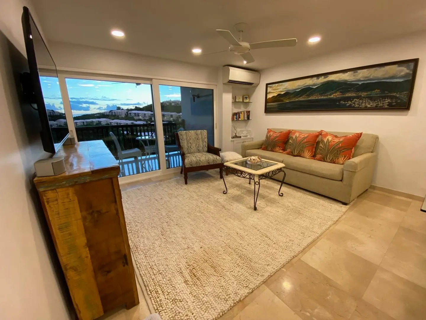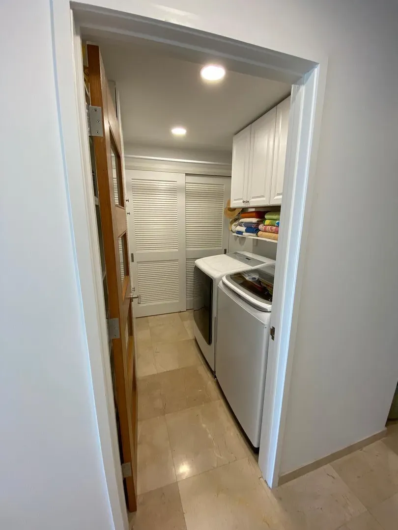 All you need is your bathing suit and personal design flair. Just steps away from beautiful Cowpet Bay beach with it's turquoise water and lounge chairs, this fully renovated oasis, in the East End's premier complex of Cowpet Bay--is move-in ready. Custom remodeled from floor to ceiling, the luxurious amenities include Spanish marble floors and showers; stained cherry wood cabinetry; quartz countertops; electric hurricane shutters; no-frame, by-pass glass shower door; hardwood and frosted glass interior doors; high-end stainless steel bathroom and kitchen appliances and fixtures; recessed LED lighting and light-up bathroom mirrors; picture-sized, insulated sliding glass doors; and USB outlets throughout. With keen attention to detail, the ample storage includes, pantry/laundry room,