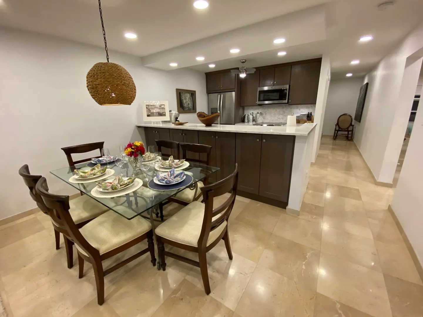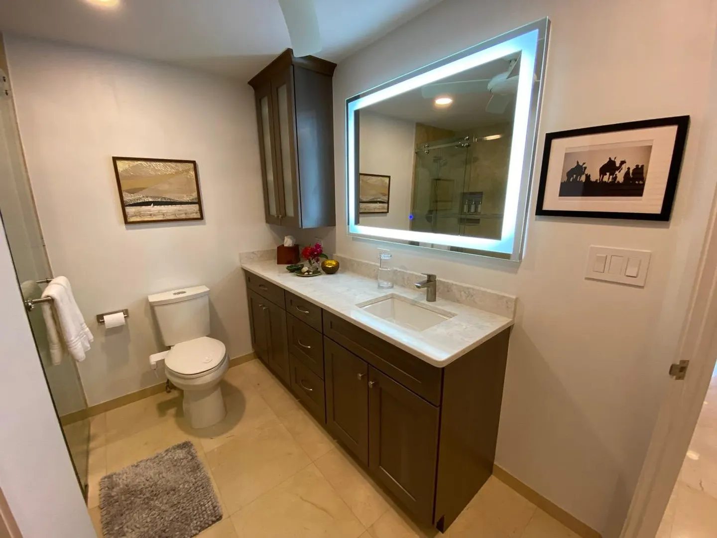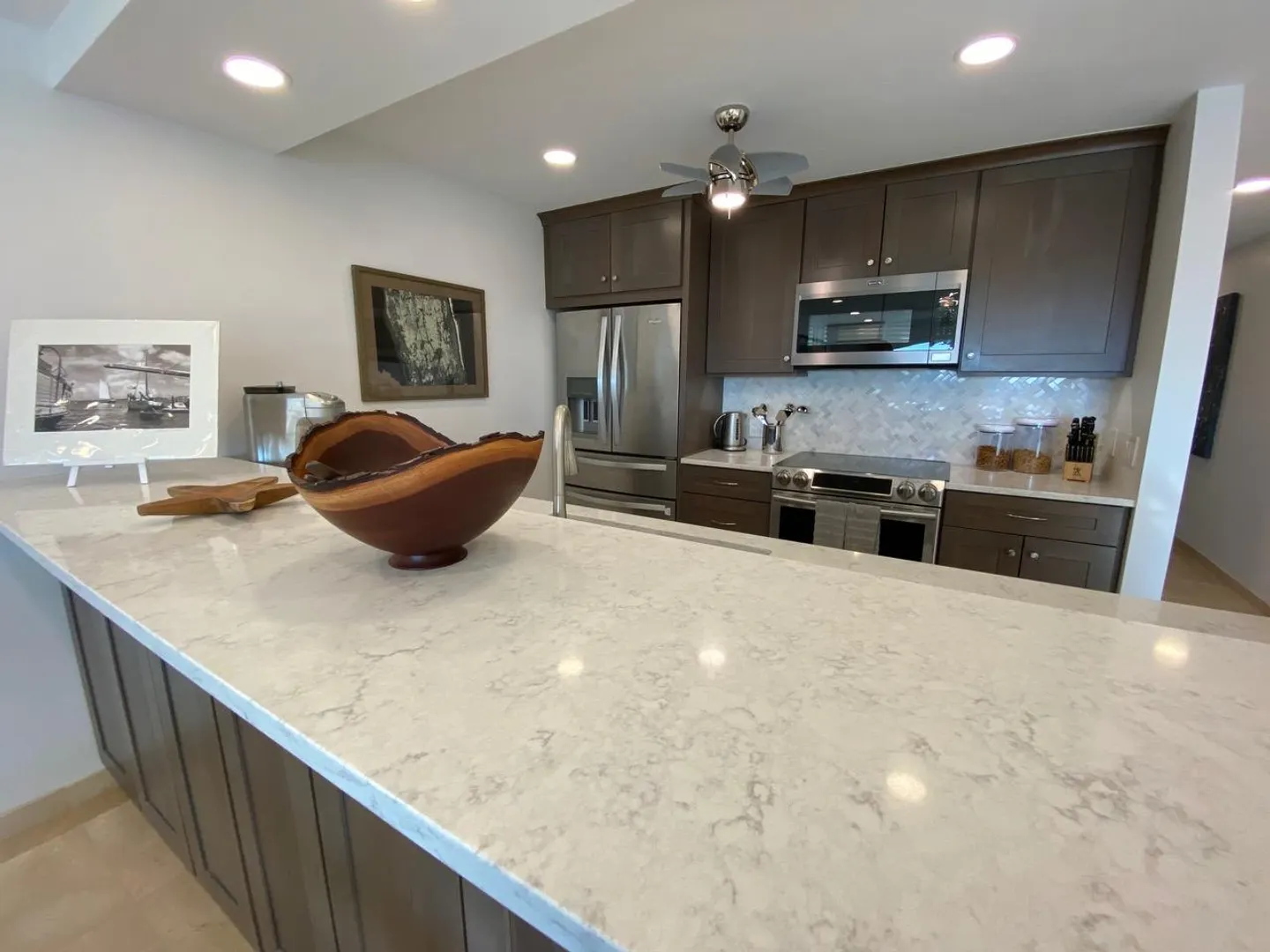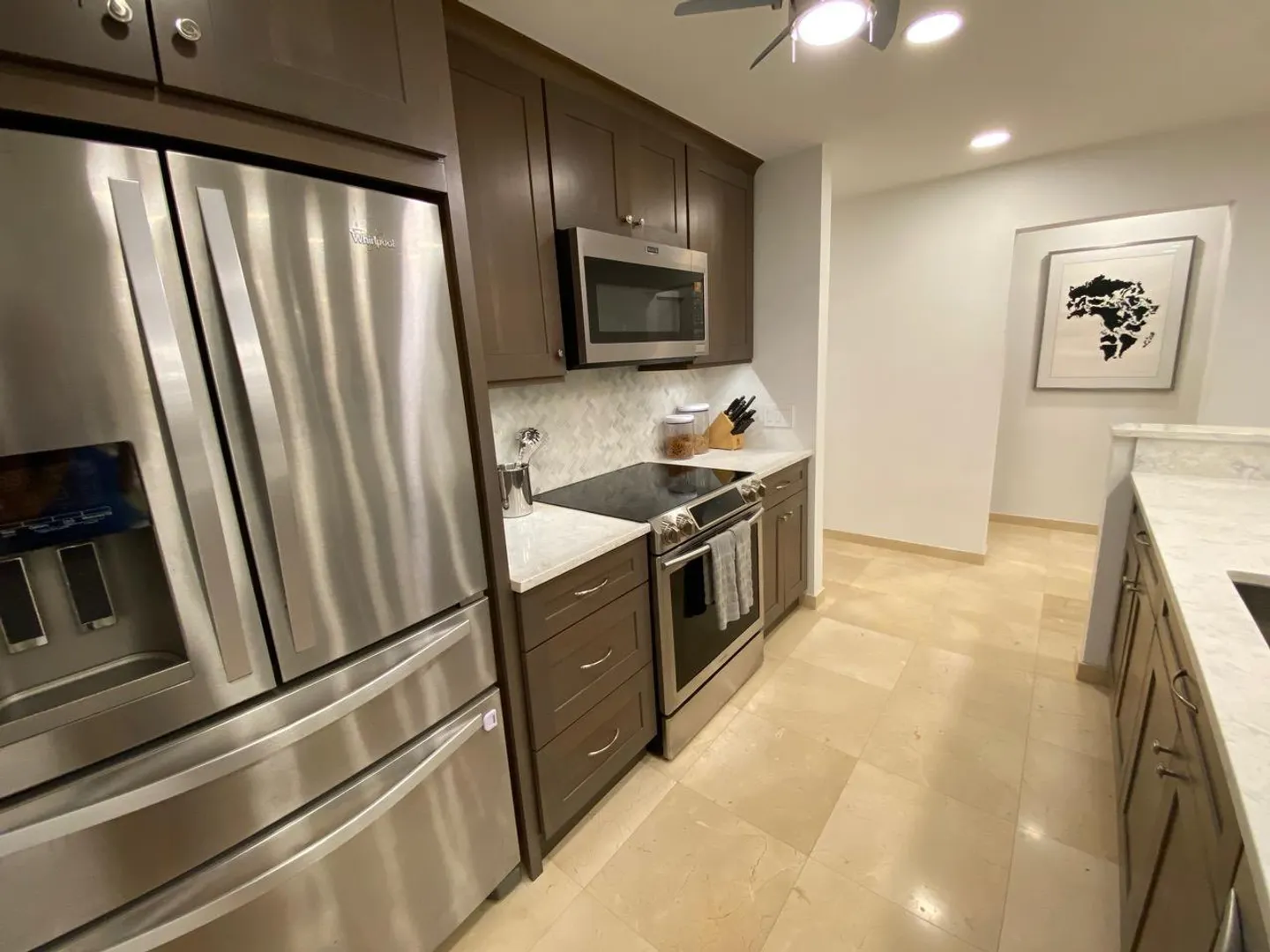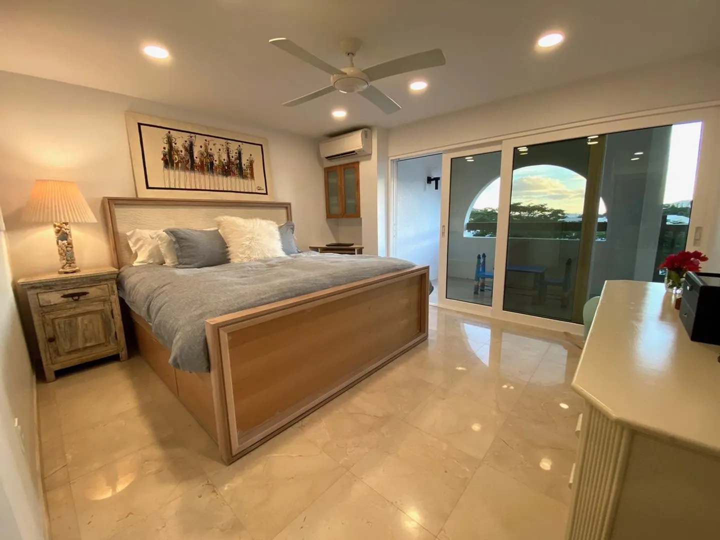 All you need is your bathing suit and personal design flair. Just steps away from beautiful Cowpet Bay beach with it's turquoise water and lounge chairs, this fully renovated oasis, in the East End's premier complex of Cowpet Bay--is move-in ready. Custom remodeled from floor to ceiling, the luxurious amenities include Spanish marble floors and showers; stained cherry wood cabinetry; quartz countertops; electric hurricane shutters; no-frame, by-pass glass shower door; hardwood and frosted glass interior doors; high-end stainless steel bathroom and kitchen appliances and fixtures; recessed LED lighting and light-up bathroom mirrors; picture-sized, insulated sliding glass doors; and USB outlets throughout. With keen attention to detail, the ample storage includes, pantry/laundry room,