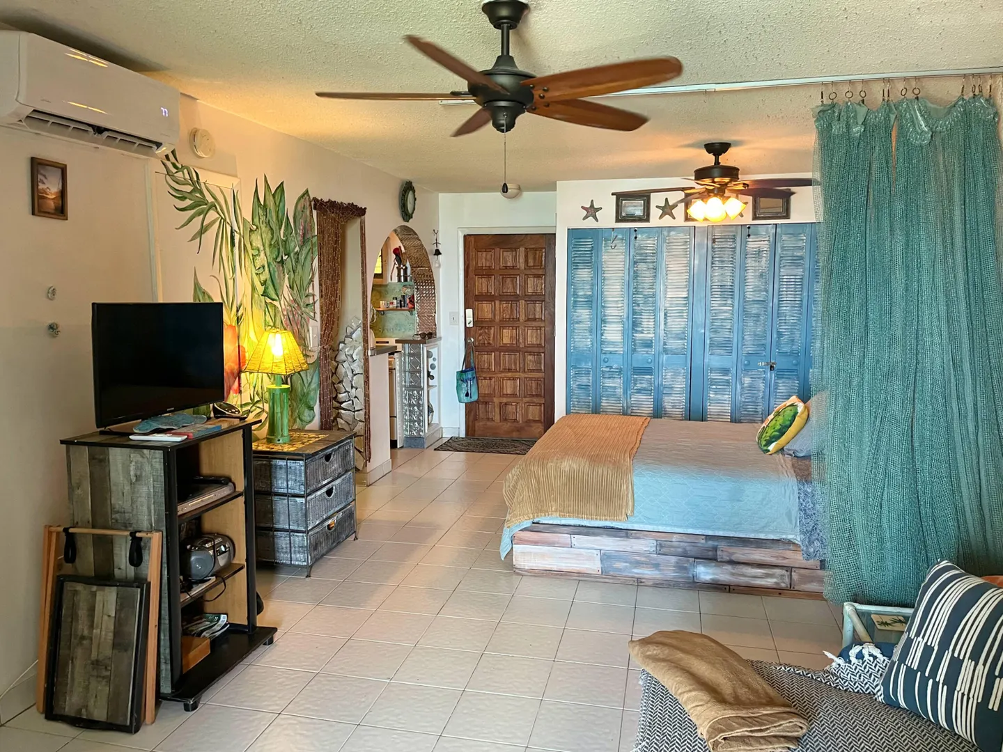 Walk in level condo on the east end that is walking distance to one of the most beautiful St Thomas beaches - Sapphire Beach. This condo is gated, has 4 restaurants and a coffee shop within walking distance and is a short walk to the beach. The beachy decor comes with the condo! Use as your own warm getaway and/or rent it out for income. It is currently used as a vacation rental and has a high occupancy rate! Generator for the property to be installed in 2026.