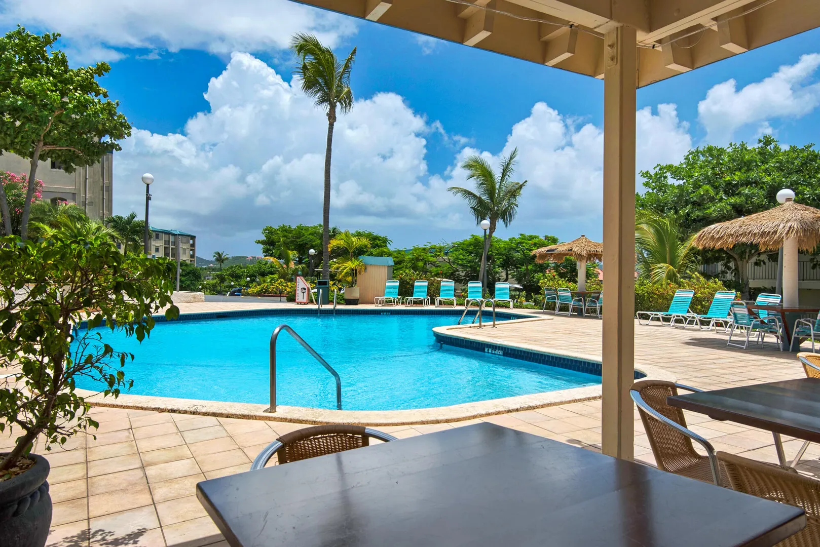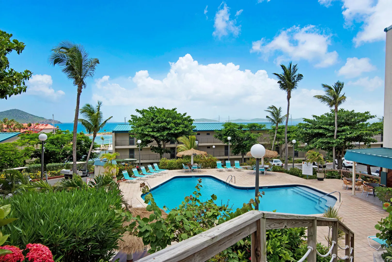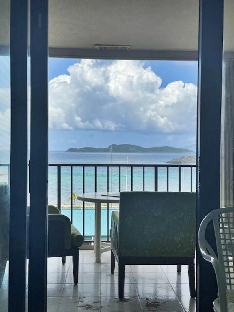 Conveniently placed close to the pool and moments from beautiful Sapphire Beach, this one-bedroom Sapphire Village unit is on the top floor of Tobago building. It offers a remodeled kitchen and bathroom, split AC units, front loading washer/dryer and on-demand water heater. Outside the patio enjoys stunning views over to the cays and St. John. Sapphire Village is gated with two pools and a restaurant, just a few minutes from Red Hook. You can also take advantage of the restaurants, bar, watersports etc. down at Sapphire Beach.Sapphire Village is a sought after location both for vacation rentals and full time residential living. The installation of a backup generator is under way.