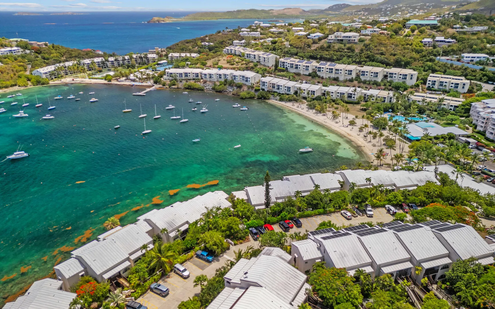 Step into the character and warmth of 16 Tara Way, where a relaxed boho vibe meets the coveted Cowpet Bay lifestyle. Perfectly positioned between the Ritz-Carlton and the Elysian Beach Resort, this spacious condo offers 3 bedrooms, 3 bathrooms, and a versatile bonus room--ideal for a home office, studio, or guest space.Inside, light-filled spaces and inviting textures create a casual yet refined atmosphere. Multiple balconies invite you to sip morning coffee or evening cocktails while watching unforgettable sunsets over the bay.Enjoy on-site dining at multiple restaurants, stroll to the sandy beach, or opt to join the Elysian's pool club for resort-style relaxation. This property offers all the comforts you could want!Cowpet Bay East is VA Loan Eligible!