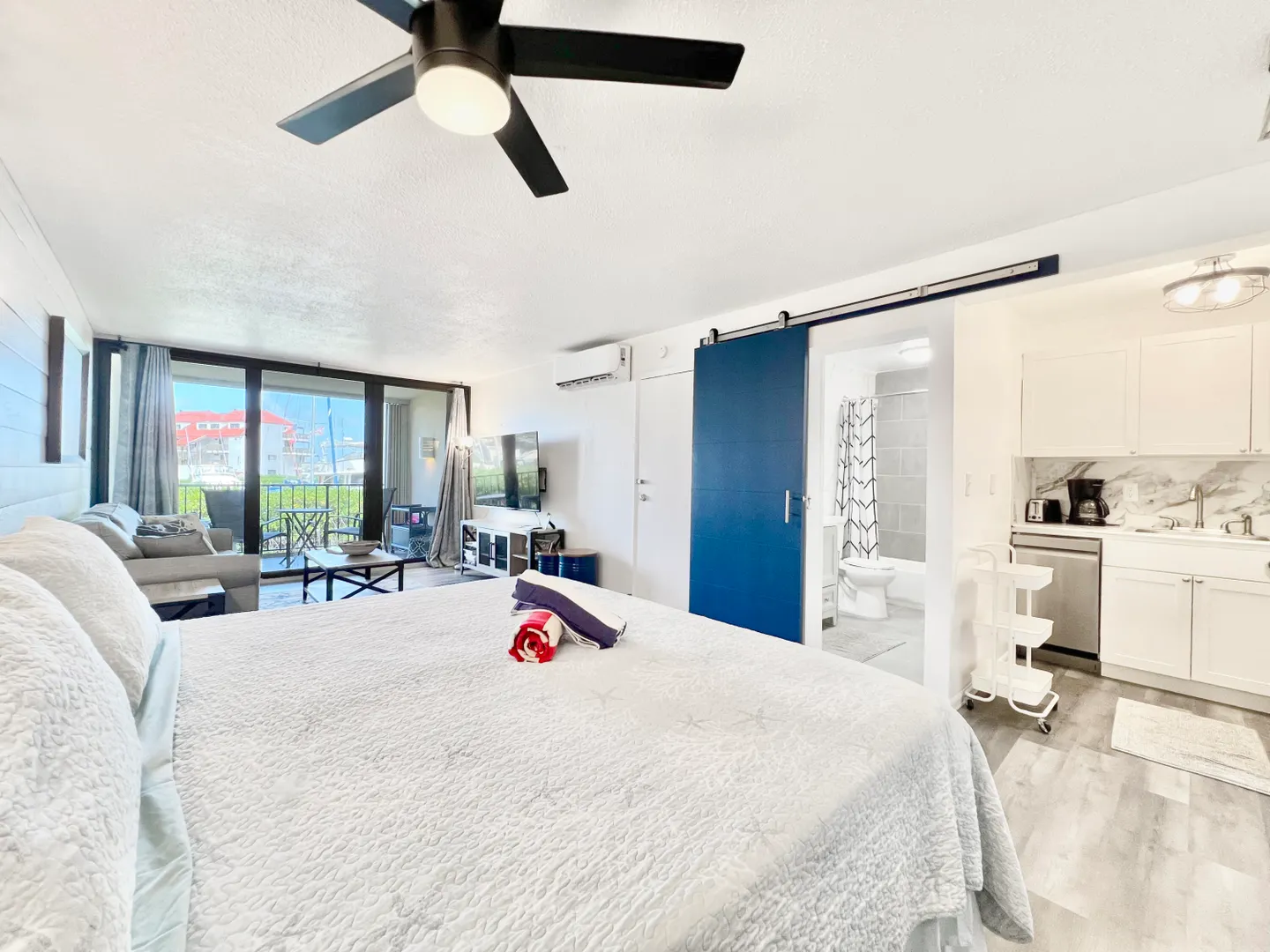 This successful short term studio condo, nestled in the sought-after Sapphire Hill Village on the picturesque east end of St. Thomas, is a hidden gem. Boasting a prime location within walking distance of the world-renowned Sapphire Beach, this unit offers not only natural beauty but also convenience. On the property, residents can relish the amenities of a pool, a delightful restaurant, and practical services such as laundry and mail delivery. The condo itself is a haven of modern elegance, having undergone a comprehensive and tasteful remodeling that enhances the sense of space. With stunning marina and scenic views, a spacious balcony beckons you to savor the island lifestyle.Brand new tankless water heater and hurricane sliders.