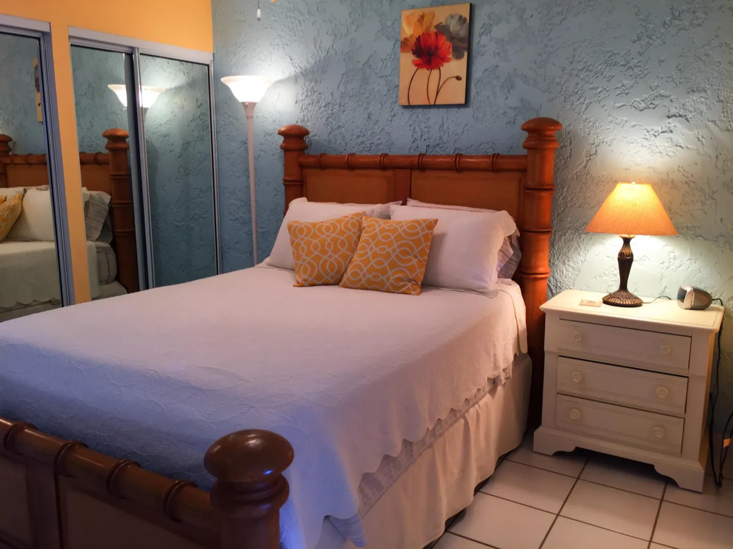 Charming remodel of this waterfront top-floor condo features new kitchen cabinets & counters, new bathroom shower and a privacy wall with a draped opening that affords a view in the morning but the ability to shut out the bedroom as you socialize in your beautifully furnished studio. Ocean breezes fill the apartment which faces the marina and the turquoise waters beyond. Sapphire Beach steps away.