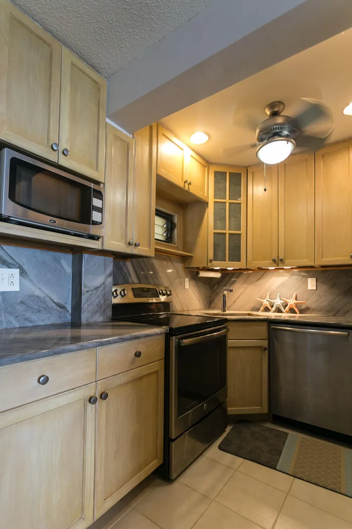 Walk-in level 1 bedroom 1 bath end unit. Remodeled condo with views of the marina, the nearby cays and St. John. Brazilian quartz granite kitchen counter tops, dishwasher, washer, dryer, mini split ac's. Completely remodeled bathroom has onyx sink and Italian bathroom countertop. Tiled porch also features extra window opening since it is an end unit which allows for even more breezes.