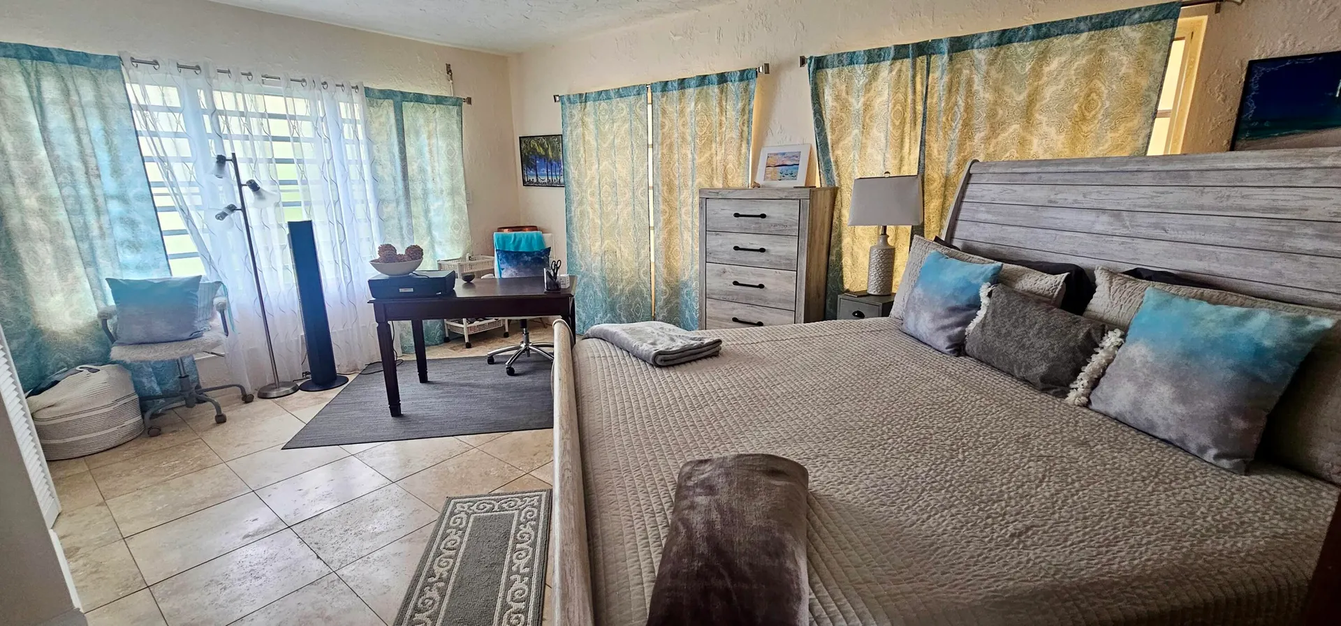 Elevate your lifestyle with this spacious and impeccably maintained 2-bedroom, 1-bath executive condo, designed with the discerning professional in mind. Elegantly furnished and featuring a modern, well-appointed kitchen, this residence offers the perfect blend of comfort, style, and functionality.Unwind after a productive day on the expansive private patio, where panoramic views of the Caribbean Sea extend all the way to Puerto Rico--an inspiring backdrop for remote work or evening relaxation. Located in a cooler, breezy part of the island with convenient access to town, this home is perfectly suited for professionals seeking a peaceful retreat that remains connected to key business hubs and amenities.