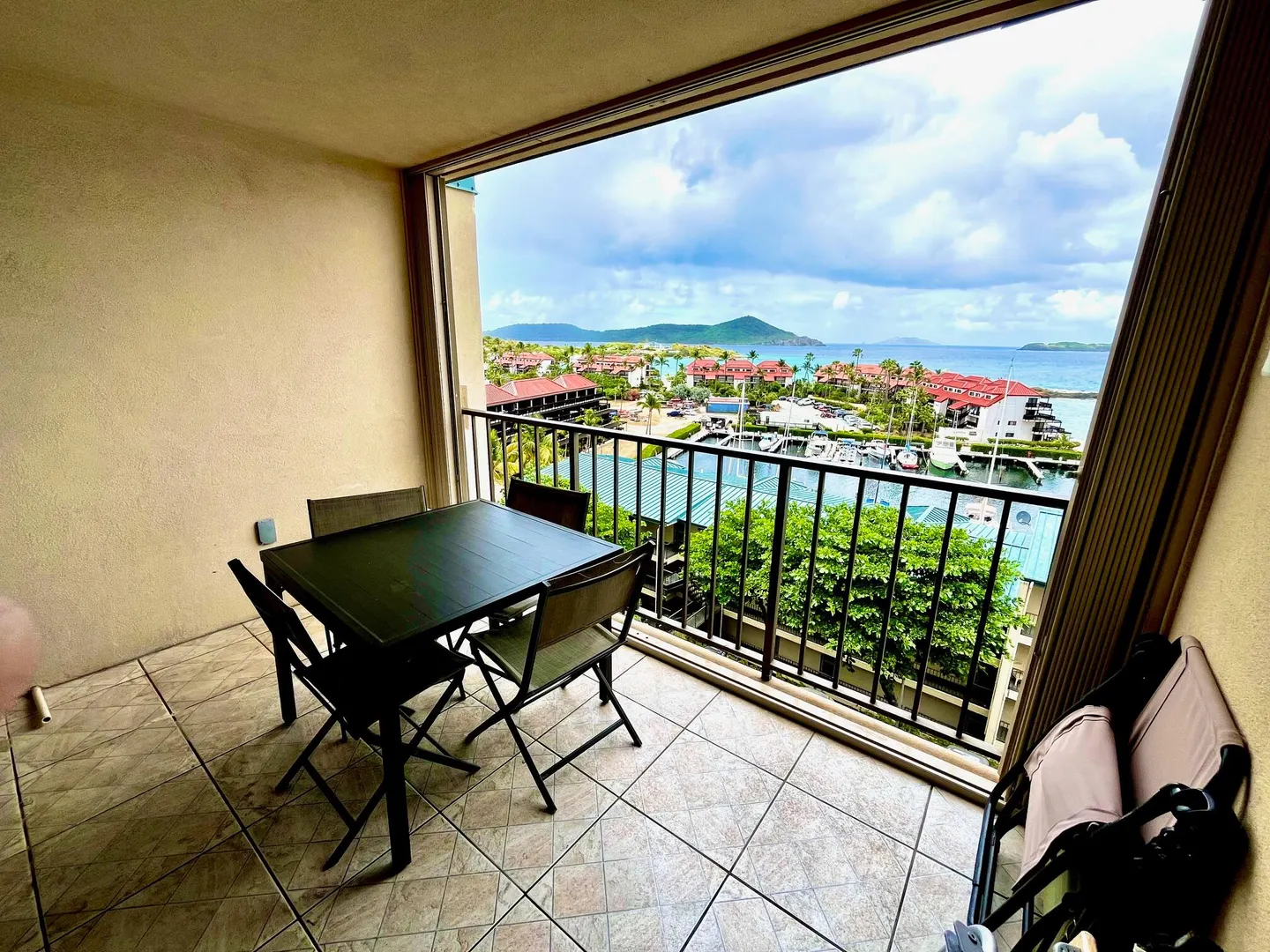 Step inside this breezy and bright studio perched above beautiful sapphire marina. Views of The BVI and St. John melt away your cares as you sip your morning coffee. Close to restaurants, shops and a stones throw from the beach. Already a very popular vacation rental, but would be perfect for anyone looking to set it up as their main residence.