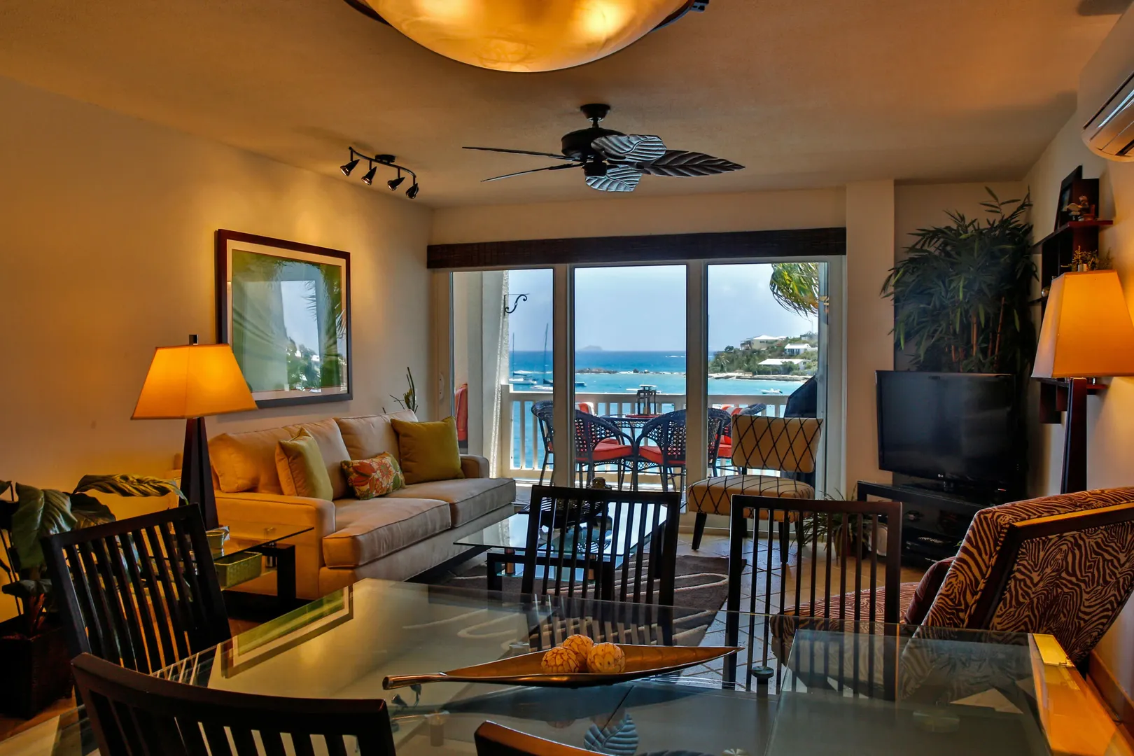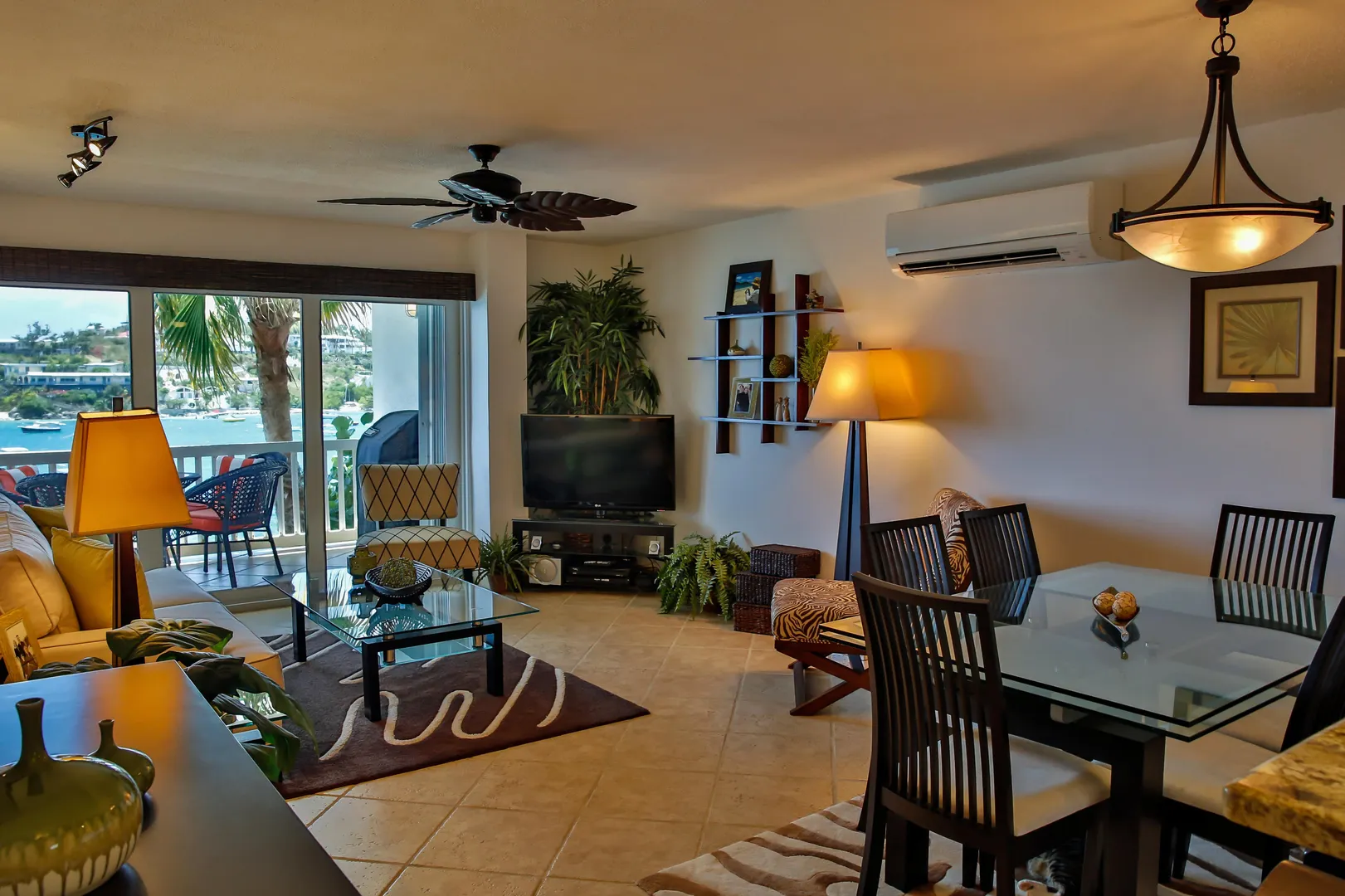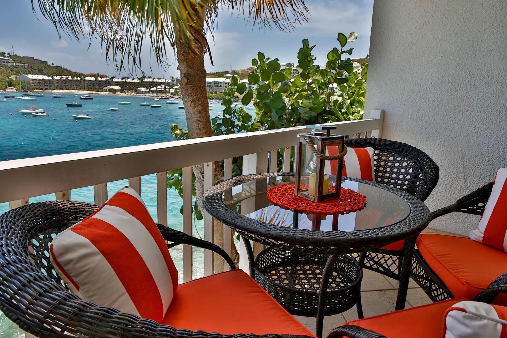 Exceptional style and an exceptional location, this 2/2 waterfront Cowpet condo offers a new level in condo living. Its location above the soothing sounds of the bay below offers privacy and expansive views of Cowpet Bay, the Caribbean Sea and St James Islands. Thoughtfully designed and remodeled with meticulously selected finishes, it features fine Italian tiles, custom cabinetry and granite throughout, new SS kitchen appliances and front load washer/dryer. It sustained no hurricane damage and is beautifully furnished with contemporary furnishings, custom window treatments, and top of the line fixtures and fans throughout. Enjoy the sound of the sea below, or grab your towel and take the short walk to the beach where you will find beach chairs, a restaurant and pool privilegesat Cowpet Beach Resort with annual membership. All this and you are just 5 minutes from all the amenities of Red Hook, marinas, restaurants, watersports and minutes to a number of other gorgeous beach options. The complex has its own dedicated generator with auto switch providing power to the condos during an outage. A complete list of features and upgrades is included under Documents