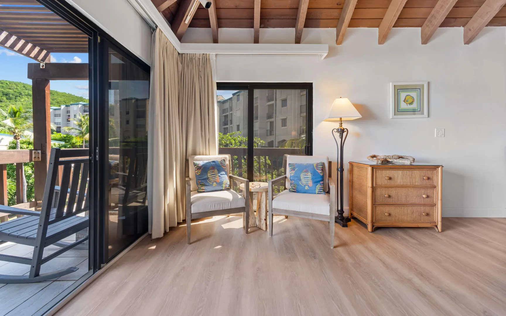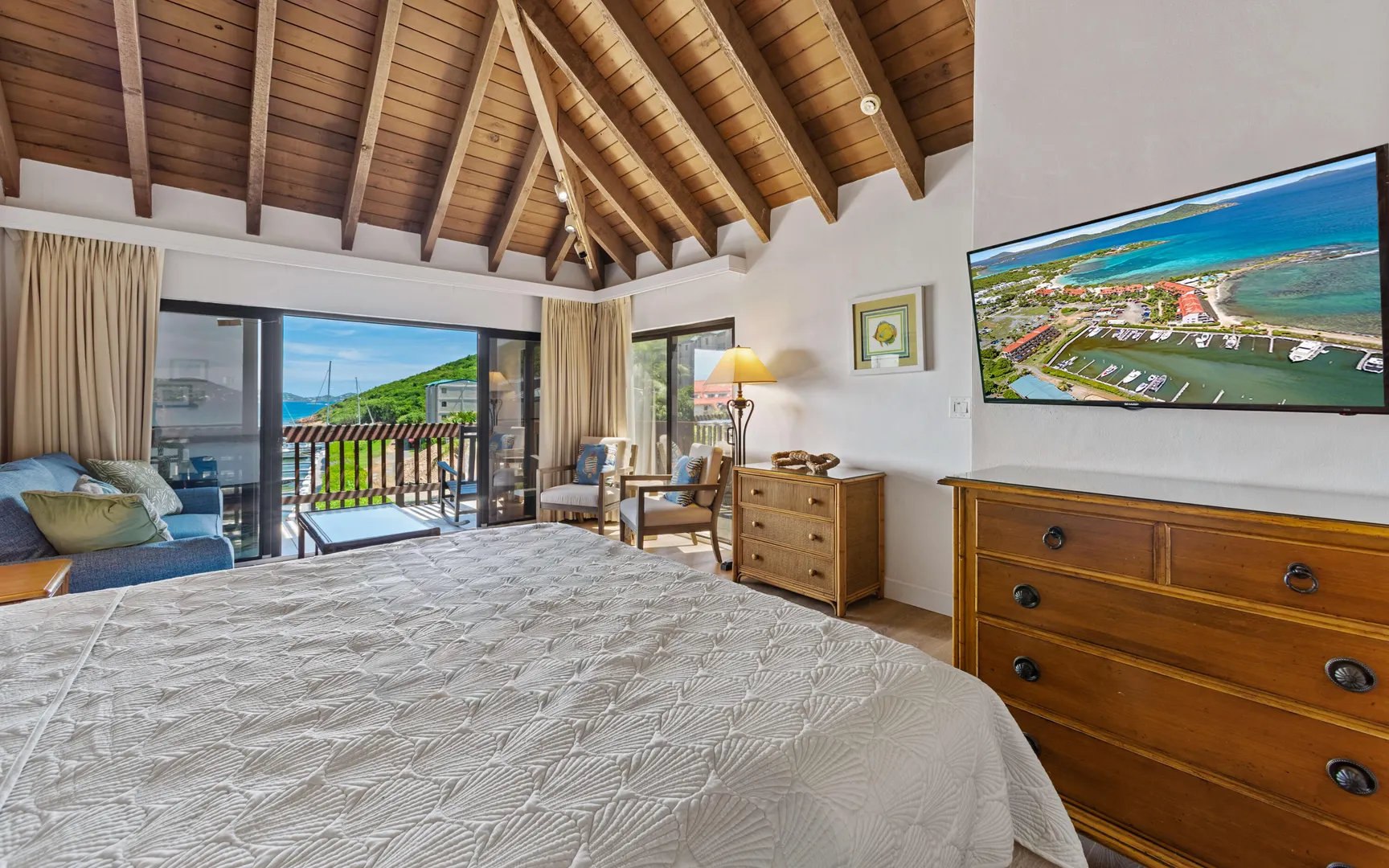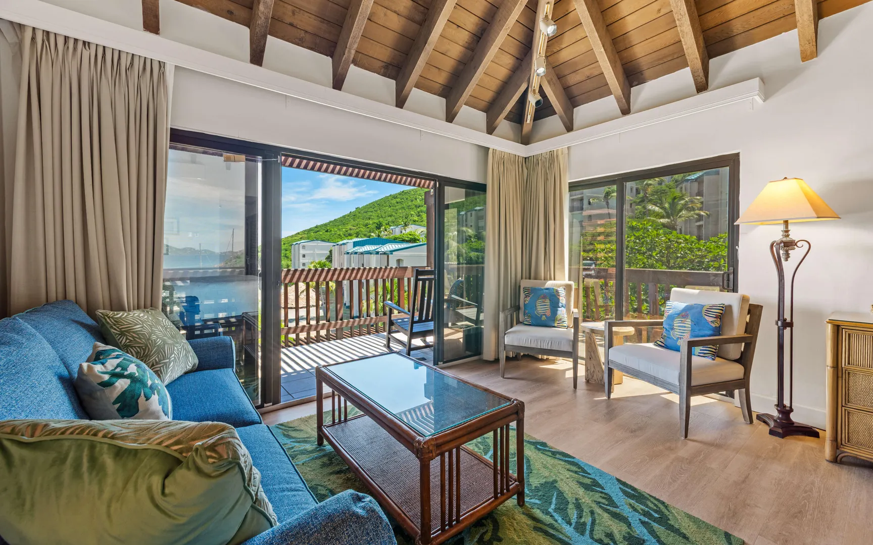 Experience life on the water's edge in this beautifully renovated, end-unit, marina-front villa at Sapphire Beach Resort & Marina.This spacious two-story, 1 bed, 2 bath villa offers the rare advantage of two extended corner balconies, framing panoramic views of the Sapphire Marina, Pillsbury Sound, St. John, and the neighboring Cays. Inside, cathedral wood plank ceilings and coastal finishes create a relaxed, airy atmosphere filled with natural light.Sold fully furnished, this villa is truly turn-key, ready for you to enjoy or continue as a short-term rental. Every detail has been thoughtfully updated, from stylish furnishings to modern baths, ensuring comfort and convenience throughout.Step outside to enjoy direct access to Sapphire Beach, lounge by the oceanfront pool, orexplore the on-site amenities, dining at SeaSalt, Sapphire Beach Bar, and Paradise Pie, boutique shopping at Naia, coffee at Beach Buzz, and a full-service marina offering sail, powerboat, and fishing charters along with dinghy and jet ski rentals.