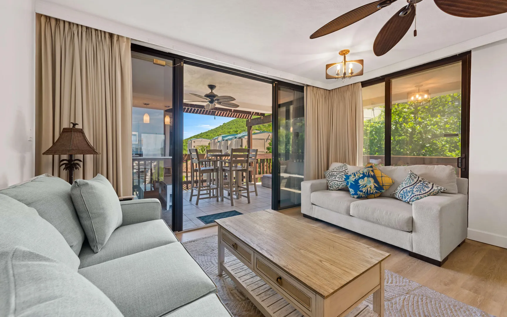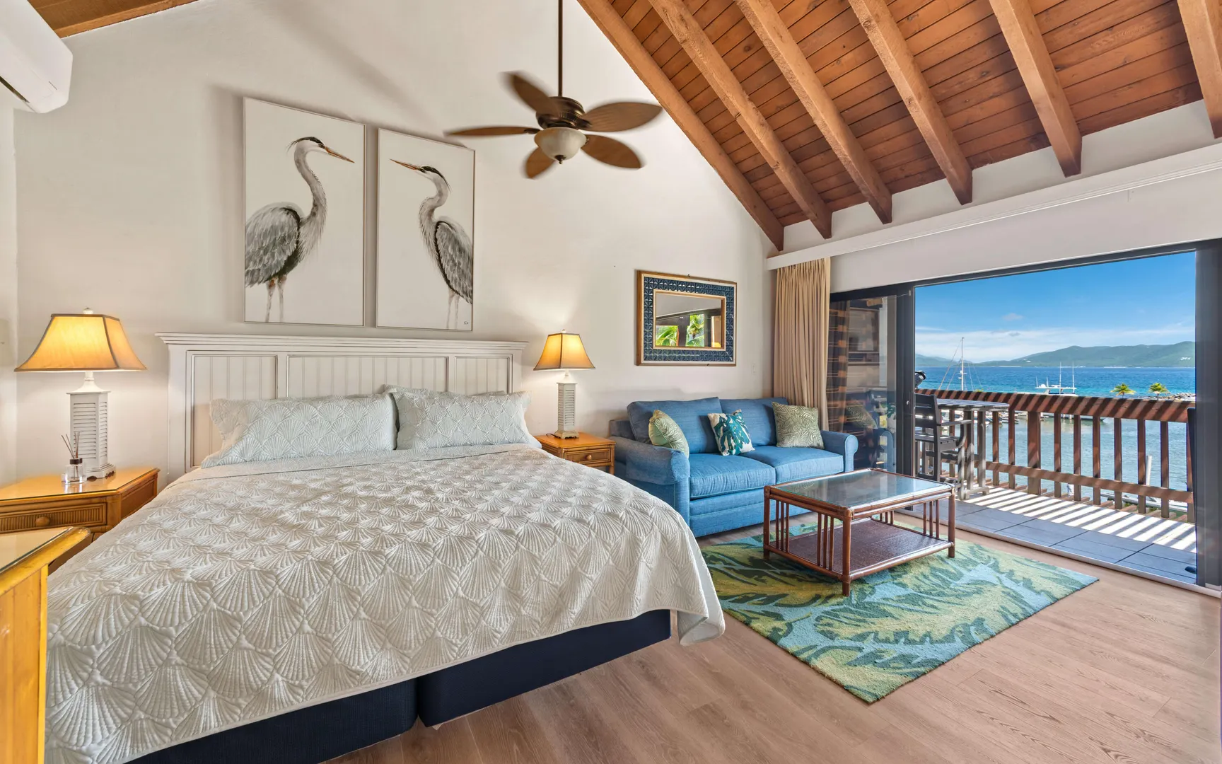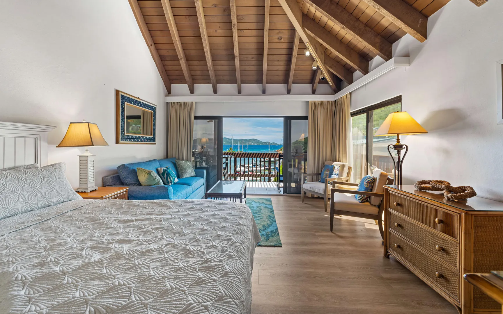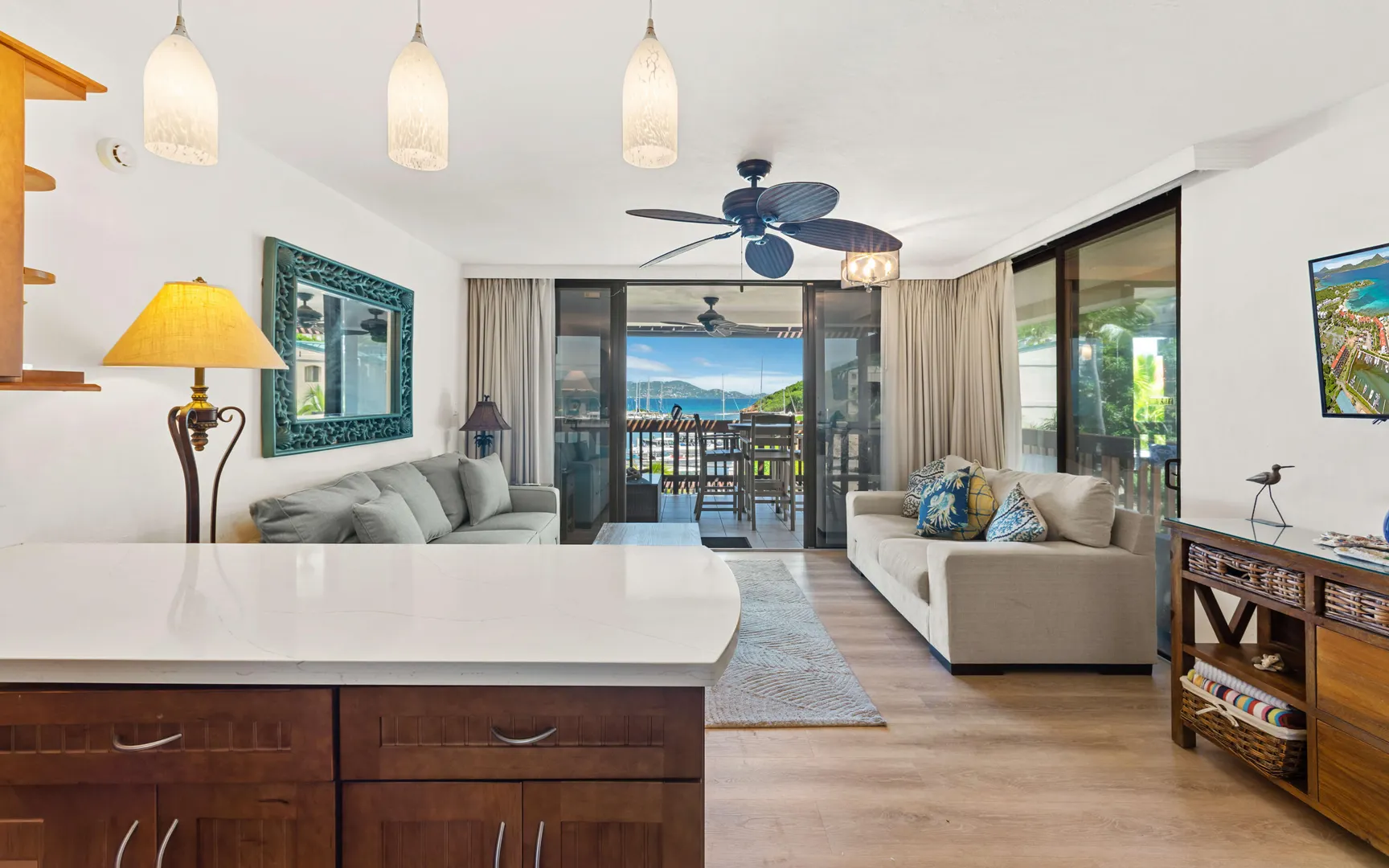 Experience life on the water's edge in this beautifully renovated, end-unit, marina-front villa at Sapphire Beach Resort & Marina.This spacious two-story, 1 bed, 2 bath villa offers the rare advantage of two extended corner balconies, framing panoramic views of the Sapphire Marina, Pillsbury Sound, St. John, and the neighboring Cays. Inside, cathedral wood plank ceilings and coastal finishes create a relaxed, airy atmosphere filled with natural light.Sold fully furnished, this villa is truly turn-key, ready for you to enjoy or continue as a short-term rental. Every detail has been thoughtfully updated, from stylish furnishings to modern baths, ensuring comfort and convenience throughout.Step outside to enjoy direct access to Sapphire Beach, lounge by the oceanfront pool, orexplore the on-site amenities, dining at SeaSalt, Sapphire Beach Bar, and Paradise Pie, boutique shopping at Naia, coffee at Beach Buzz, and a full-service marina offering sail, powerboat, and fishing charters along with dinghy and jet ski rentals.