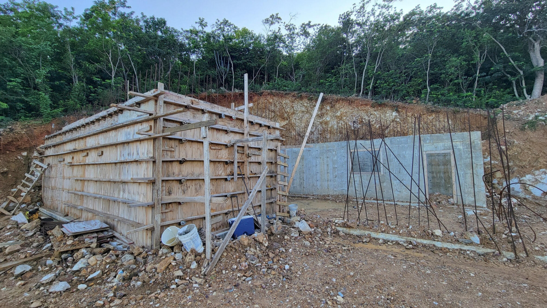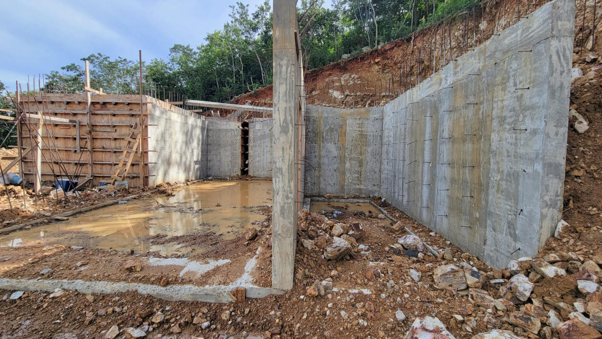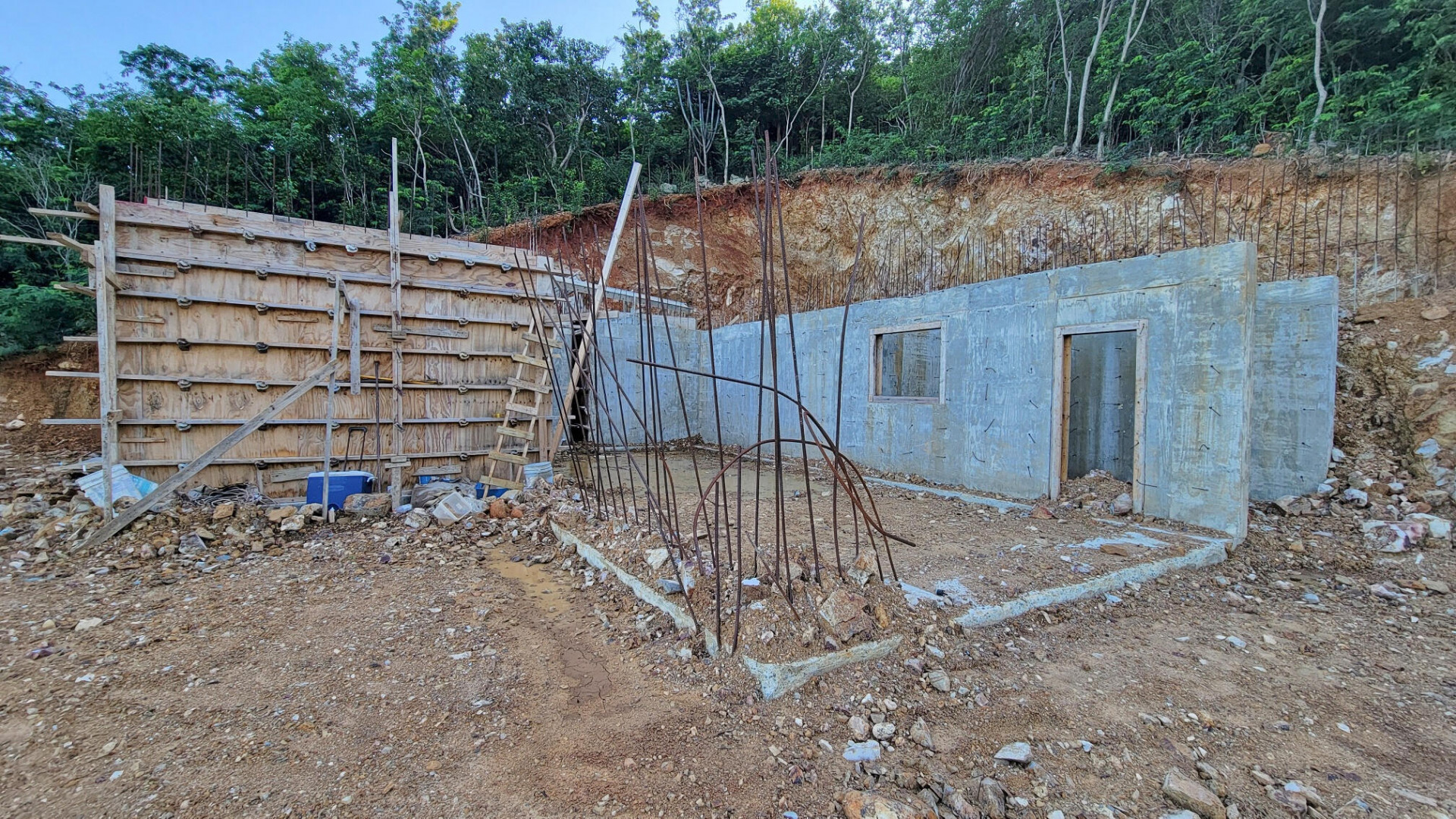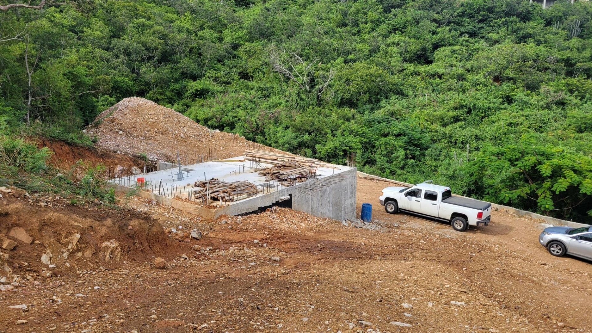 Walking distance to Bolongo Beach, Bolongo Resort and restaurants. This under construction site has the driveway cut and cisterns in place. Here is your chance to finish building your dream home exactly the way you want. Lot driveway is graded, retaining walls are in, two freshwater and two gray water cisterns are in place and slab is poured for the cottage. You can use the current permitted building plans or continue on with your own. Lot is almost an acre and is accessible from the current driveway AND from the top of the property. It is walking distance to Bolongo Beach, Bolongo Resort and restaurants. You can finish the cottage to live in while you complete your dream home!