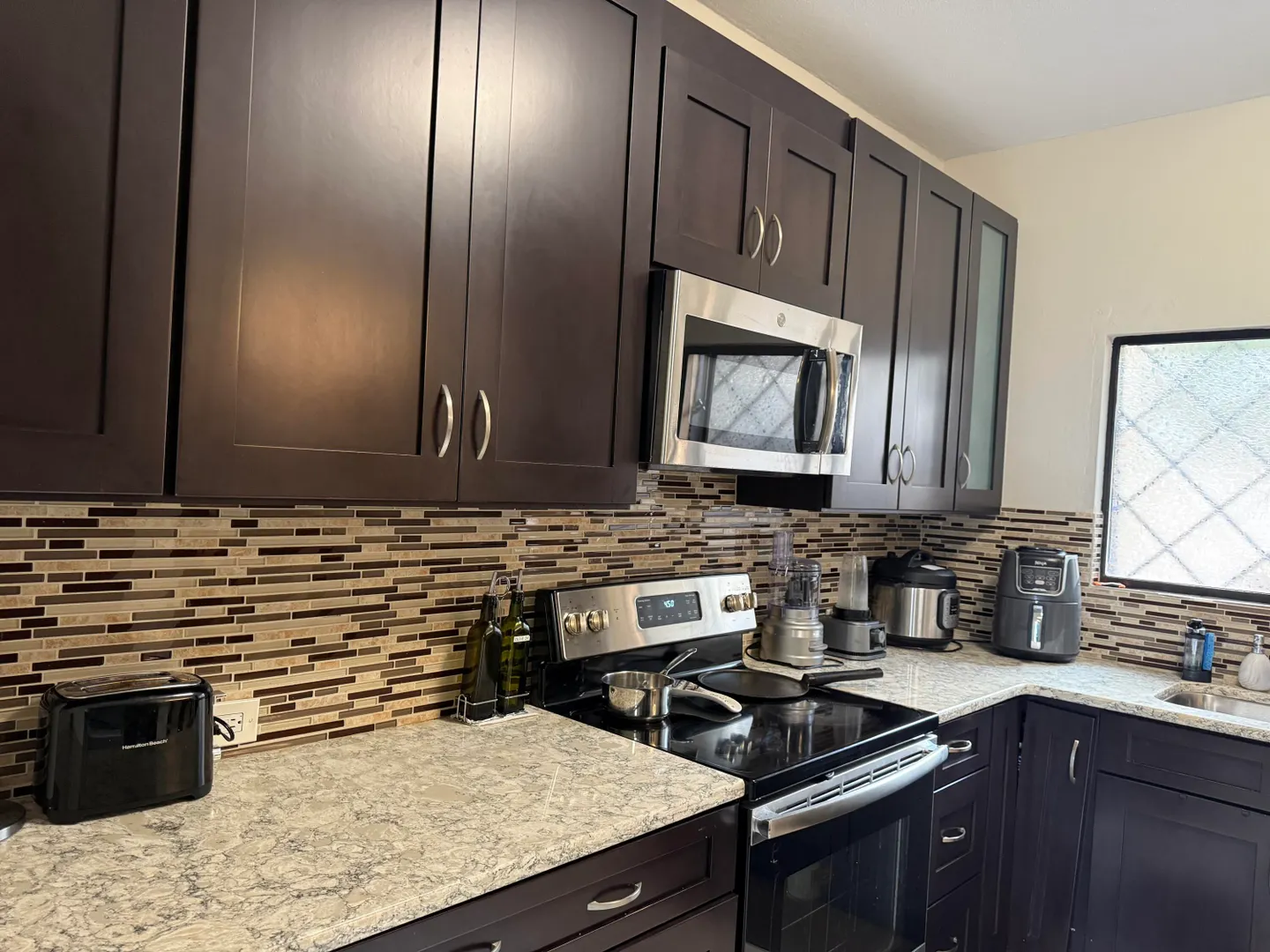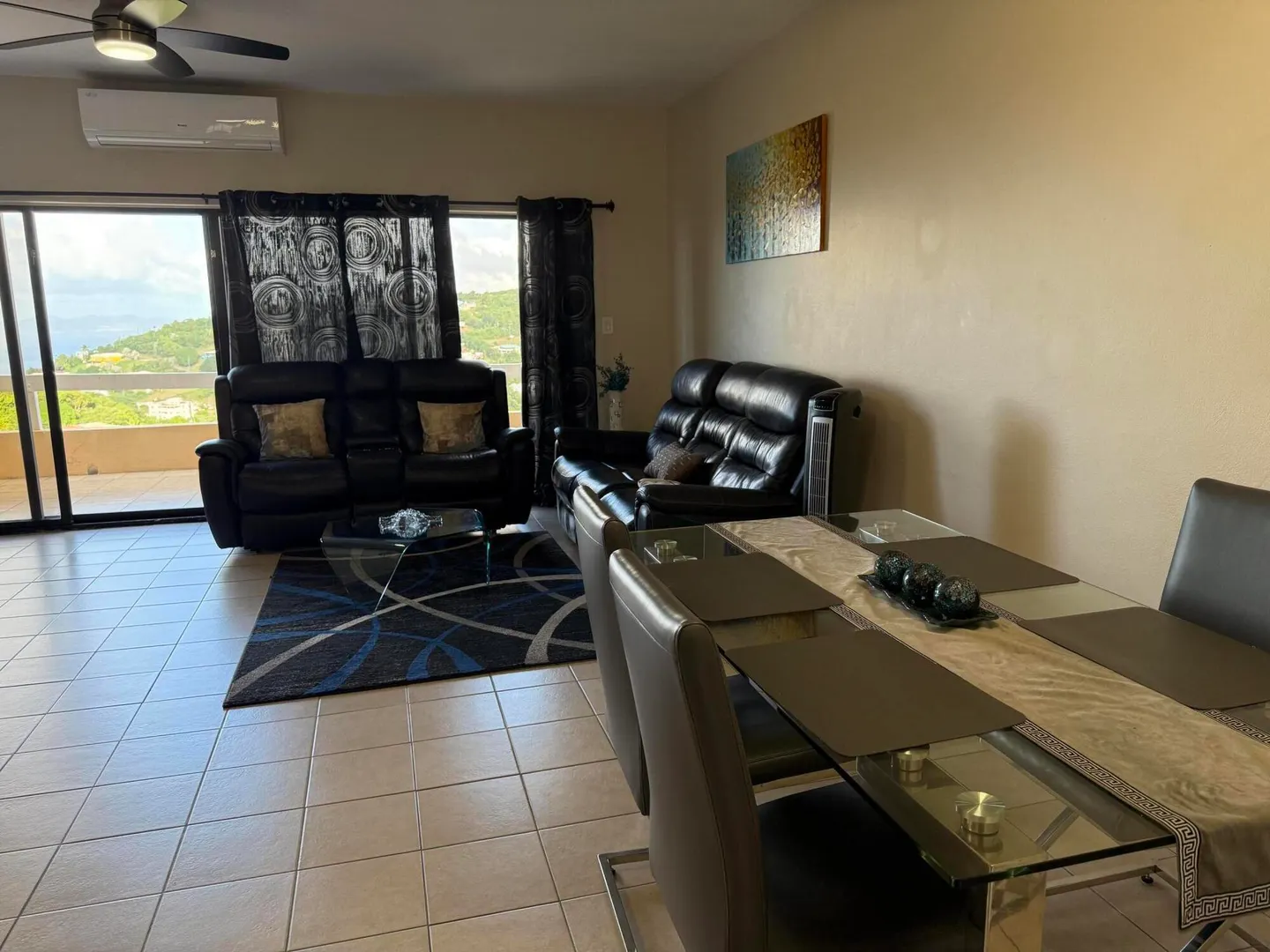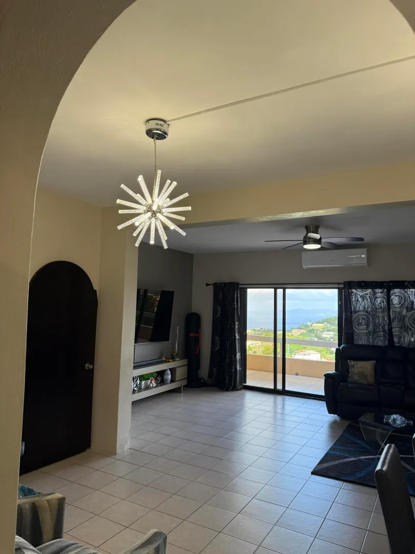 Beautifully updated, fully furnished 2/2.5 condo available 4/1. Split level, spacious and shiny, this condo offers amazing down island views, split ac units, washer/dryer and an automatic generator. Skyline Drive Village has a private pool, and hard surface tennis court. Very conveniently located to Magen's Bay, Charlotte Amalie and Red Hook. FLS and References.