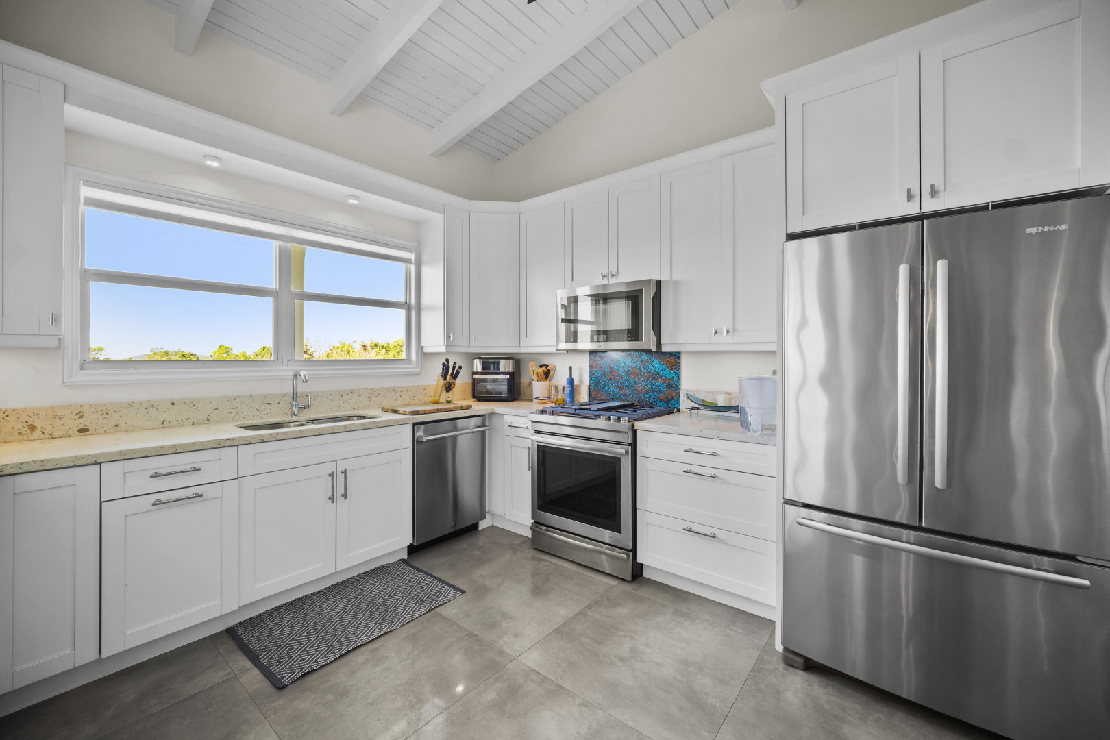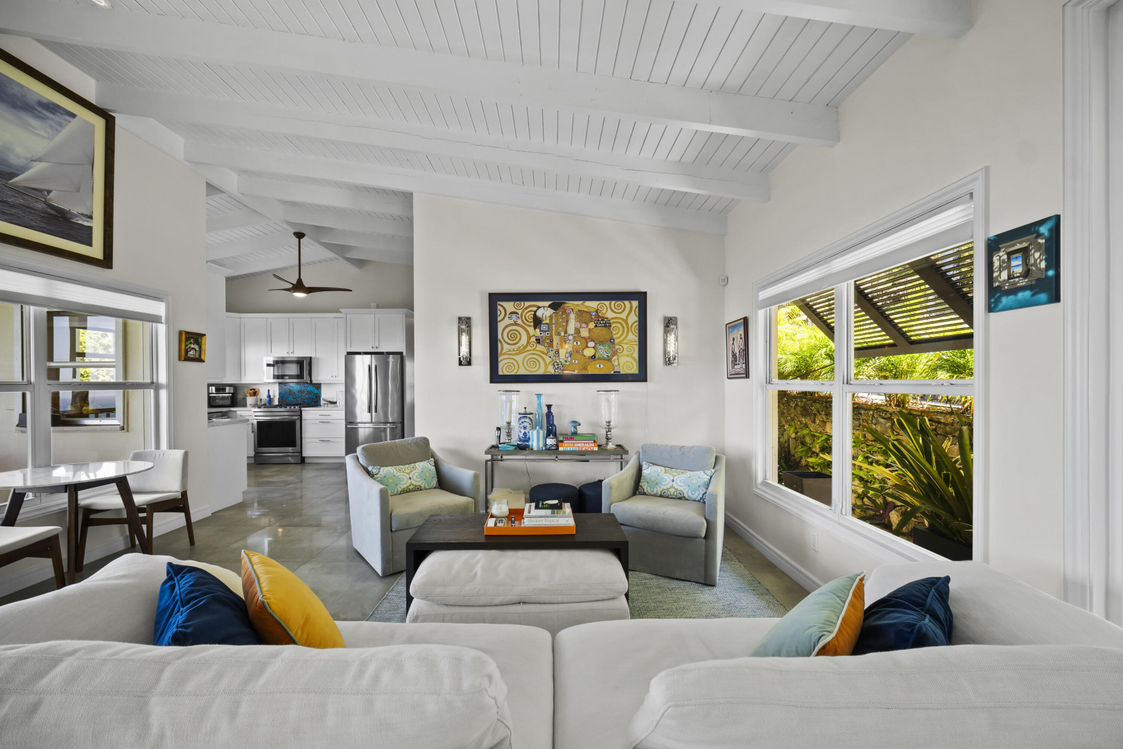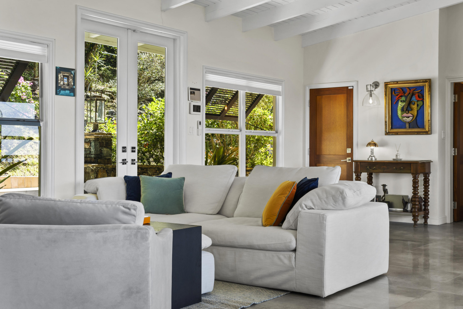Luxury Living -- Flexible Multi-Unit Estate Turn-key 5BD/4BA gated estate offered fully furnished, blending Danish West Indies charm with contemporary design. Versatile layout functions as two 1BD apartments with private entrances and full kitchens, plus a 3BD/2BA upstairs residence with its own kitchen--ideal for crews, teams, or extended families wanting to live separately yet together. Features include a remodeled chef's kitchen with butler's pantry, hot tub, garage, ample parking, generator, alarm system, Sonos sound, and mature fruit trees. Just 5 minutes to town or Magens Bay, this property is an exceptional executive rental or private retreat, move-in ready.