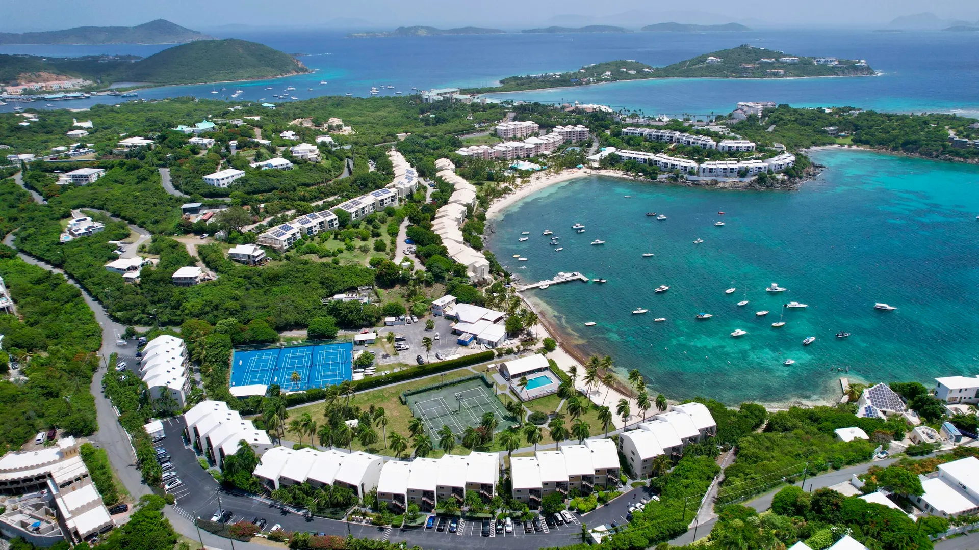 Everything you have been looking for in a Caribbean getaway has just come on the market!! Lovely two bedroom two bathroom condo in a gated community, with a sandy beach, swimming pool, workout room, tennis courts and beautiful lush landscaping! All combine to make this one of the finest places to call home on the market today. Fully furnished with all of the necessities to move in tomorrow or continue in the short term rental program. Great location next to the St Thomas Yacht Club and walking distance to several restaurants and the Ritz Carlton. The bustling town of Redhook is a five minute drive with a dozen additional eateries and bars and American Yacht Harbour Marina!!! Become a part of the Caribbean community and help pay for your vacation home. Caribbean life at its finest!!