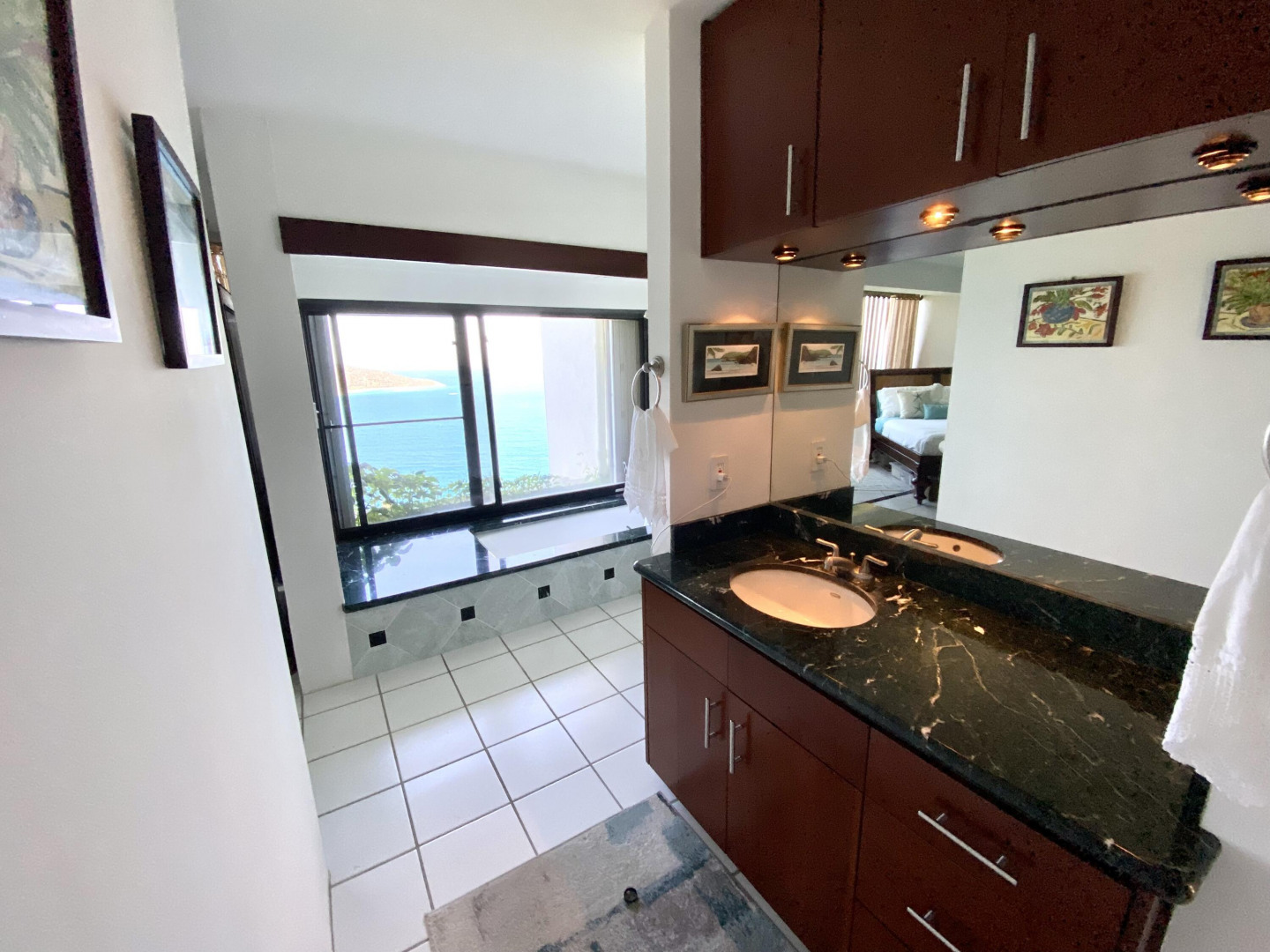 This beautifully and fully furnished, walk in level 1 bedroom 1 bath condo offers a gorgeous ocean view, and remodeled kitchen and bath with custom mahogany cabinetry. The 28' long deck provides a great place to lounge and dine and enjoy the cool breezes. Mahogany Run is a centrally located, gated community convenient to all locations and just 5 minute drive from the incomparable Magens Bay. Rental rate includes VIYA cable and internet. Tenant will pay water and electric charges. Realtors see private comments