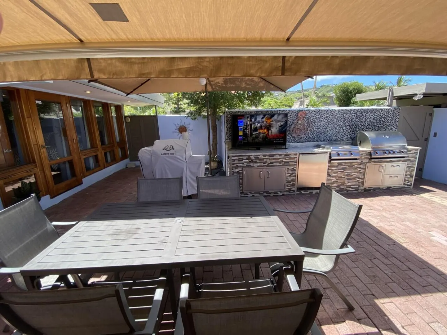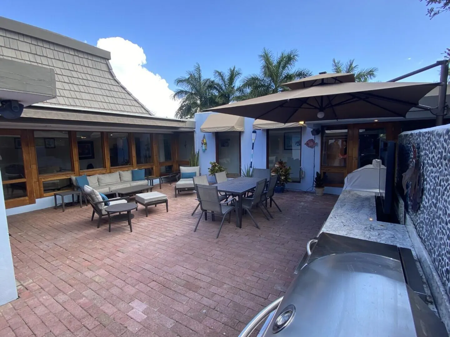 Remodeled in 2008 & courtyard redone recently with outdoor summer kitchen +slide & retractable awnings. This condo is designed for entertaining. Courtyard has (pop up) outdoor TV, stereo, Flat top skillet, grill, smoker, Interior kitchen is expanded, and gourmet replete with custom ,mahogany cabinets, and top line appliances. A/C 's are (energy efficient)new w smart board technology that operate remotely via phone app, as does cistern water management. This 3 bedroom, 3.5 bath Pineapple Village condo is in the best location, just steps from beach, Margaritaville pool & bar, their coffee shop and gym (which owners have access to all).It is pet friendly, and this units expanded floor plan provides more space than others, Two of the bedrooms have their own private entrances. 20 kw generator