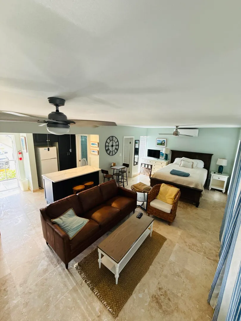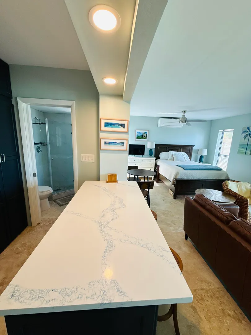 Beautiful East End waterfront studio. Close to restaurants and beaches. Fully remodeled. Literally down to the studs. Travertine floors hardwood cabinets quartz countertops. Excellent storage for this studio. Private parking and a place to make your own home or to rent out as an Airbnb. Wonderful small waterfront community of 32 units. Enjoy your coffee in the morning watching the ferries and sailboats go bye or have a nice drink on your balcony at the end of the day catching a sunset and watching the stars until late in the evening. A little slice of heaven on earth.