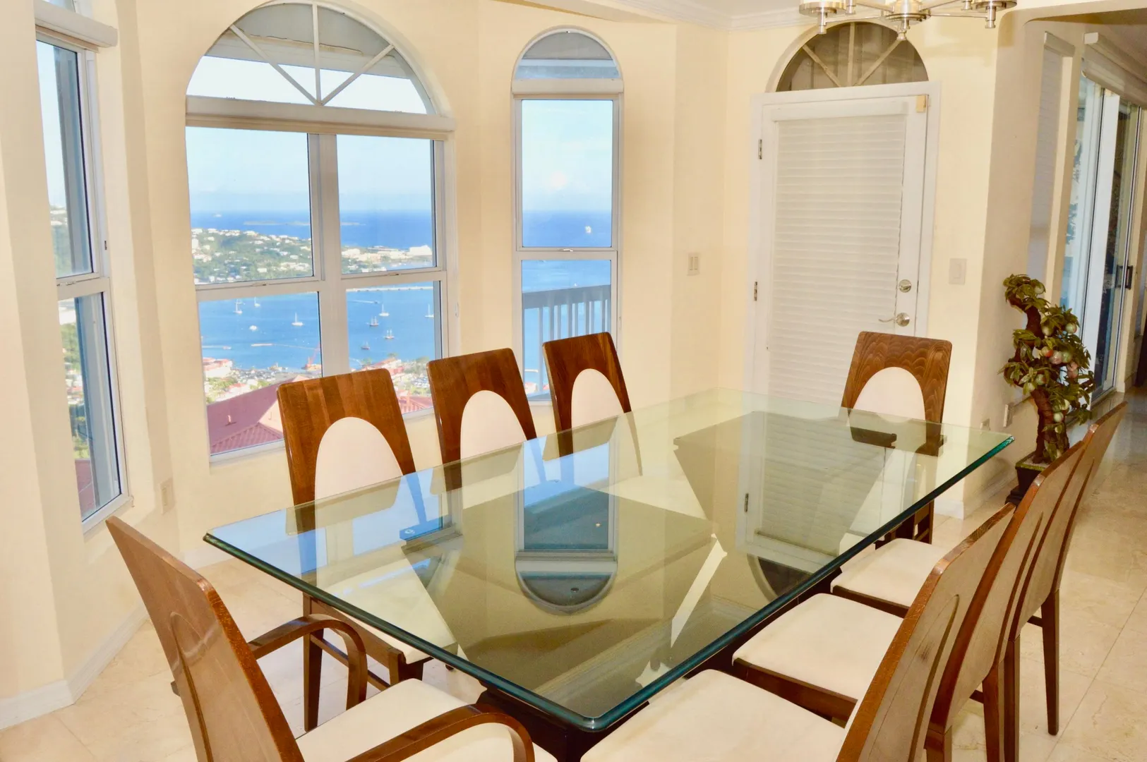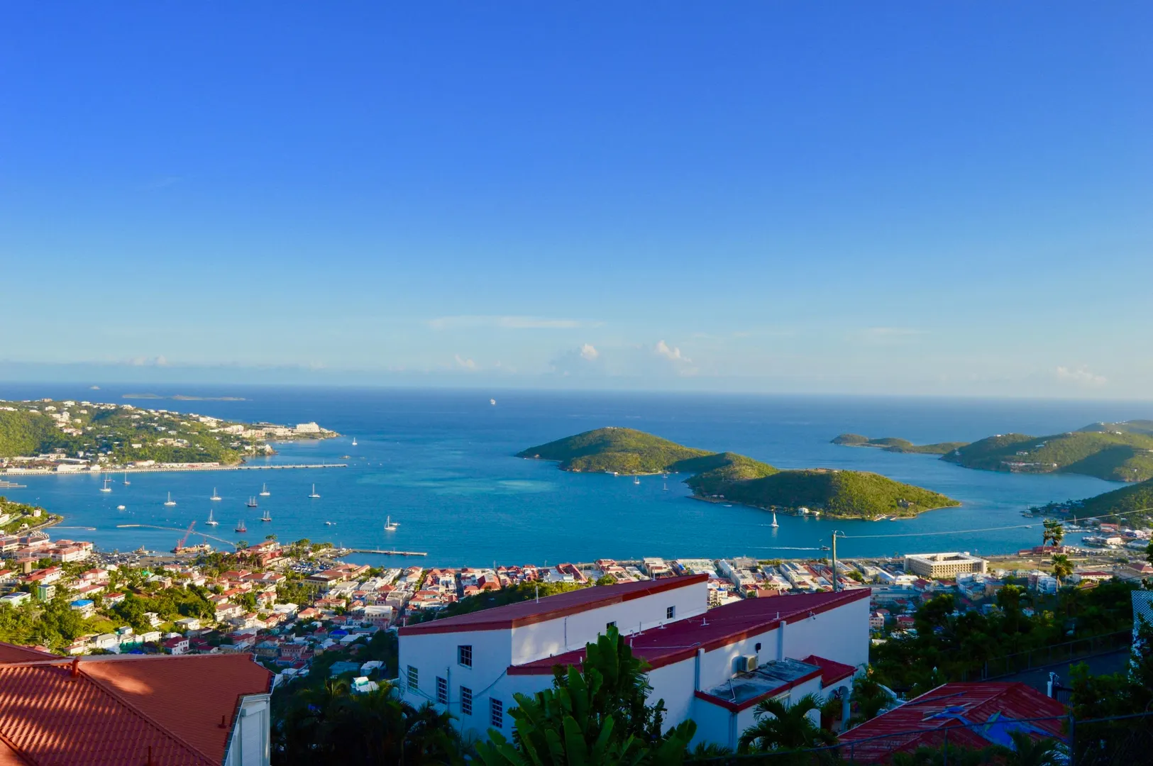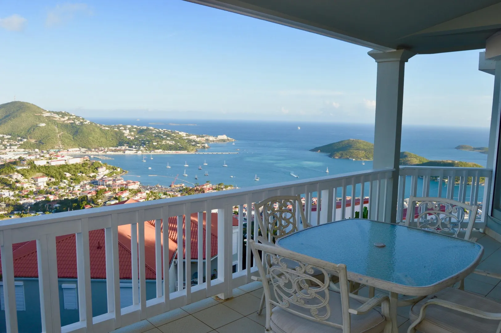Enjoy the amazing Panoramic views of St Thomas Harbor, Water Islands and beyond from this Luxurious and Spacious 3 Bed - 3 Bath of the famous Pinnacle Condos. High Quality furniture, Separate Dining area and Living area. Quiet, Safe and Private location with Security Gate, 2 parking space and Automatic Generator. Relax by the pool or enjoy the Tennis Court. Professional Landscaping. Only 5min to Town, 7min to Magens Bay.