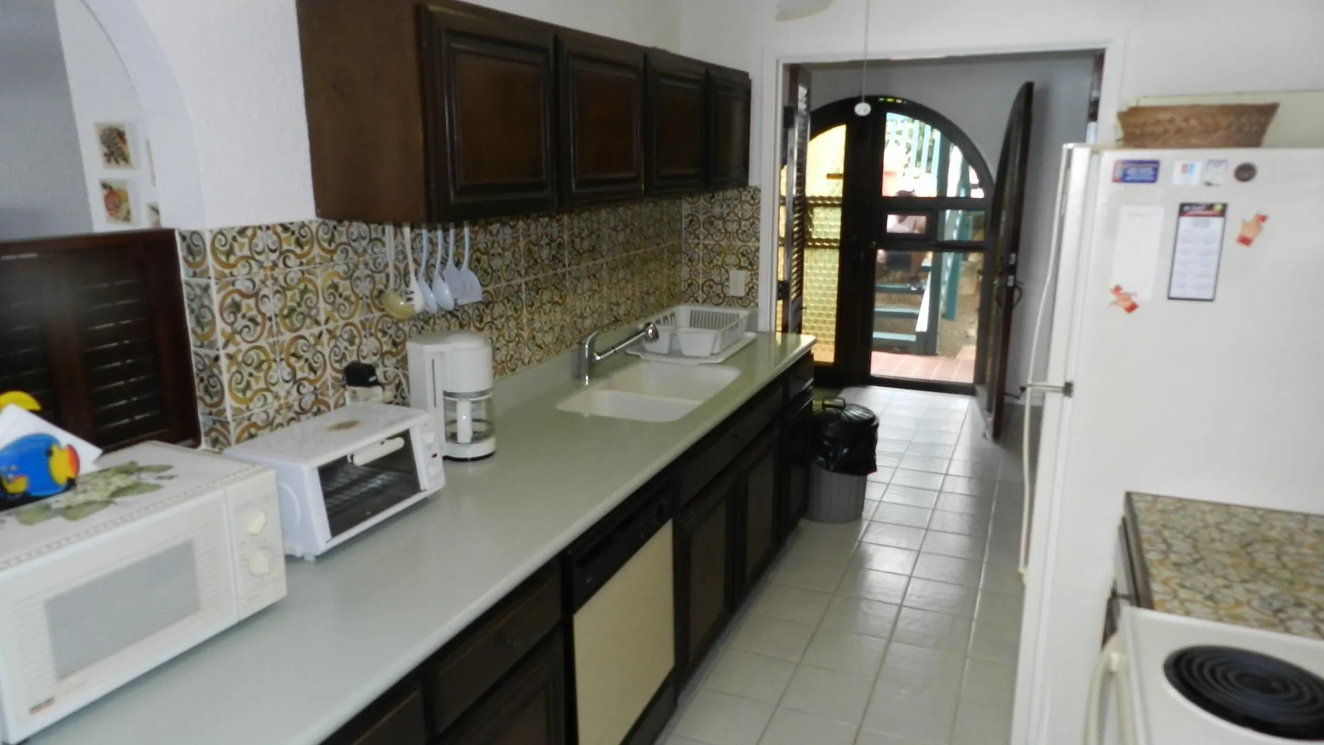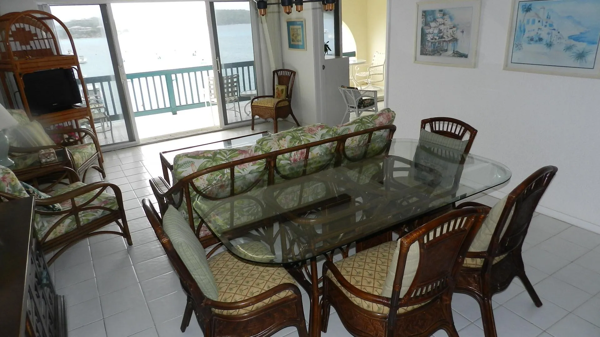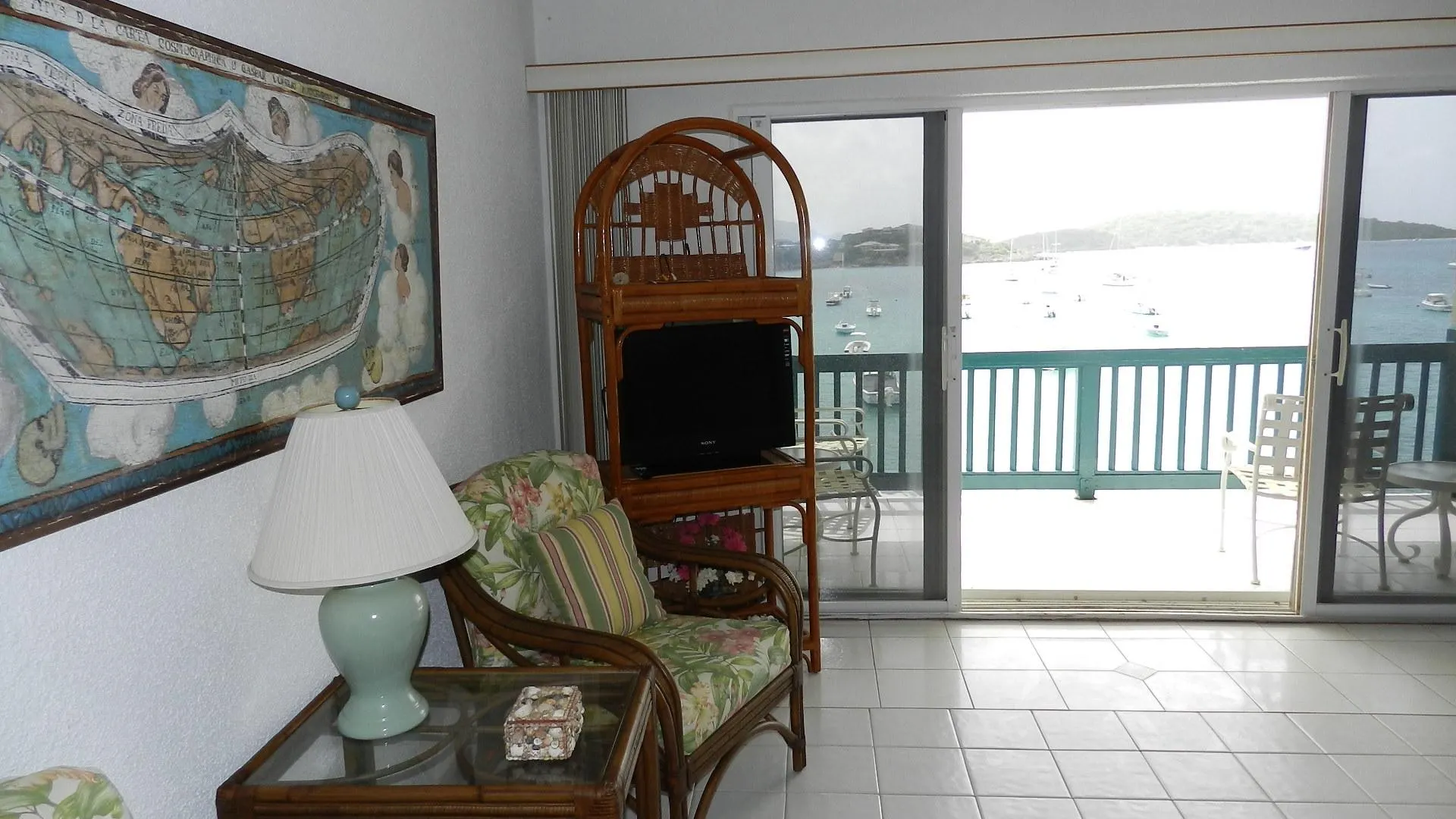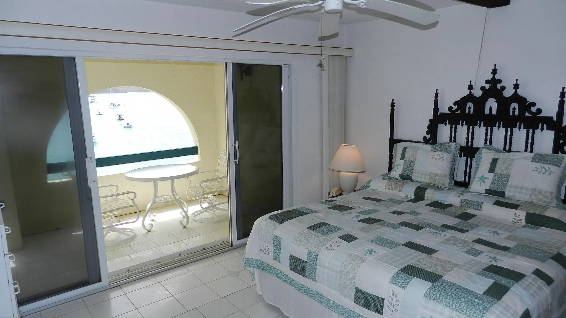 Pristine, well maintained Windward condo, enjoys WATERFRONT location just steps from Cowpet beach or St. Thomas Yacht Club. Full length covered balcony. Never rented, this bright and airy lower unit has white tile throughout and Corian kitchen counter tops - truly shows well. Soothing water music; eastern exposure and cooling breezes mean no need for AC! Long term daily housekeeper maintained