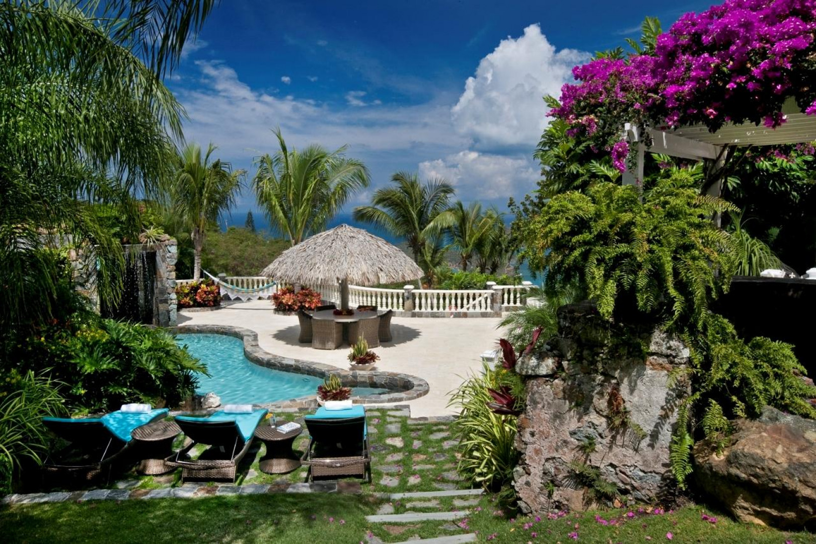 Luxury Villa ''Bijoux Bleu'' now available for long term lease. Paradise Found! Tropical Oasis with resort style pool with waterfall, 4 Bedrooms/4 bathroom situated in a tranquil North side location with only 3 houses on the street. Property is Professionally Landscaped, nice Ocean views, and is in great condition. If more bedrooms/space is needed, a separate apartment is currently available to new tenant at additional cost. Note: Owners must approve of all tenants; First, Last, Security required.