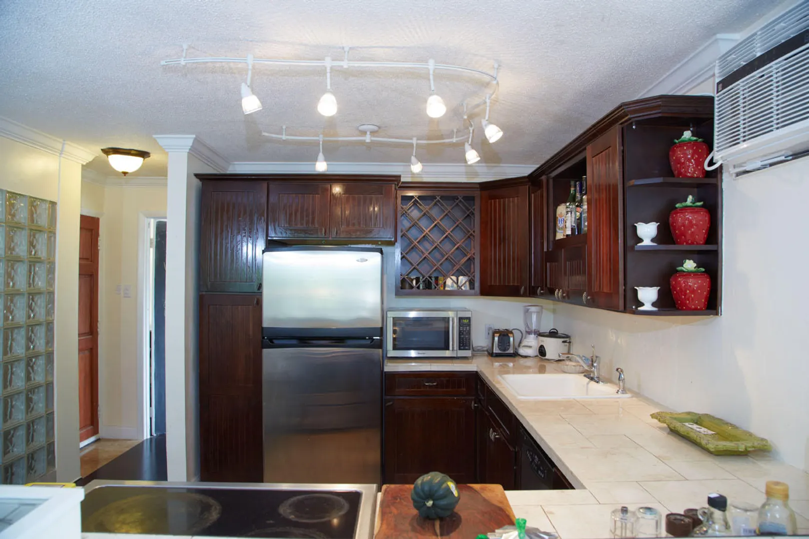 Beautifully remodeled 1 bedroom 1 bath condo within walking distance to the beach, Montessori School and Latitude 18 which is a restaurant on the east end of St. Thomas. Just a few minute drive to the ferry to St. John, shopping and more. Easy to short term rent for additional income.