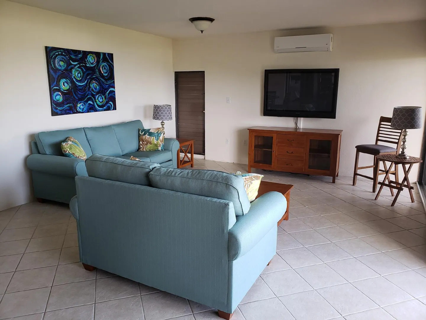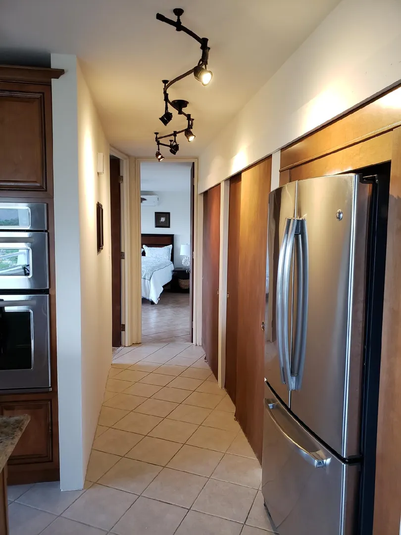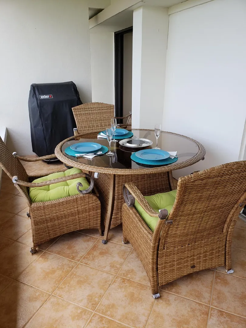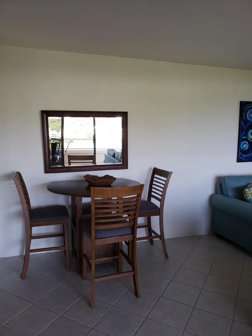 Beautiful, modern and tastefully furnished, one-bedroom condo located near world famous Magens Bay,St.Thomas. Golf-course and ocean views, newly renovated kitchen and bathroom, beautiful tile throughout, A/C wall units in bedroom and living room, washer/dryer, mounted flat-screen TV, comfortable balcony furniture, gas grill.