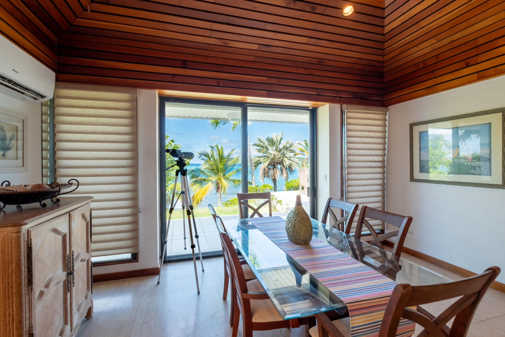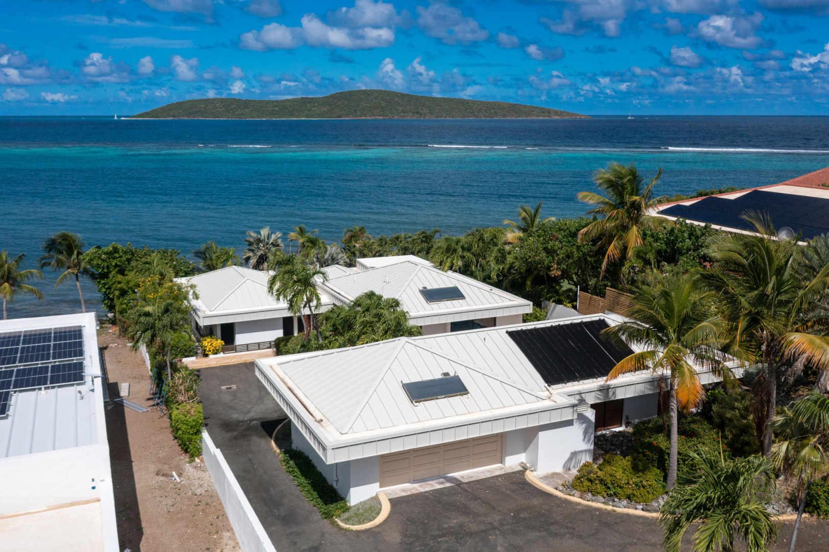 Spectacular beachfront living awaits as you enter through the private gates of this stunning home on more than 80 feet of secluded beach on St. Croix's East End. With a total of three bedrooms and now three full bathrooms plus a half bathroom, this property showcases panoramic views with Buck Island as the centerpiece and is sure to delight even the most discerning buyers. Fresh exterior paint enhances the home's curb appeal, and the main house sits approximately 20 feet above sea level, capturing steady breezes and postcard-worthy vistas. The expansive patio and pass-through kitchen window bar create true alfresco living, ideal for effortless entertaining. POTENTIAL OWNER CARRY FINANCING AND, OF COURSE, BANK FINANCING IS AVAILABLE FOR THIS PROPERTY.The main house features two bedrooms, two full and one half bathroom, an open floor plan with soaring cathedral ceilings, and a gourmet kitchen with granite countertops and custom cabinetry. The home is equipped with two solar hot water heaters that provide energy savings and added efficiency. Family and guests will appreciate the private one bedroom, one bathroom guest house complete with a cozy living room and kitchenette.