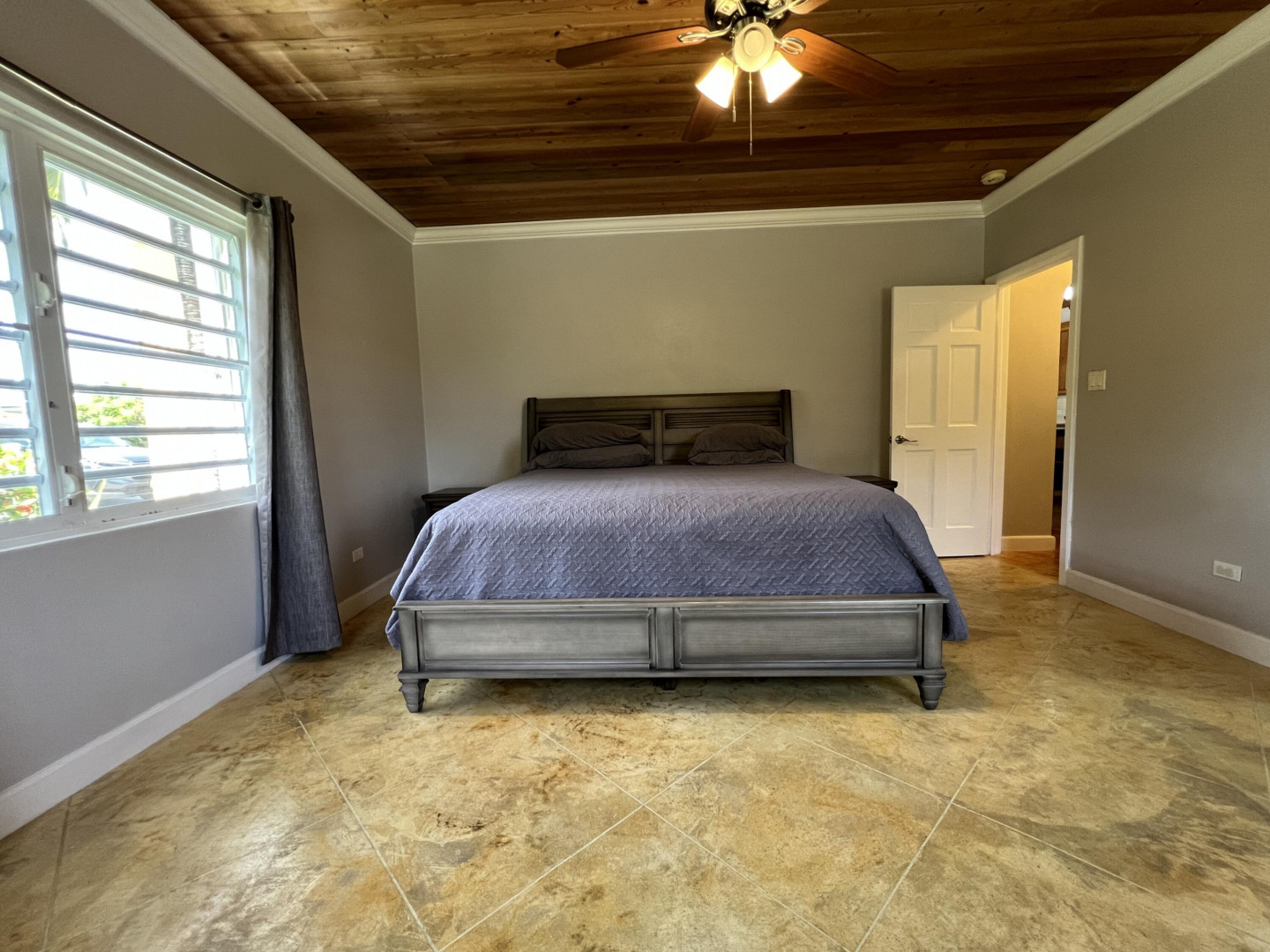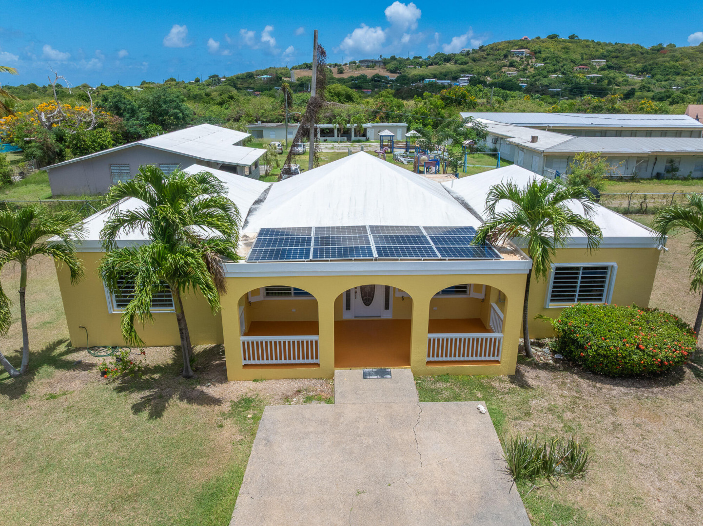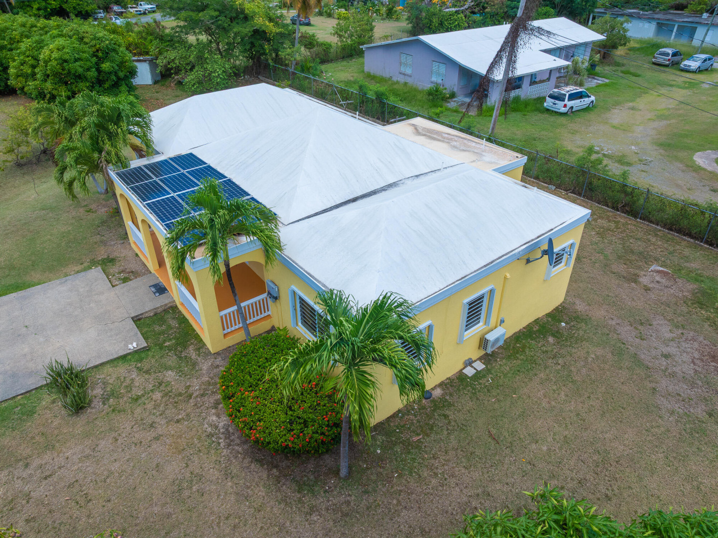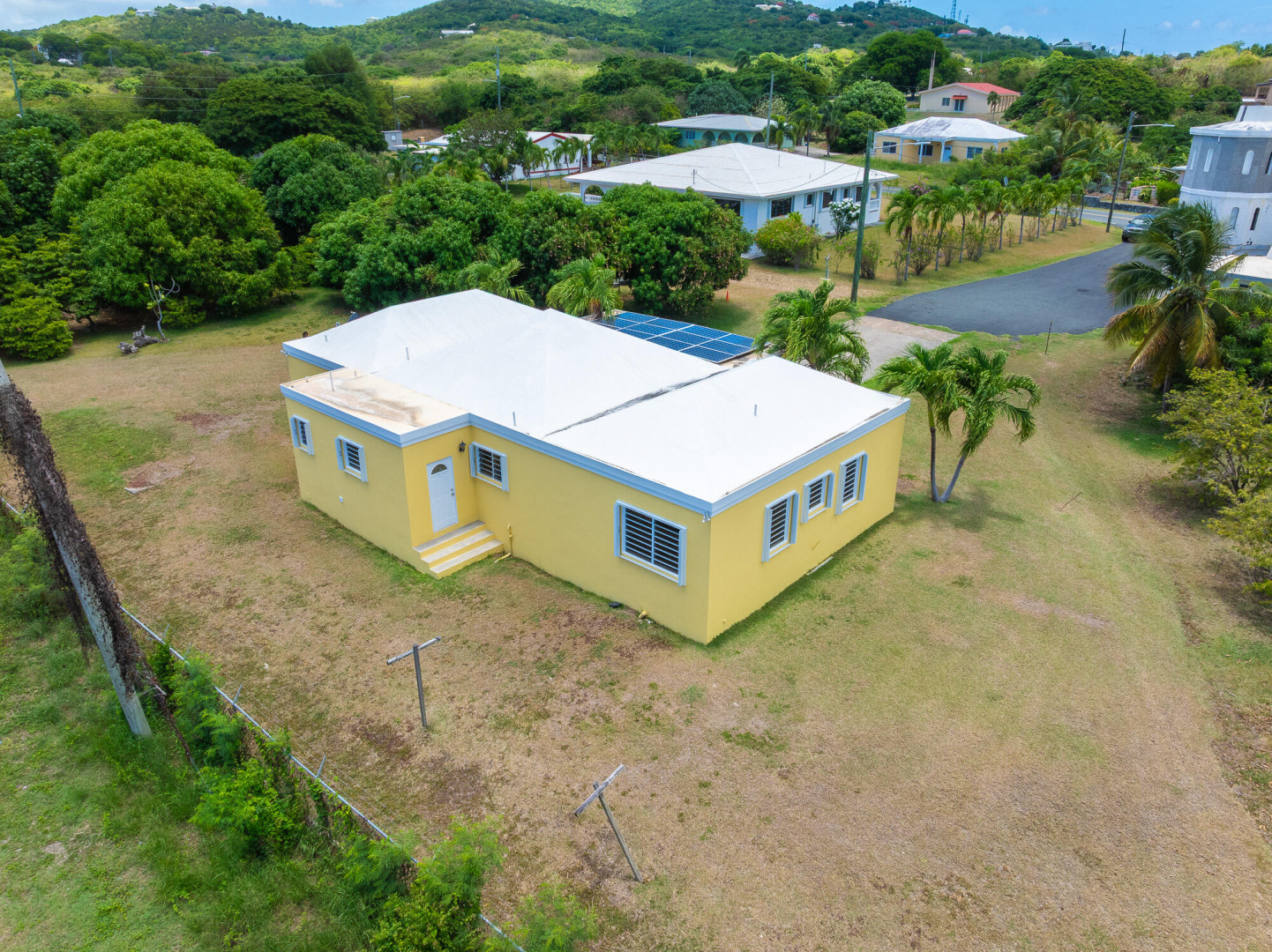 Enjoy island living in this 3-bedroom, 2.5-bath home that's ready for you to unpack & settle in. The spacious great room features gorgeous vaulted cypress ceilings and flows into an open kitchen with sleek concrete countertops. Comfort comes easy with split A/C in the main bedroom, a laundry room w/ full-sized washer & dryer, walk-in closets throughout and a cool covered front gallery space. This home is equipped for modern island life with solar net metering, a generator a water filtration system as well as brand new hurricane shutters, both accordion and Caribbean style wood. Located in a quiet residential community just minutes from downtown Christiansted, you'll have quick access to shopping, dining, and the waterfront!