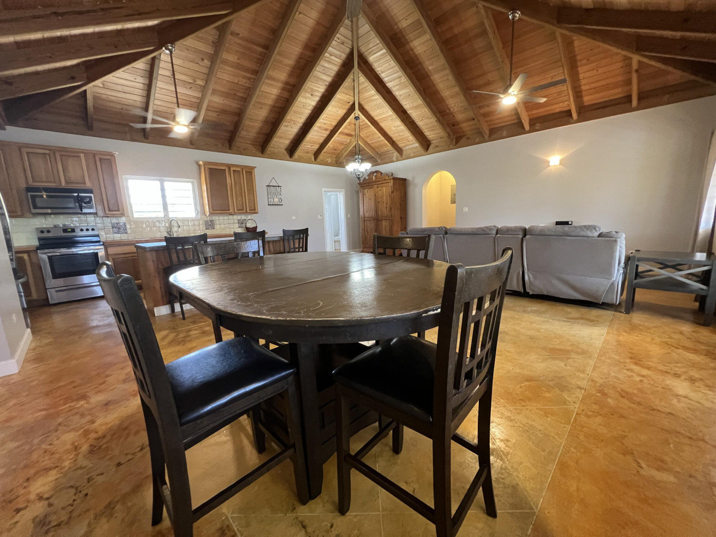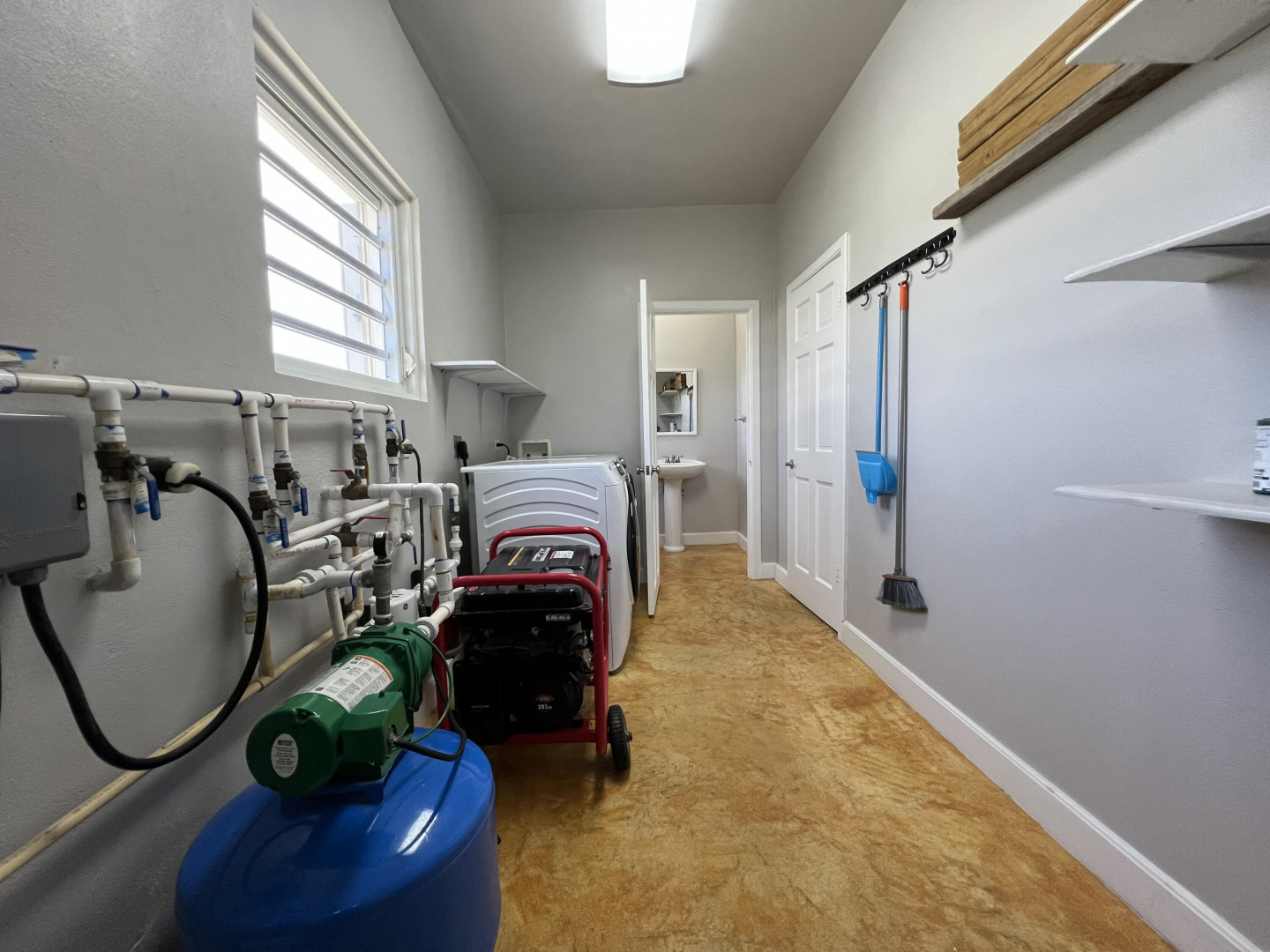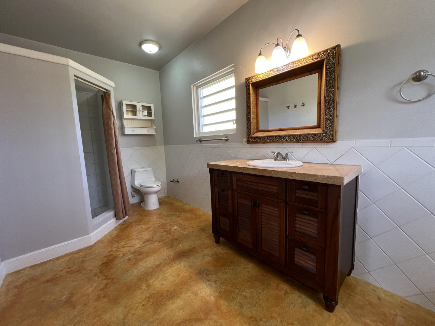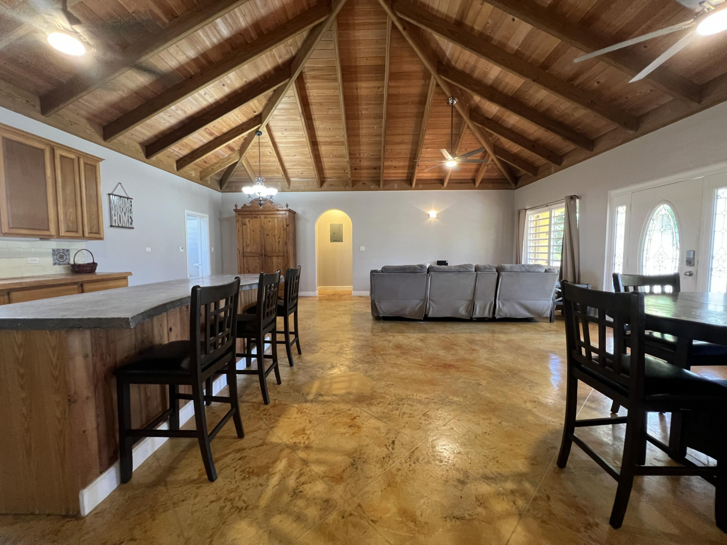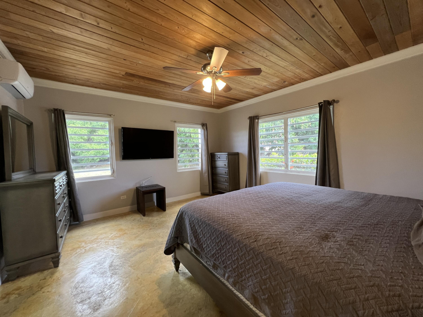 Enjoy island living in this 3-bedroom, 2.5-bath home that's ready for you to unpack & settle in. The spacious great room features gorgeous vaulted cypress ceilings and flows into an open kitchen with sleek concrete countertops. Comfort comes easy with split A/C in the main bedroom, a laundry room w/ full-sized washer & dryer, walk-in closets throughout and a cool covered front gallery space. This home is equipped for modern island life with solar net metering, a generator a water filtration system as well as brand new hurricane shutters, both accordion and Caribbean style wood. Located in a quiet residential community just minutes from downtown Christiansted, you'll have quick access to shopping, dining, and the waterfront!