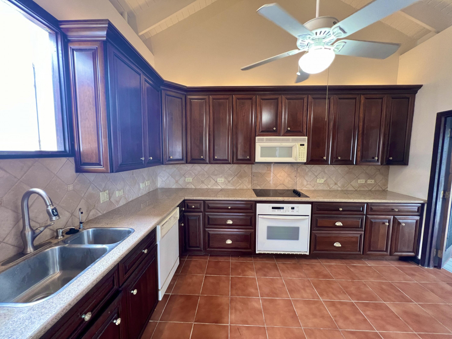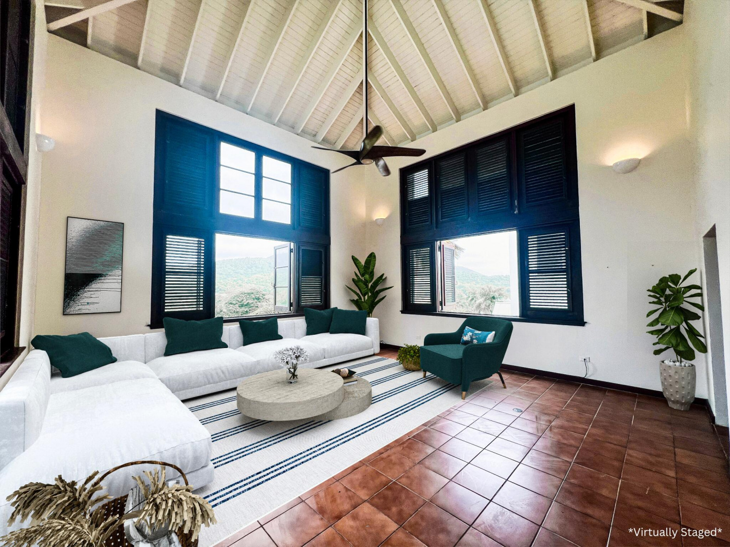 This villa is positioned high on the grounds to ensure a lovely breeze! This standalone villa with three bedrooms and three bathrooms has a courtyard that is both expansive in size and also mostly covered. Brand new furniture in the LR and new couches in the 2nd and 3rd bedrooms. The imbuia wood has been carefully maintained throughout the years. The kitchen has been expanded and the laundry relocated to the storage room! Amenities of this gated community include Carambola pool, tennis courts, pickle ball courts, and beautifully landscaped grounds.The bureaus, end tables, bed, mattress and box spring, and sheets and bedding are also new and never slept in.