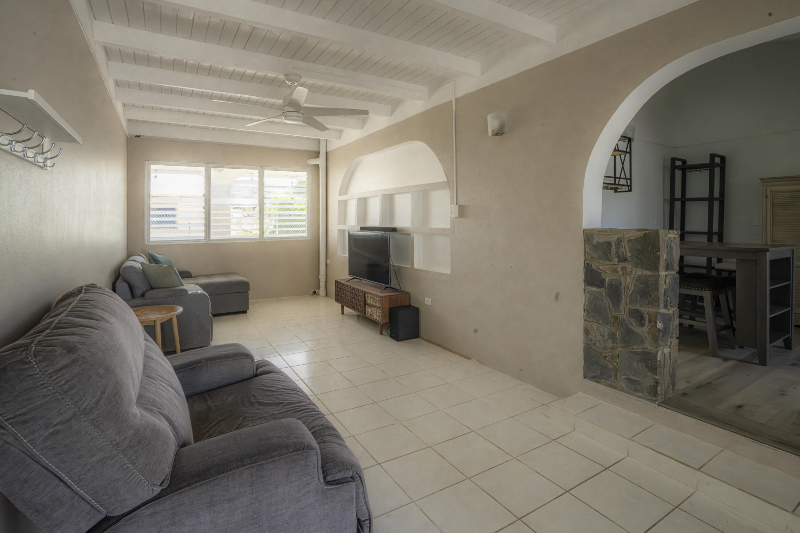 Nestled in the heart of the serene Catherine's Rest neighborhood in Company Quarter. Former childhood home of NBA legend Tim Duncan. Step into this quaint, FHA Approved, furnished and move-in ready home featuring three spacious bedrooms, a bonus room and two bathrooms. The main home stretches out over a 1274 sq ft single-level floor plan with a large open kitchen/dining area; adorned with updated stainless appliances, ample cabinet storage, efficient layout and a UV R/O home system. The attached 1192 sq ft apartment offers a one bedroom, one bathroom with a separate private entry and independent WAPA meter.- Roof resealed w/warranty