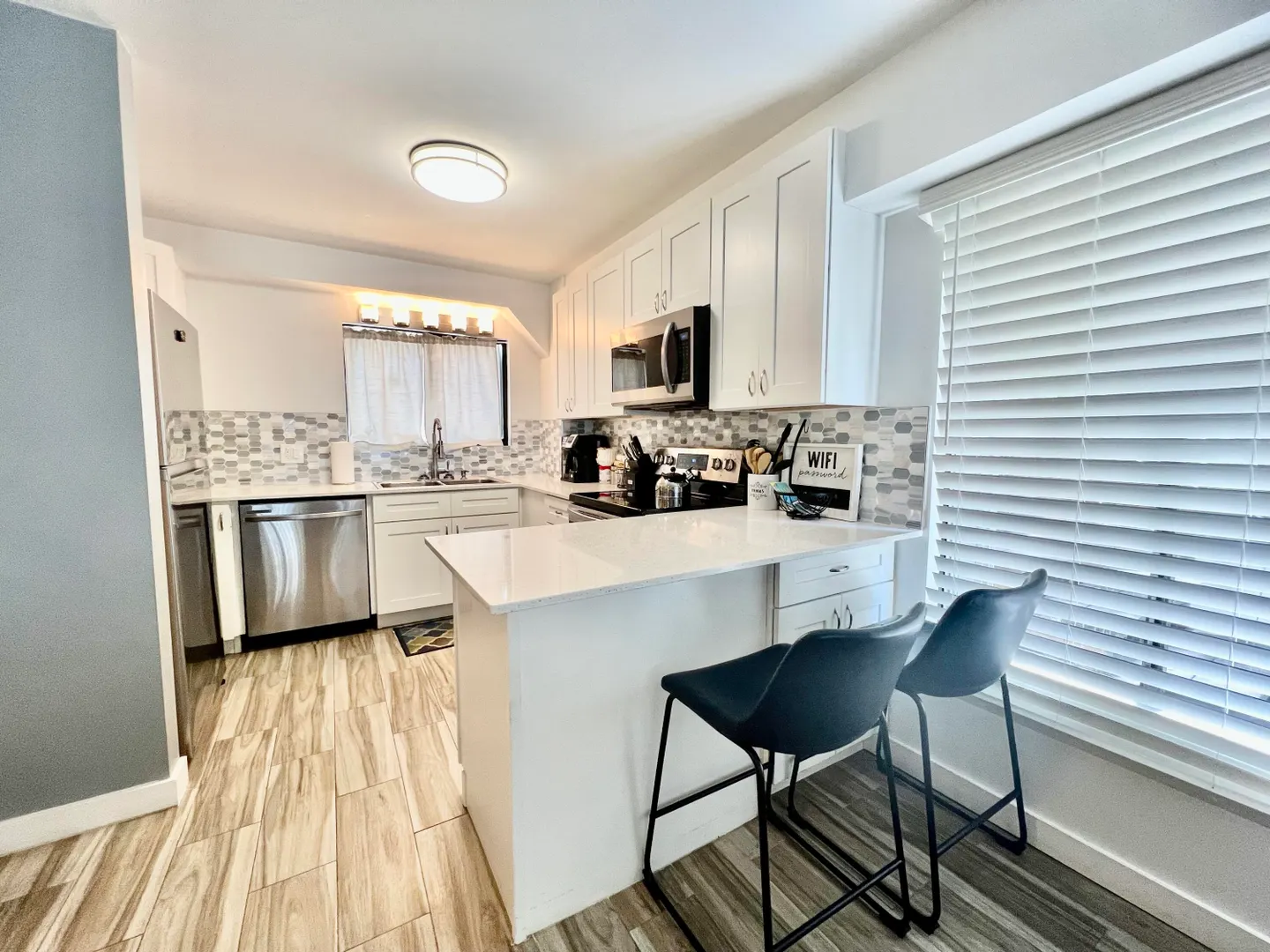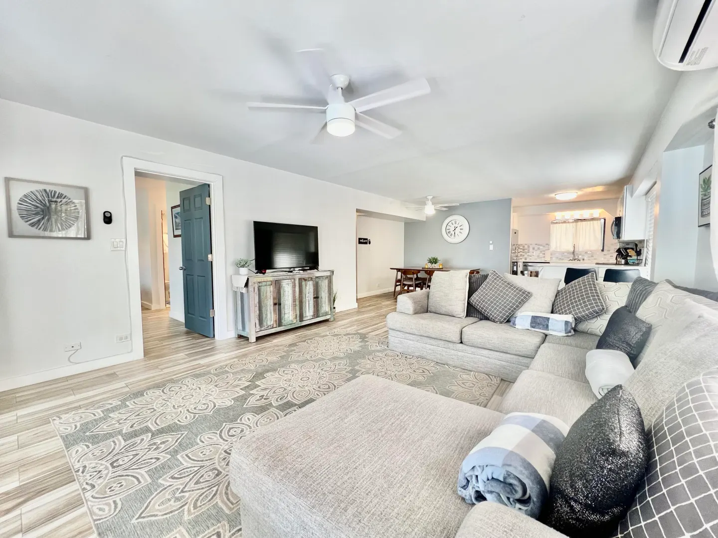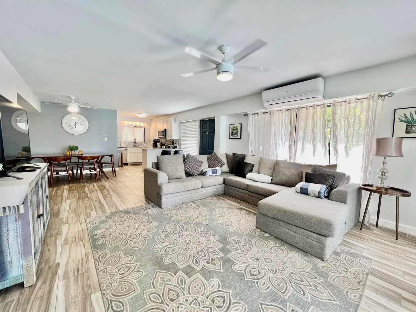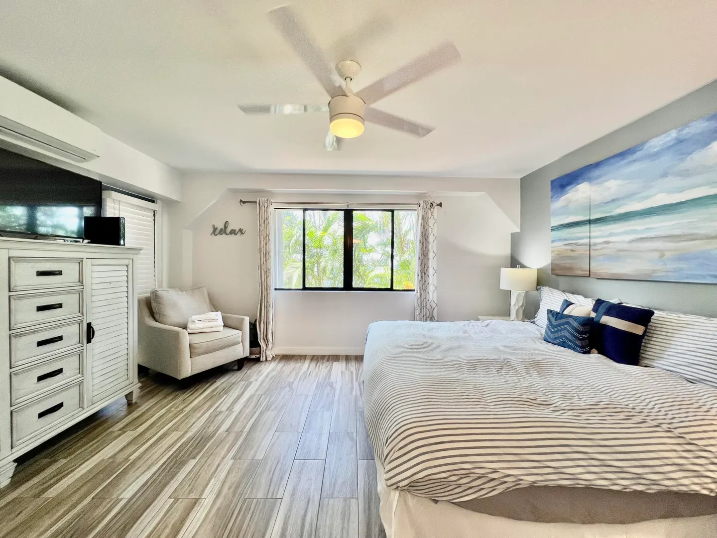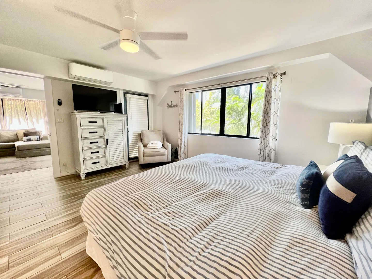 Professionally renovated condo with an ocean view and pool a few steps away that is rated as one of the top rented Air BnB units in Palm Gardens. There are New Stainless-steel appliances, Washer and Dryer, and Furniture included in the sale of this condo. This condo is also conveniently located within 10 to 15 minutes to shopping areas and restaurants in town and RedHook.