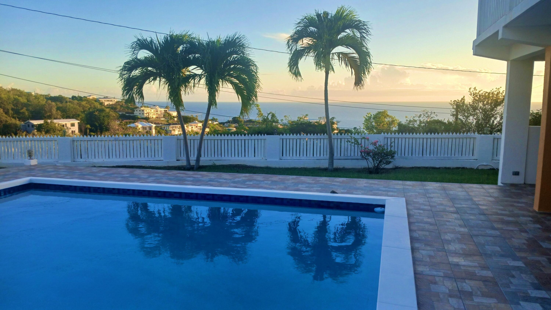 Perched on 1.18 acres with beautiful ocean views, this solid concrete multi-unit property offers space, flexibility, and income potential.The upper level features 4 bedrooms and 3 bathrooms, each bedroom with its own balcony access, allowing natural light and island breezes throughout the home.The lower level includes a separate 1 bedroom / 1 bathroom apartment with its own driveway, plus a storage room and bonus room--ideal for rental income, guest accommodations, or extended family.Outdoor living is a highlight with a 25 x 14 pool and spacious sundeck, surrounded by professionally maintained landscaping and mature palms.Additional features include:-40K diesel generator-Three cisterns plus access to WAPA water-Solar water heater-Newly painted exterior-Recoated-Solid concrete construction