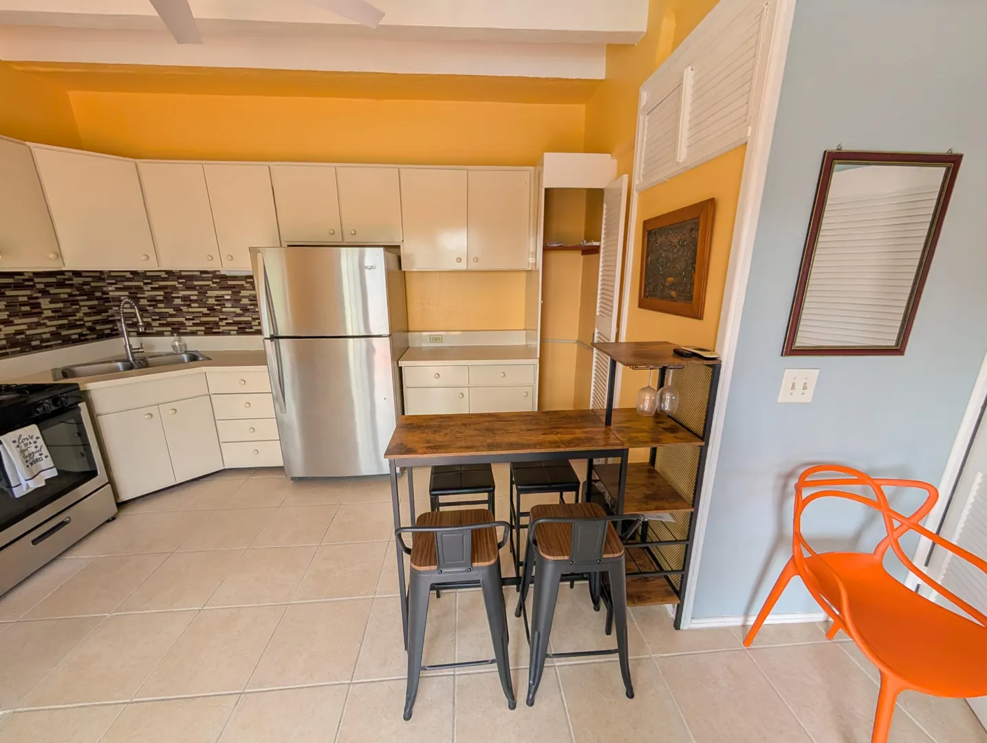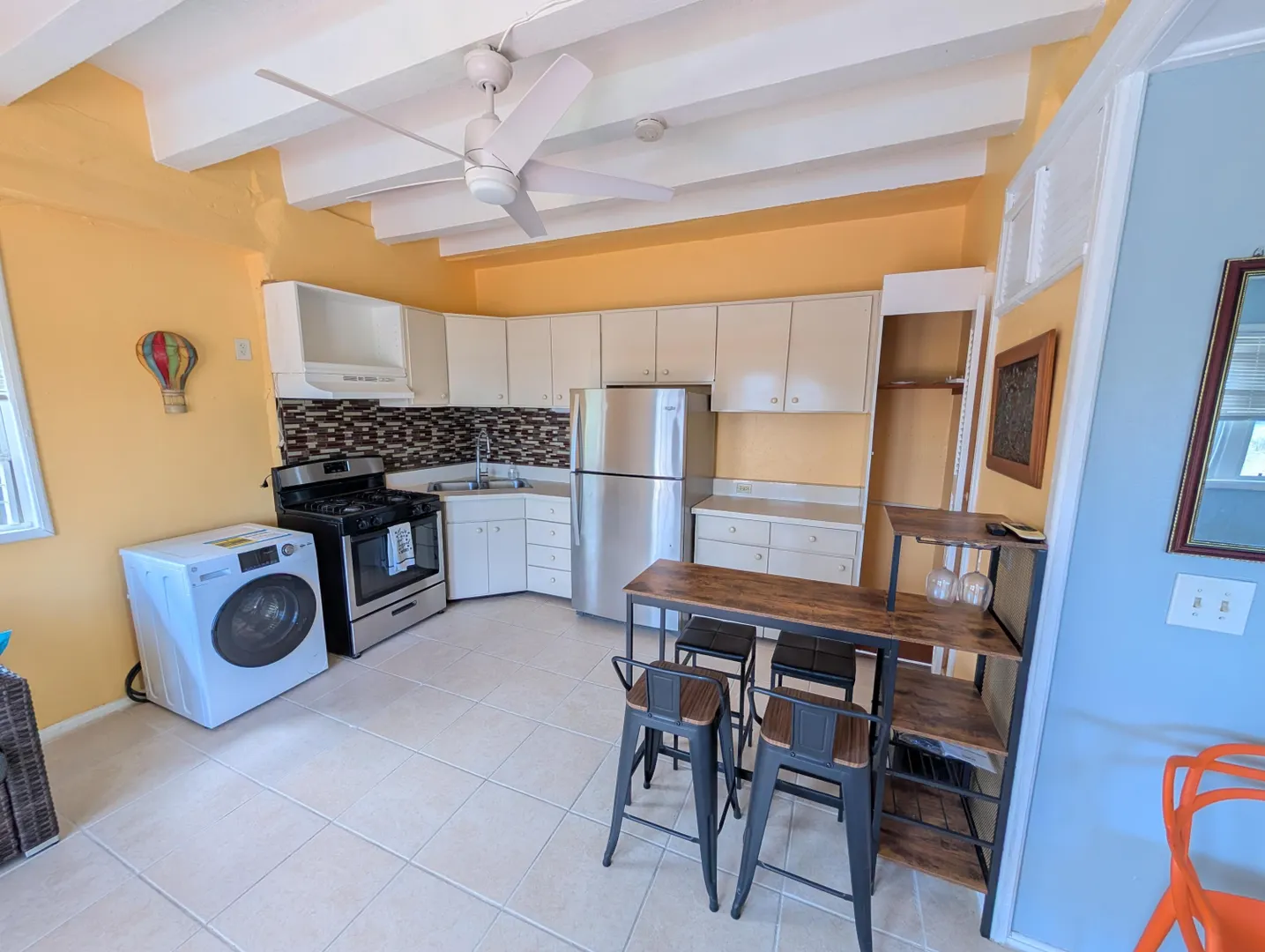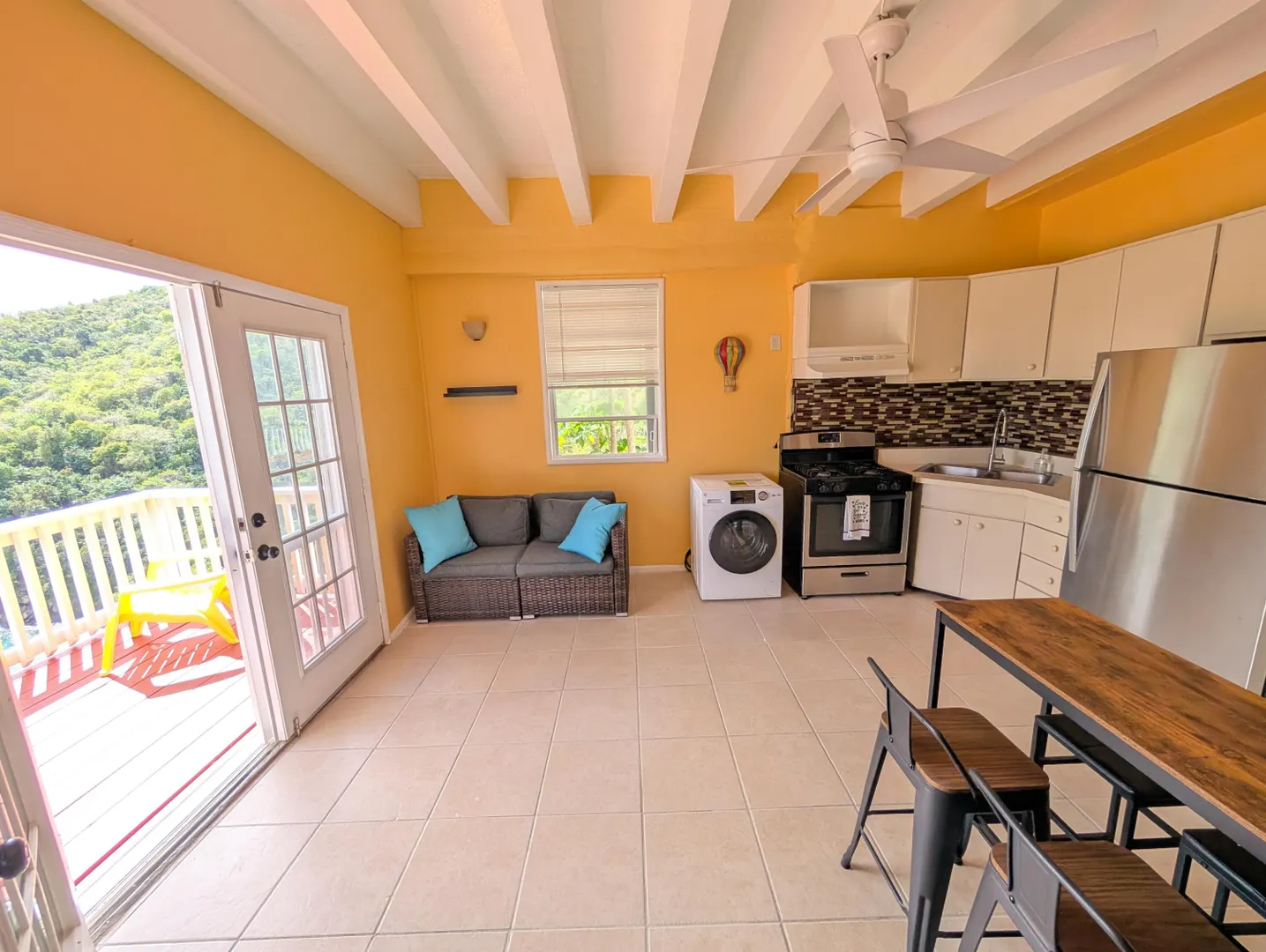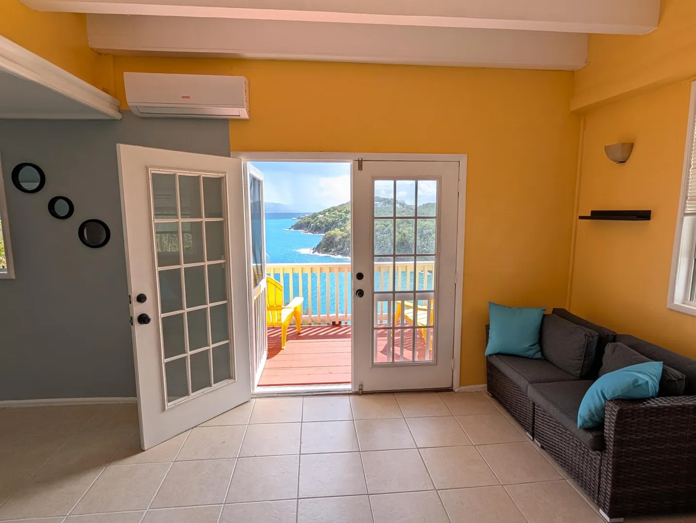One bedroom apartment in a quiet neighborhood on the east end where you can hear the waves and see the beach. Beautiful views from you private porch. Split a/c, W/D, gas stove, your own cistern and separate electric meter. Owner has even supplied a battery backup. A cat MAY be considered. NO DOGS.