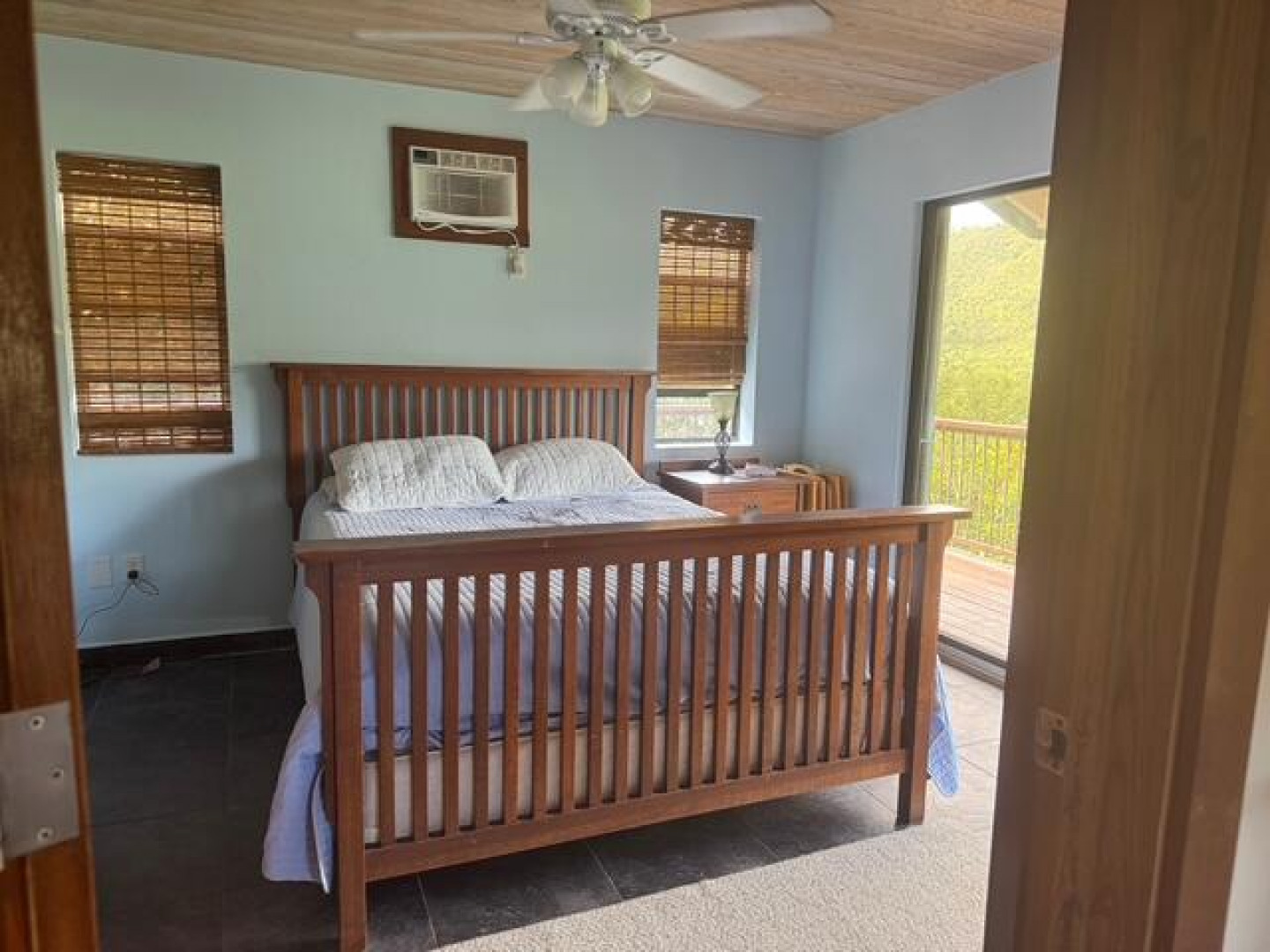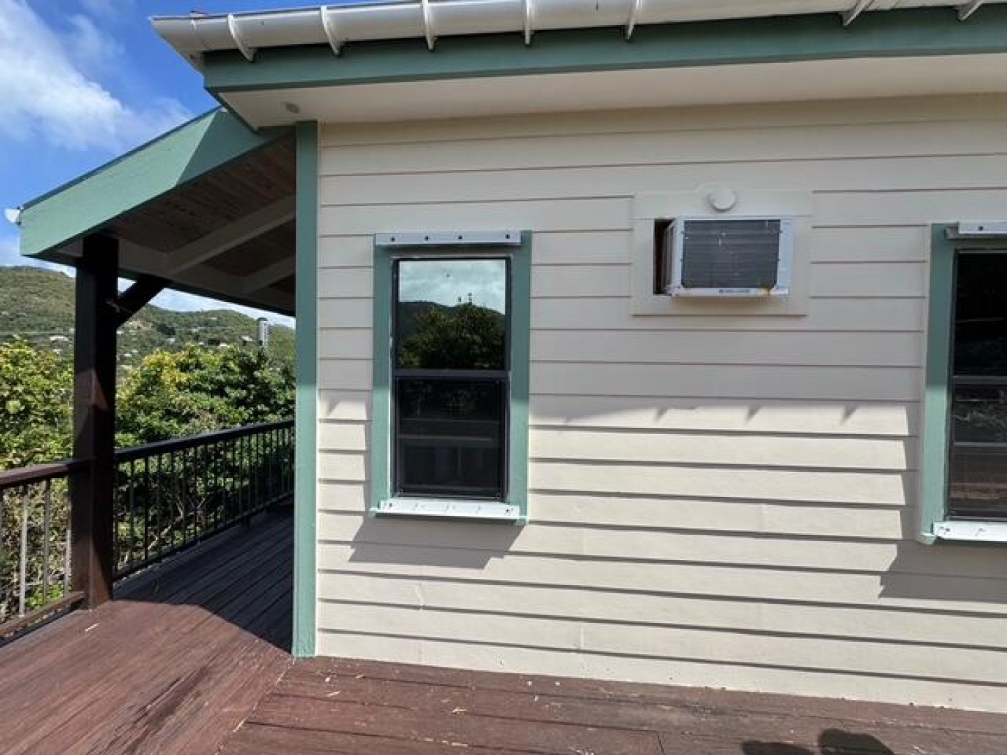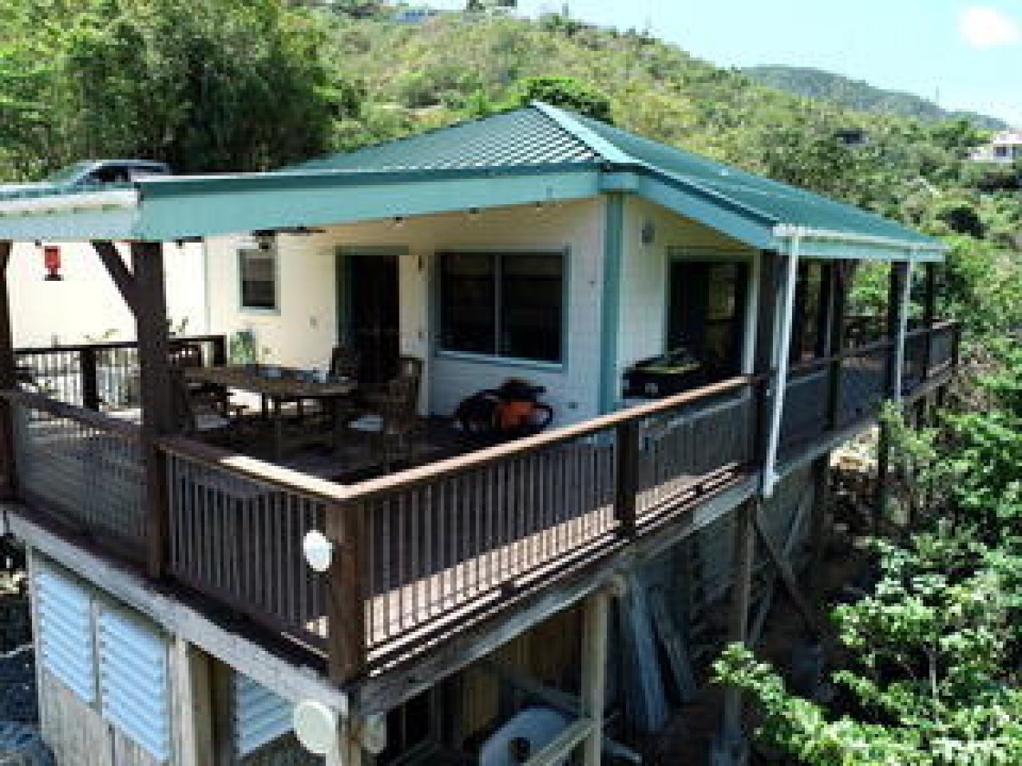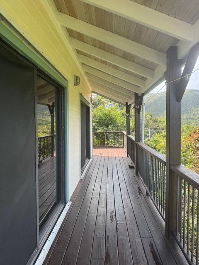 Wind Diva is a great Caribbean Cottage close to Coral Bay with Coral Harbor & Hurricane Hole water views. Wrap around deck with covered porch. Upstairs enjoys an open floor plan with kitchen, dining, living room with primary bedroom / bath and laundry room. Beautiful stone walls and pathways for the entrance and down to the lower level where there is a room with a queen bed platform and a desk that could be finished into another bedroom.Off the paved driveway is a small deck with one bedroom / one bath. Ample flat parking area. This cottage is a must see to appreciate! Meticulously maintained.