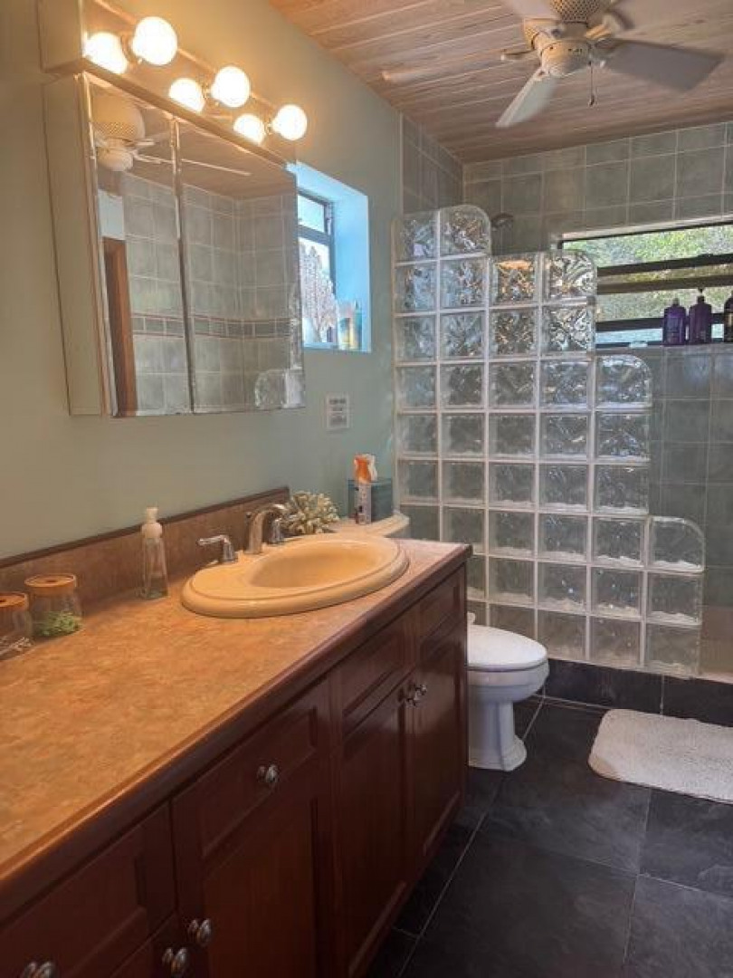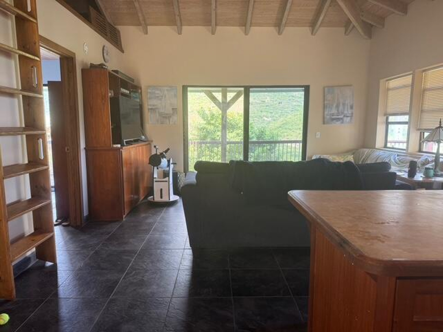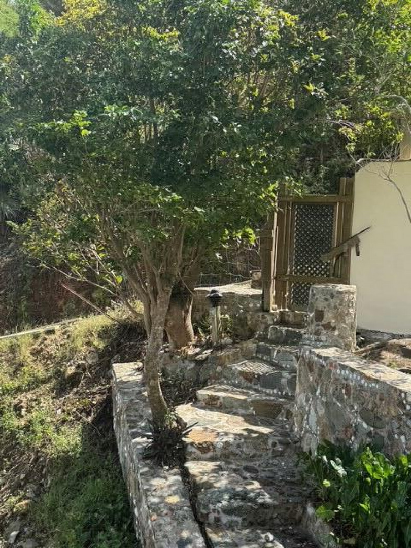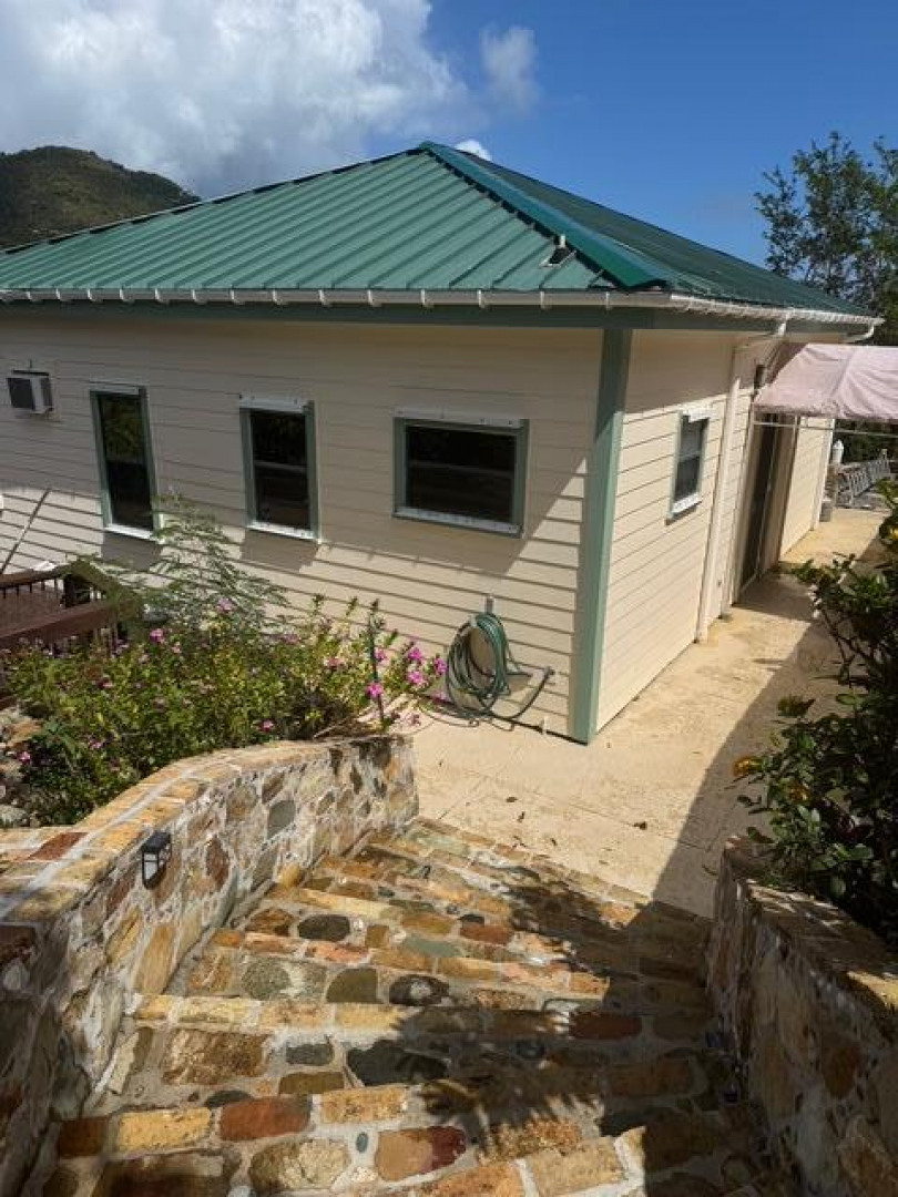 Wind Diva is a great Caribbean Cottage close to Coral Bay with Coral Harbor & Hurricane Hole water views. Wrap around deck with covered porch. Upstairs enjoys an open floor plan with kitchen, dining, living room with primary bedroom / bath and laundry room. Beautiful stone walls and pathways for the entrance and down to the lower level where there is a room with a queen bed platform and a desk that could be finished into another bedroom.Off the paved driveway is a small deck with one bedroom / one bath. Ample flat parking area. This cottage is a must see to appreciate! Meticulously maintained.