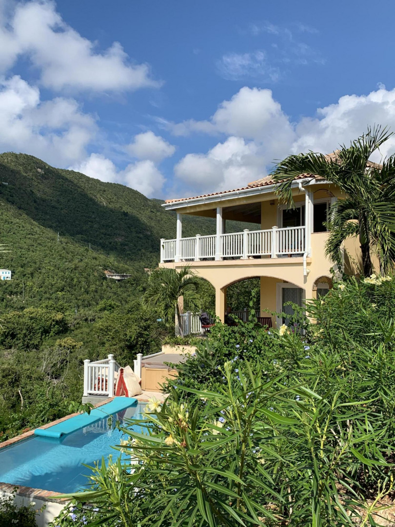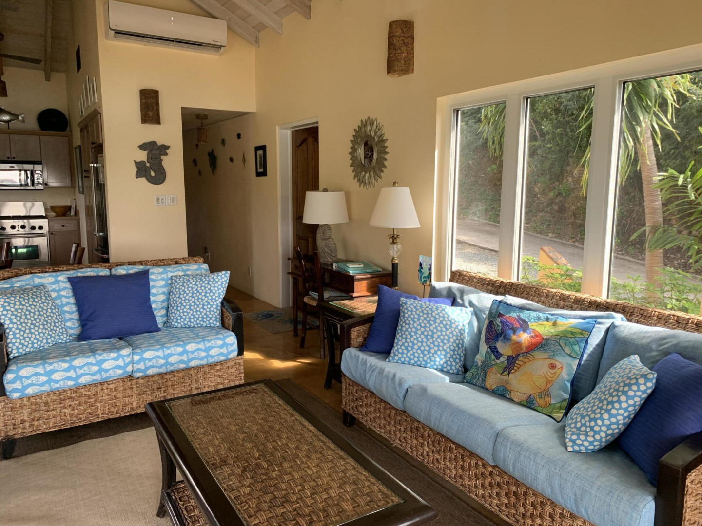 Elysium is the slice of heaven you have been waiting for...An adorable two bedroom, three bath island cottage with quality finish work in a very private lush end of the road setting. This two level villa is compact but checks all the boxes with a gracious sun deck and pool, hot tub, air conditioning throughout, solid rental history. Enjoy hours of relaxation under the covered veranda with antique brick decks overlooking Fish Bay, nearby bird sanctuary or sunsets filled skies. Just a stone's throw away from exploring Reef Bay and other surrounding nature in a wonderful neighborhood setting.