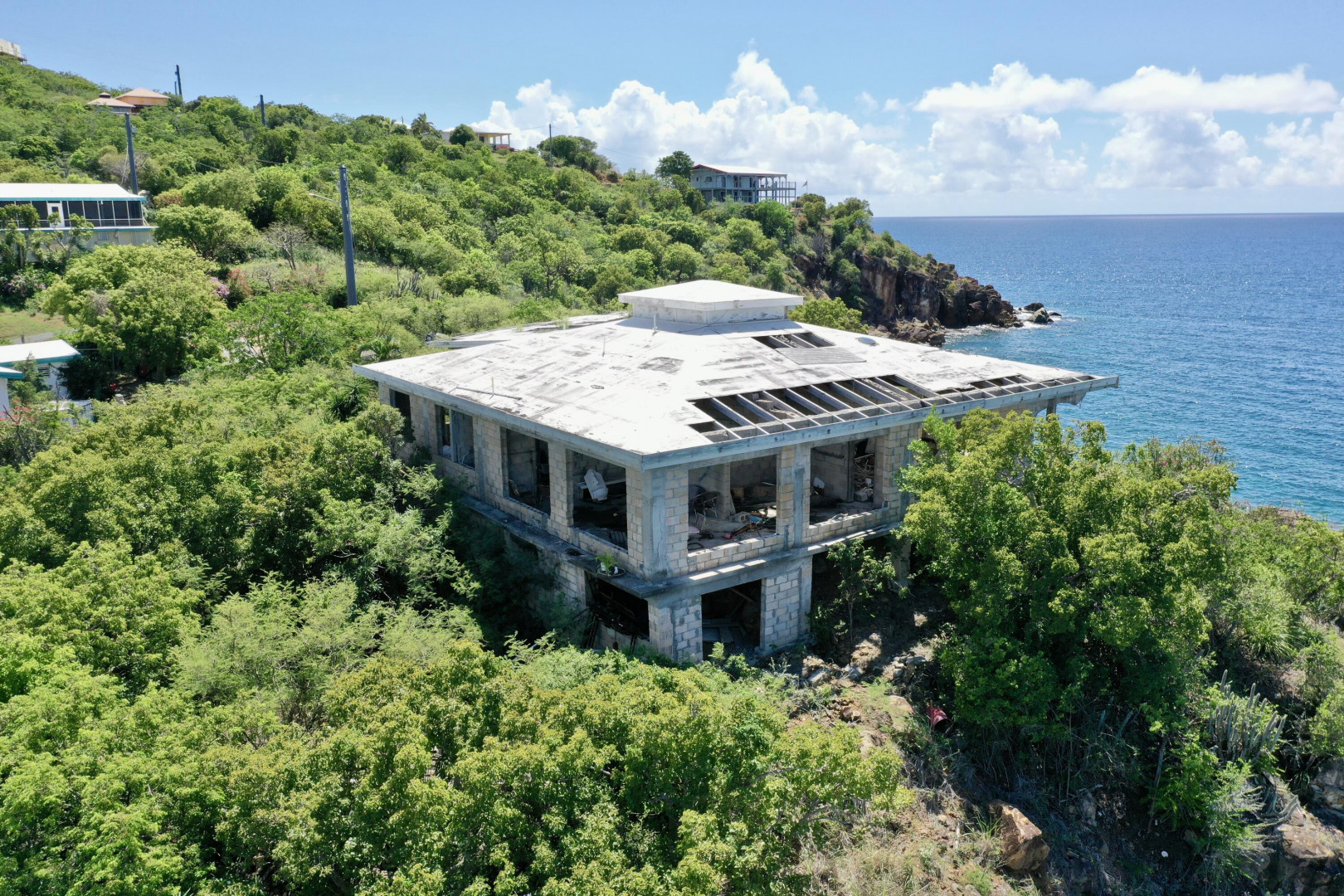 Cliffside retreat with massive potential. This is a great opportunity for someone looking to build their dream home with the initial legwork of the construction completed. Take advantage of these two large under-construction homes on .87 acres of waterfront property. Turn this into a lucrative investment property or incredible family estate. Catch sunsets and unobstructed ocean views from almost every angle. This is a must see!!