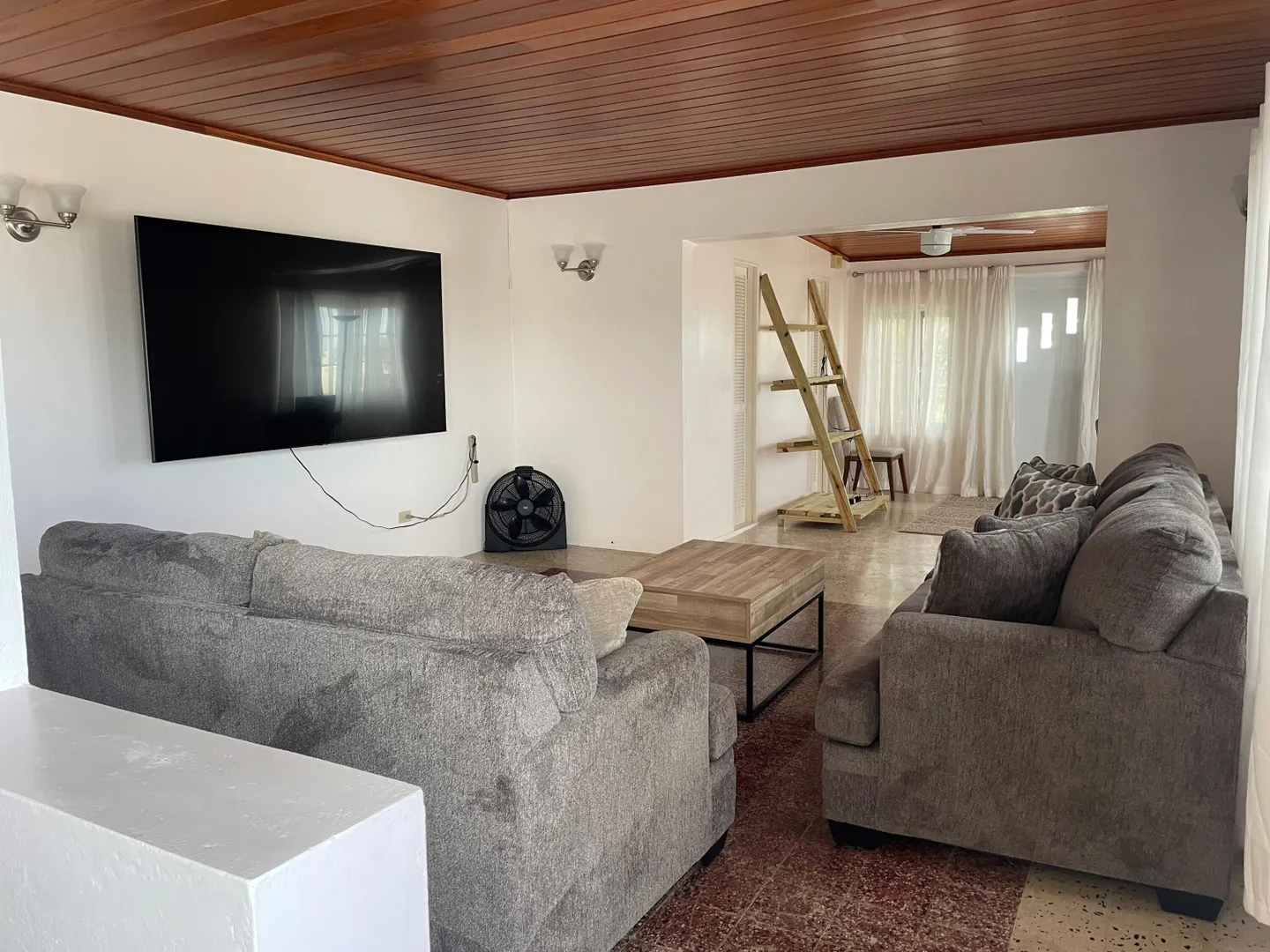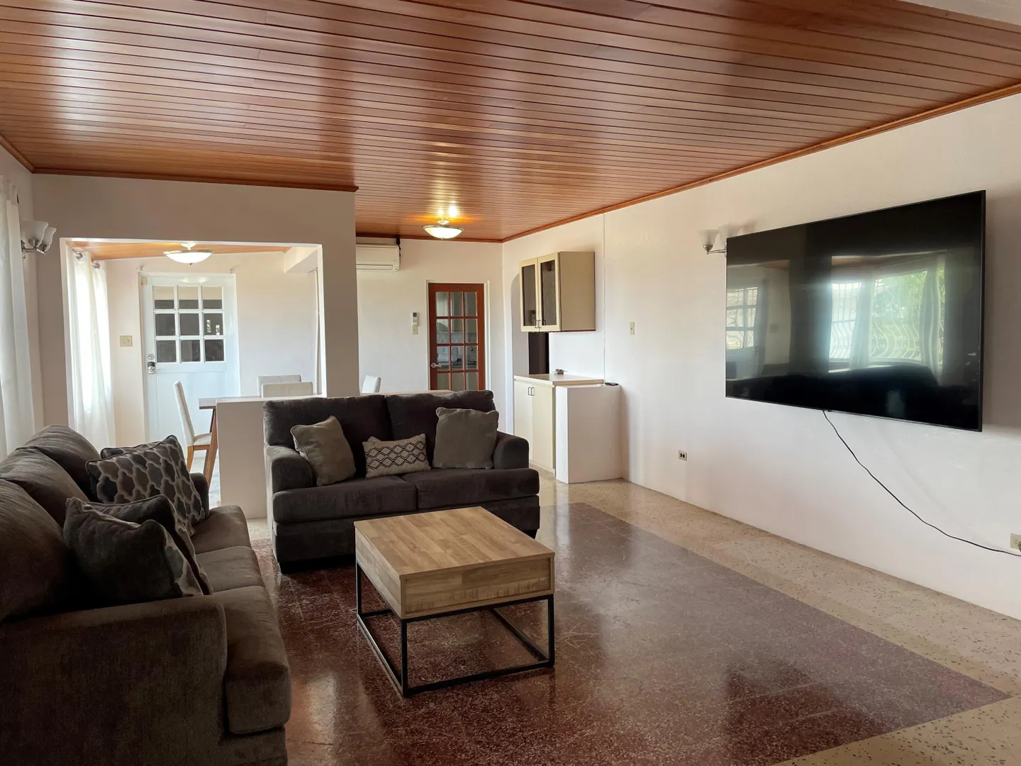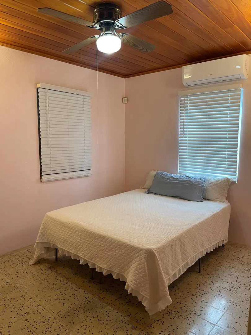 Beautiful home, solar system with power wall, furnished, 3 bedrooms ,2.5 baths, 2 car garage; automatic gate; large playroom, ready for move in on a quiet hill in Whim. AC throughout, sea view from porch. Large fenced yard, pets welcome. Landscaping,trash removal and monthly pest treatment included in rent. Dishwasher in kitchen, washer and dryer in large laundry room. New AC's in all bedrooms. New kitchen floor. Property Management on premises.