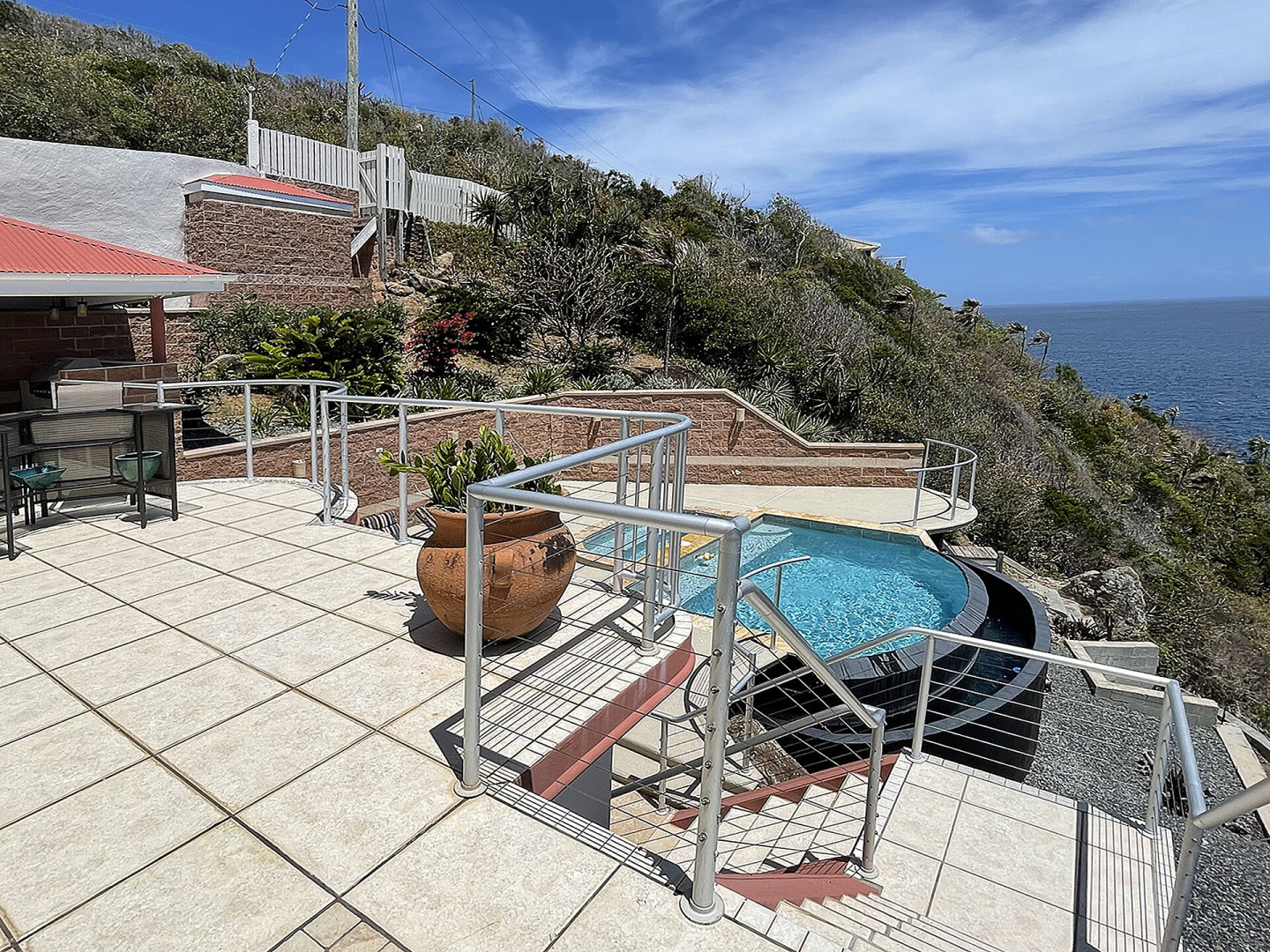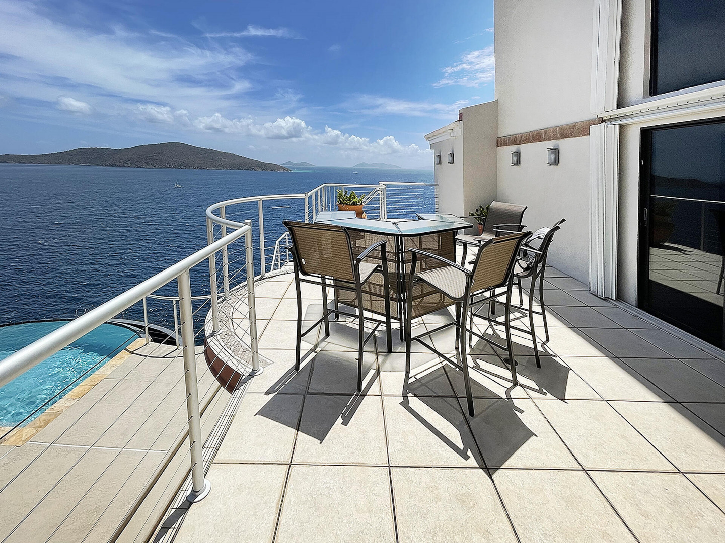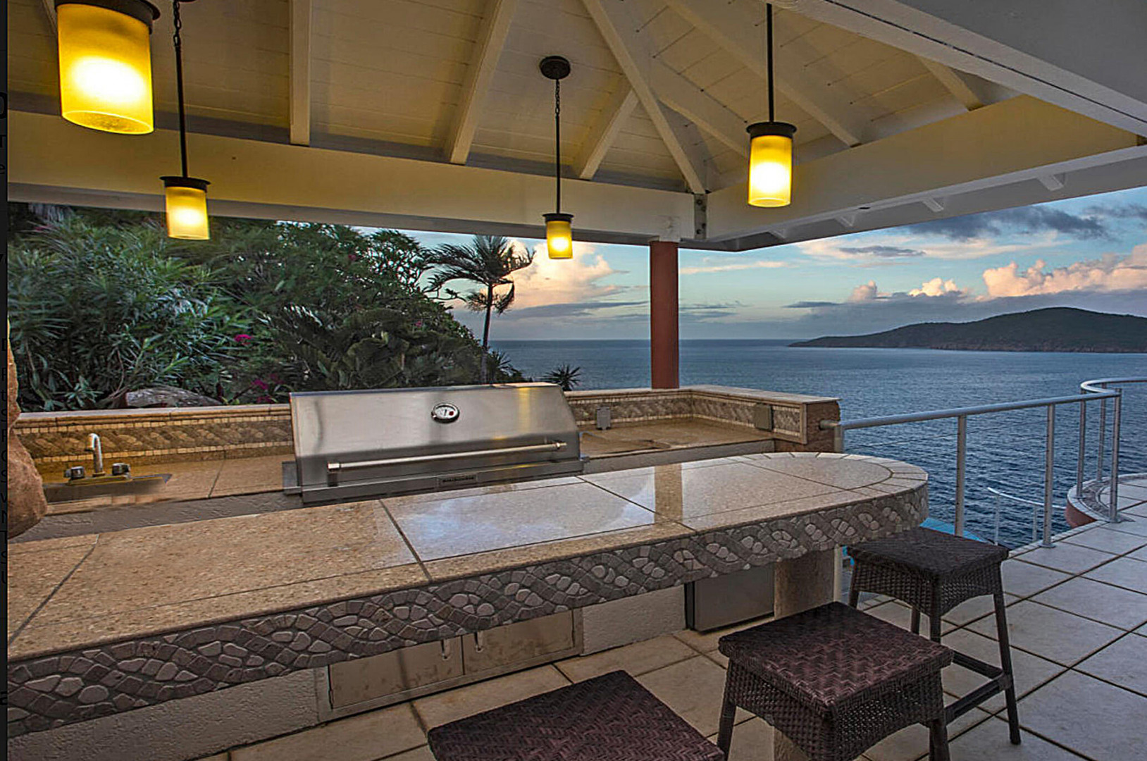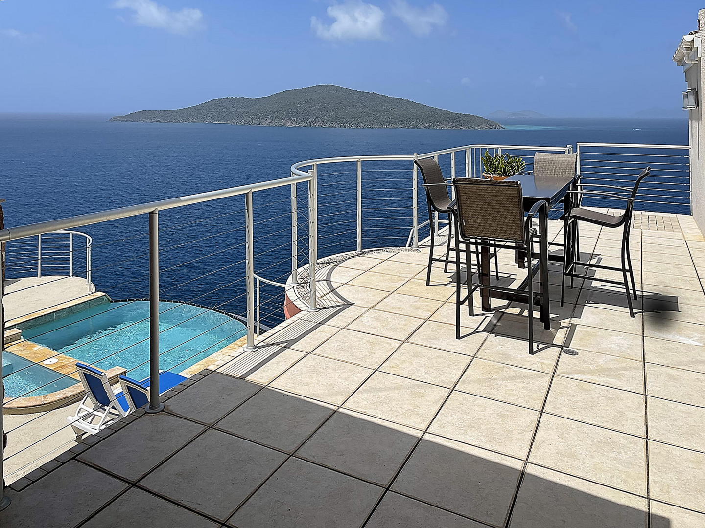 WATERFRONT home, gated REDROCK community-Mediterranean-style Villa; Spectacular views Hans Lollik, St John & BVI. Solar, Bright oversize Windows & Sliding Glass Doors. Open multi-level Layout 4 large decks wth views for entertaining. Major reno 2005-2006- Chef's Kitchen: Quartz Counters, Sub Zero frge + wine frge, Viking Cooktop, 2 ovens, Miele Dishwasher, microwave & double ovens +6k Miele Coffee machine. Din Room opens to outdoor Kitchen, Grill, fridge, Bar Sink. Relax in Infinity Edge .Pool with Down Island Forever Views.Spacious Primary Suite wth barn doors + ensuite & entire-room closet. 2 Guest Suites each wth baths + decks. Top level office perch wth ocean views. Automatic Diesel Generator, solar, Full House UV Water Filter. Lux Waterfront Villa. Home is Realtor owned